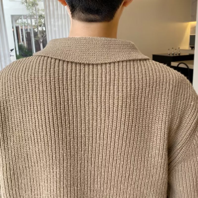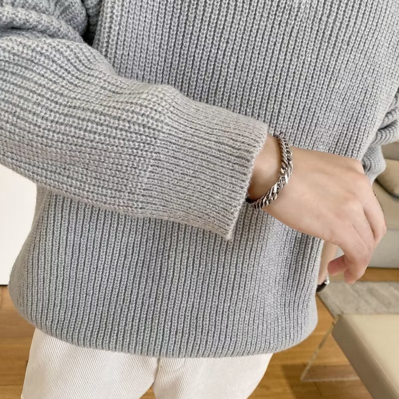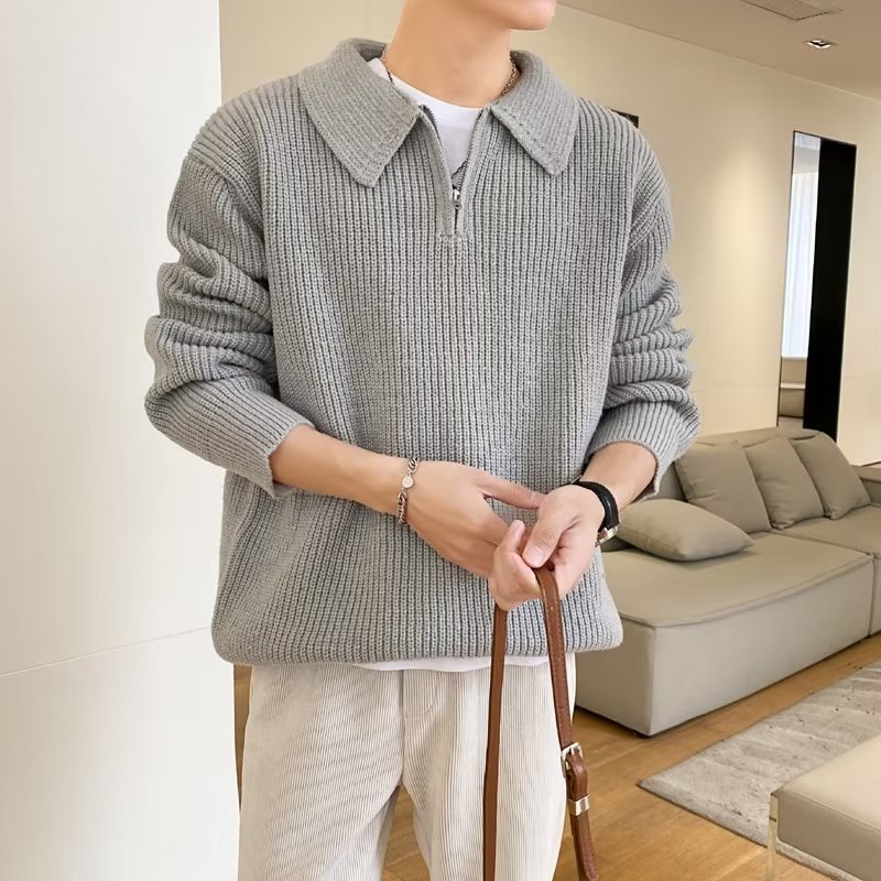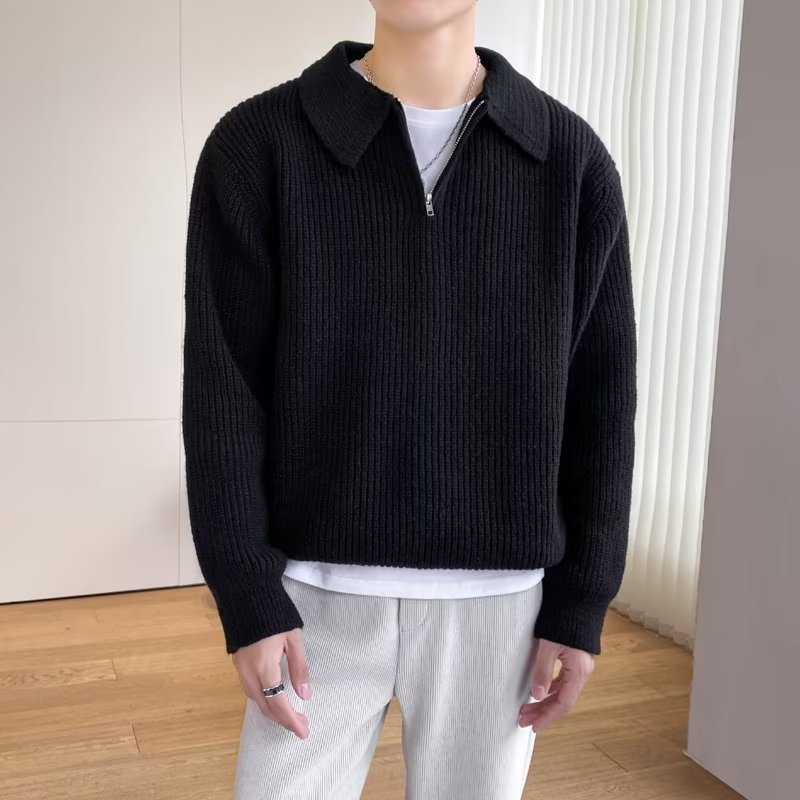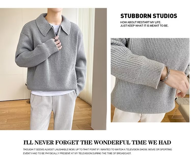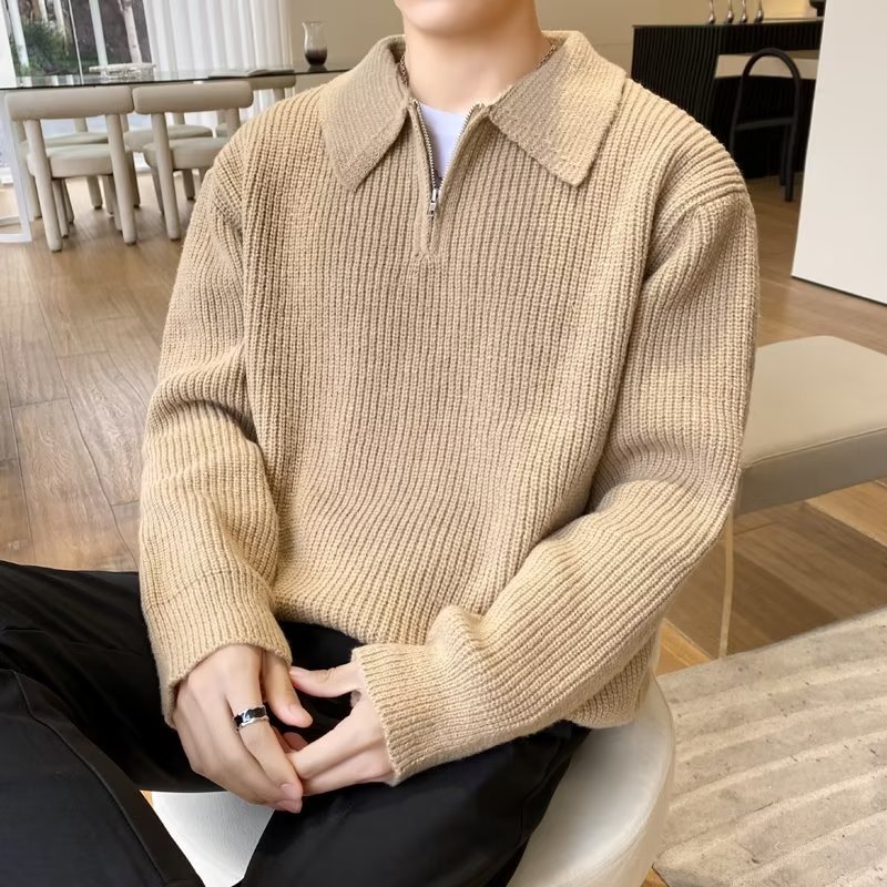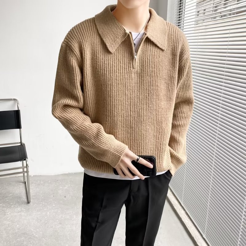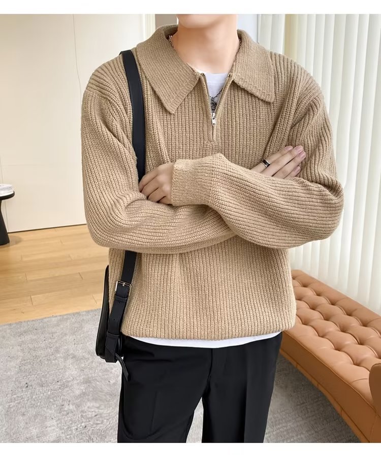 Retro coreano chic otoño e invierno estilo perezoso cuello POLO hilo suelto casual suéter de punto de manga larga para hombre