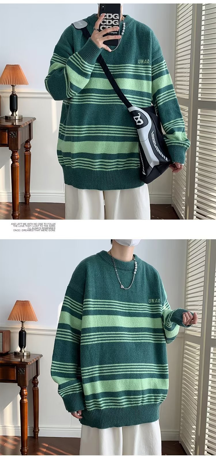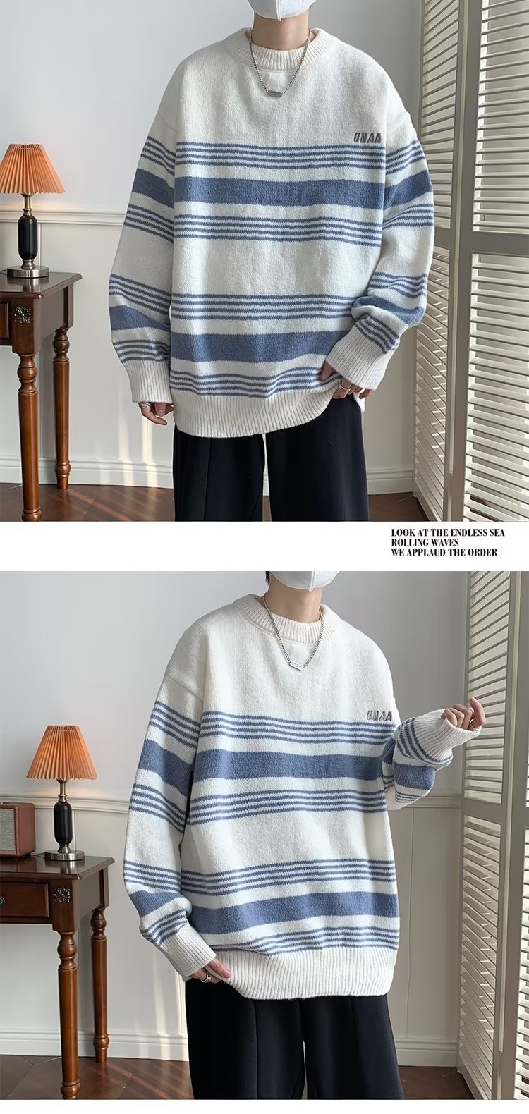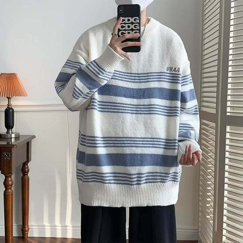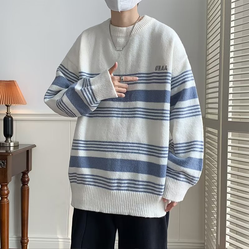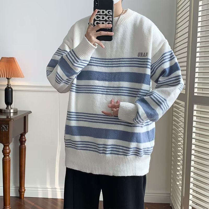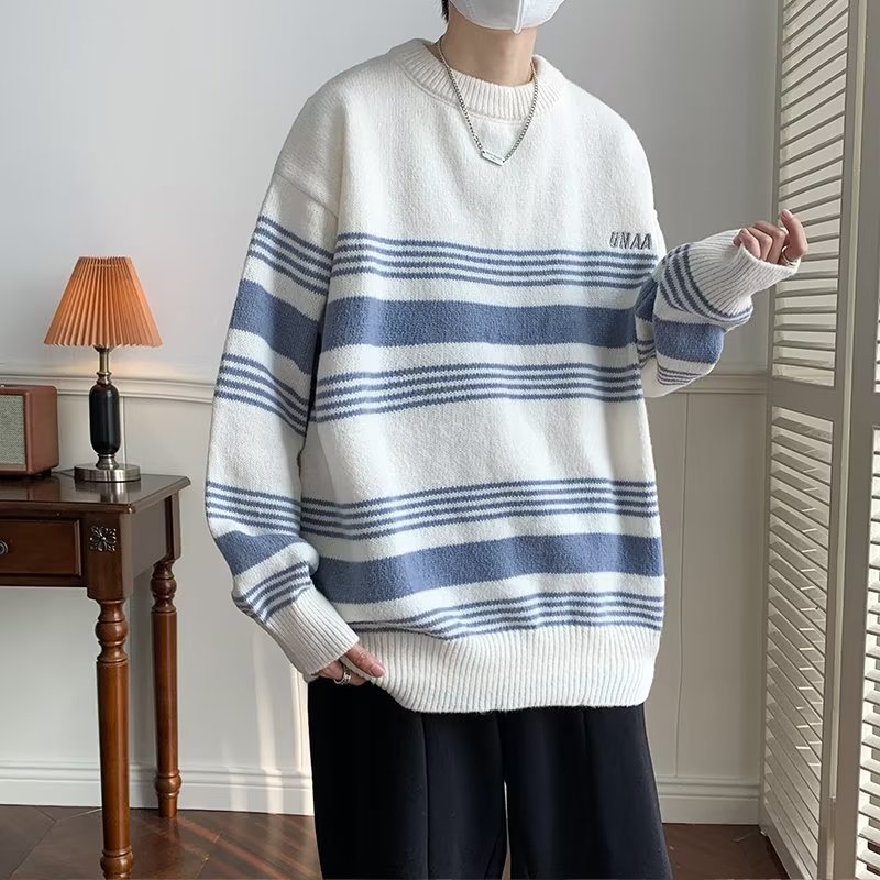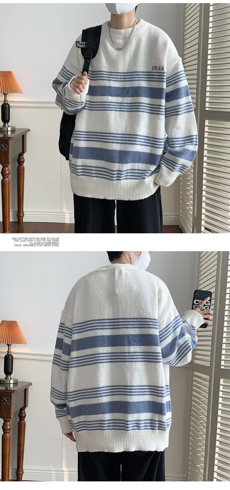 Suéter a rayas de moda en blanco y negro retro japonés de estilo perezoso, hombres y mujeres, sentido del diseño de otoño e invierno, suéter de punto de nicho
