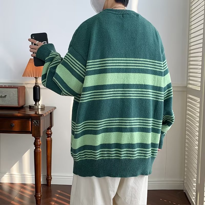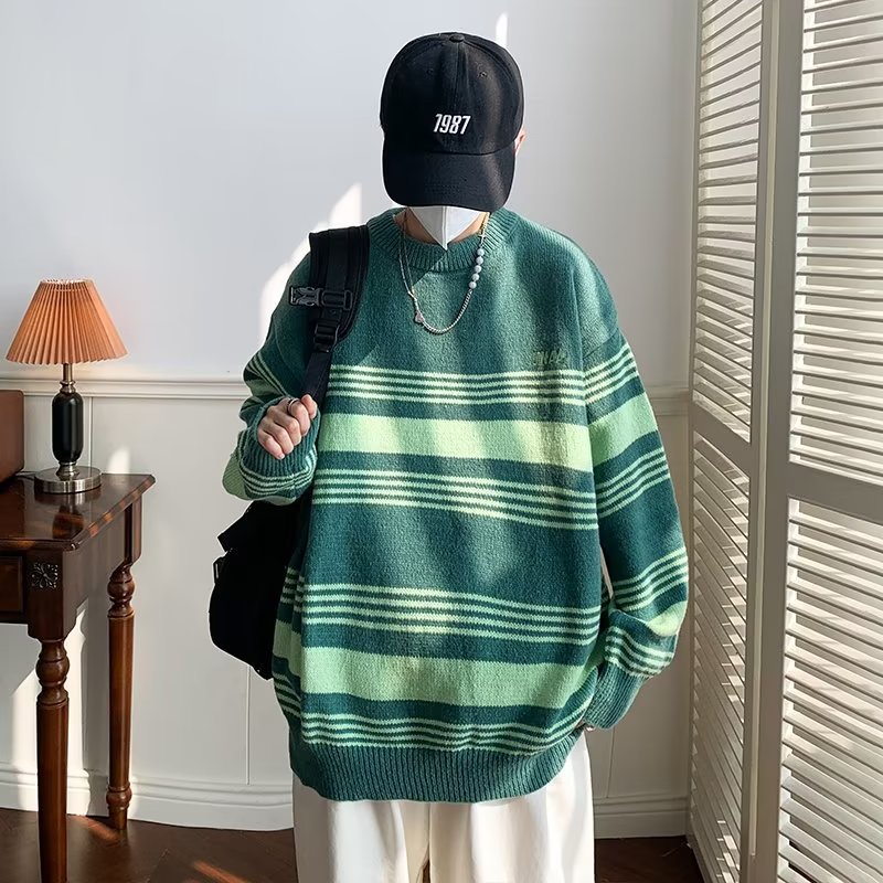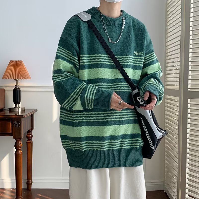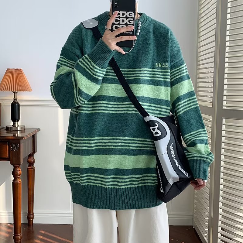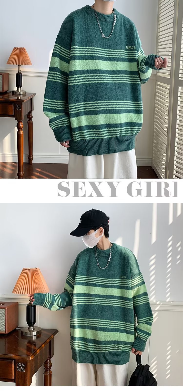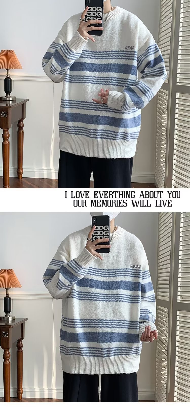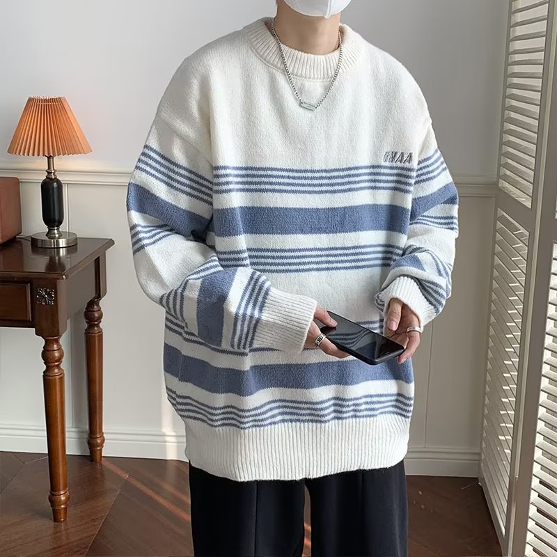 Suéter a rayas de moda en blanco y negro retro japonés de estilo perezoso, hombres y mujeres, sentido del diseño de otoño e invierno, suéter de punto de nicho
