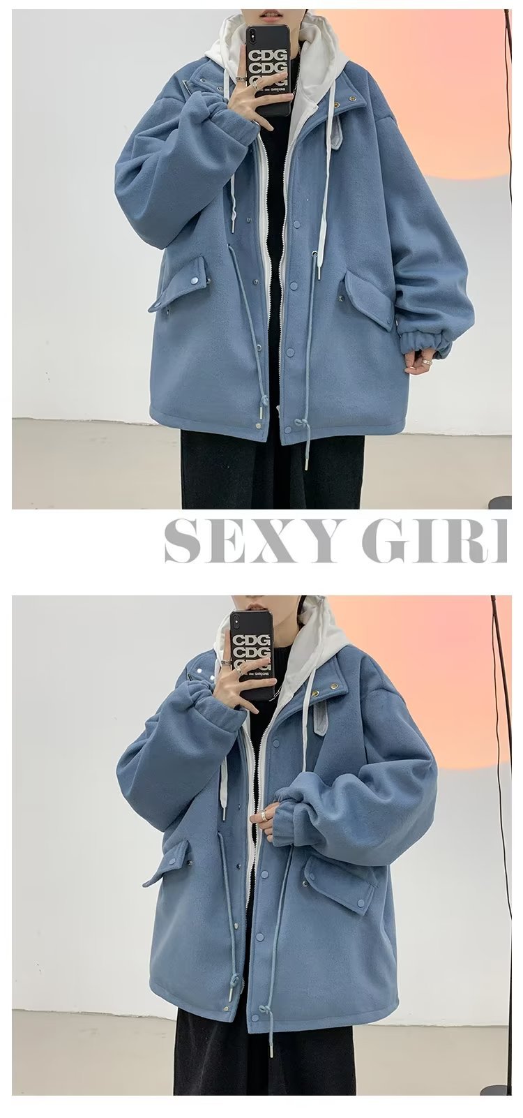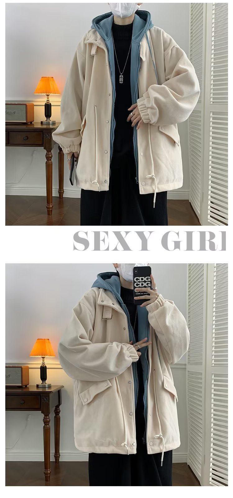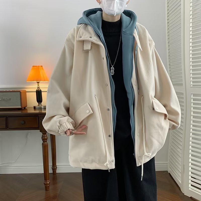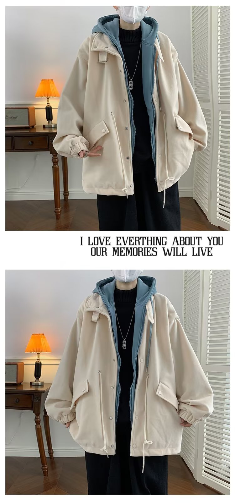 Chaqueta de dos piezas de estilo de Hong Kong para hombre, chaqueta de todo fósforo suelta casual de primavera y otoño, ropa de trabajo con capucha, pareja de moda, top de otoño