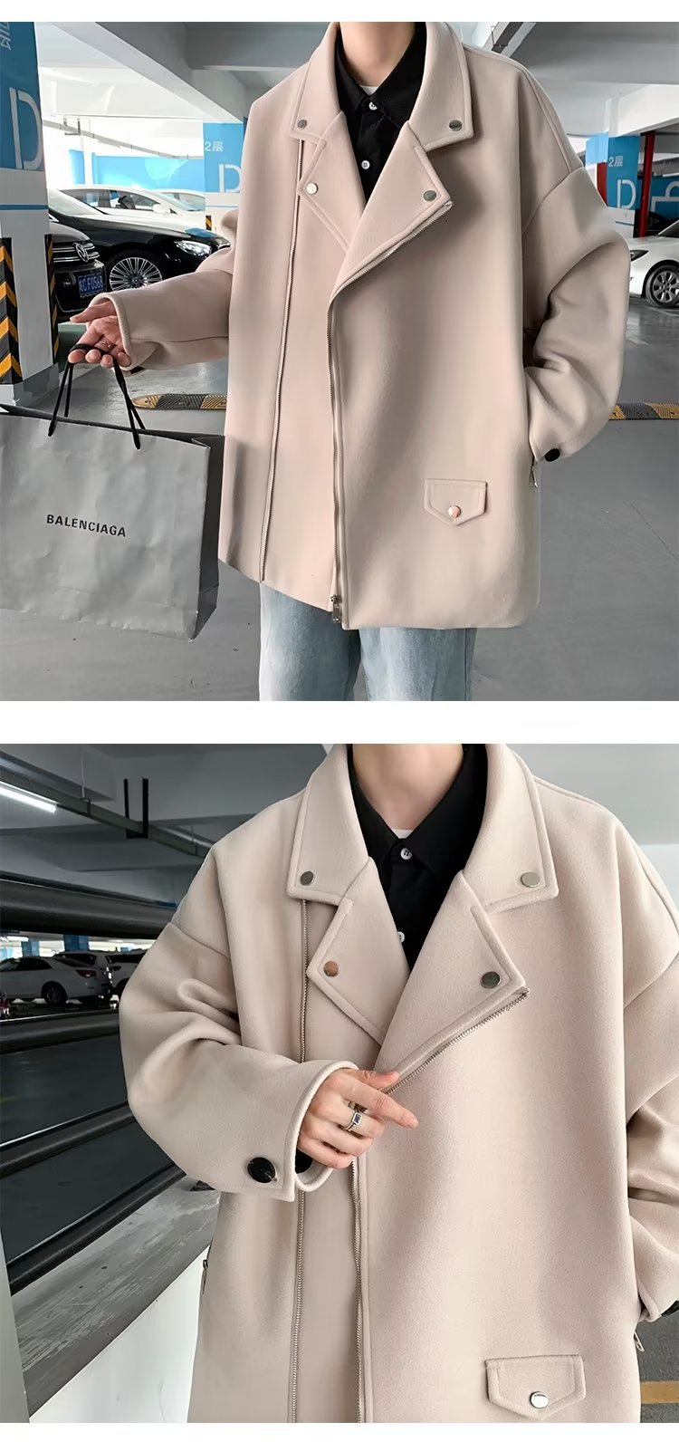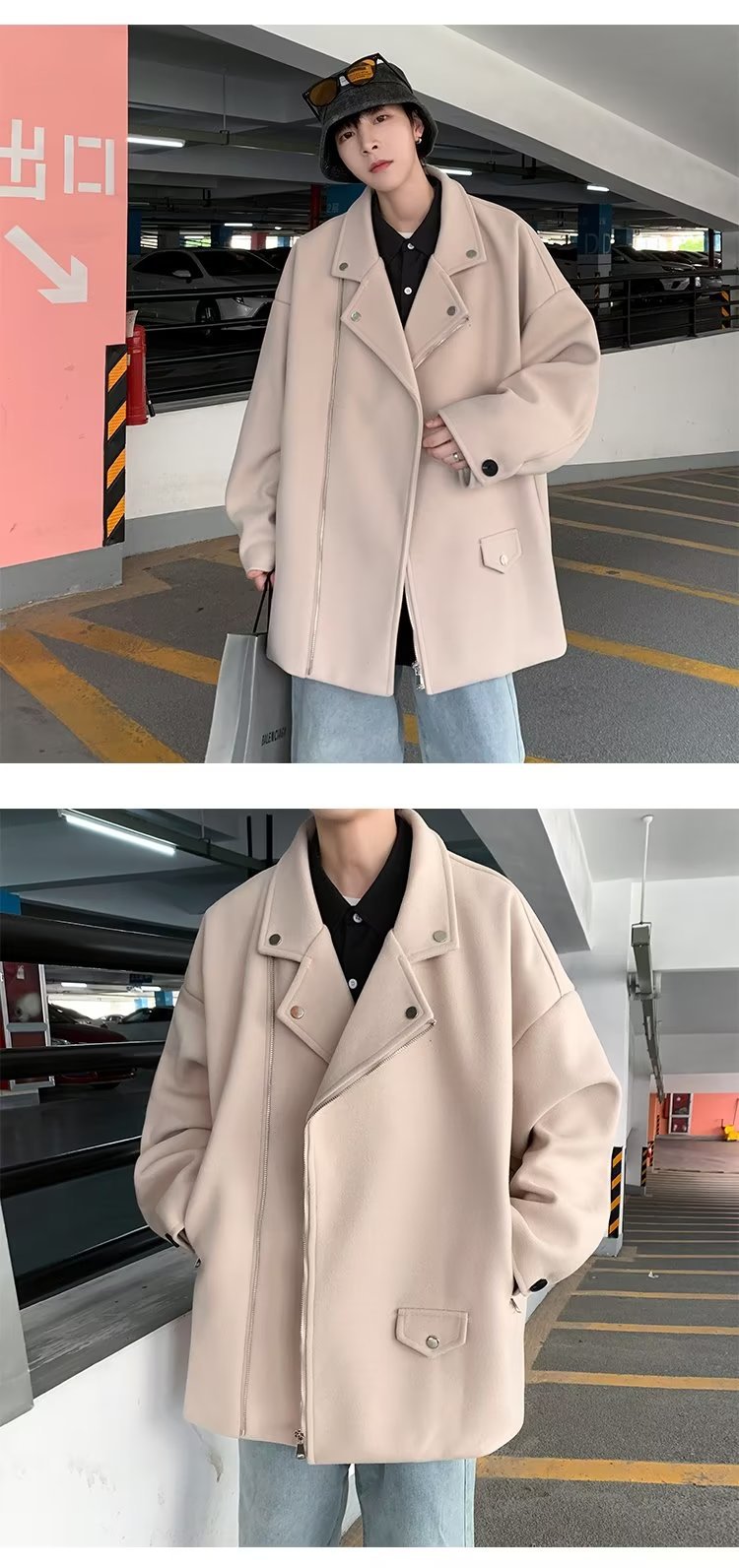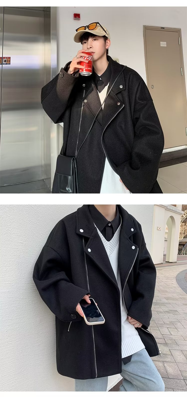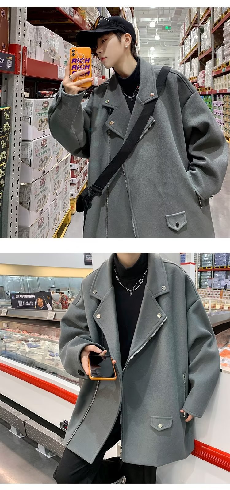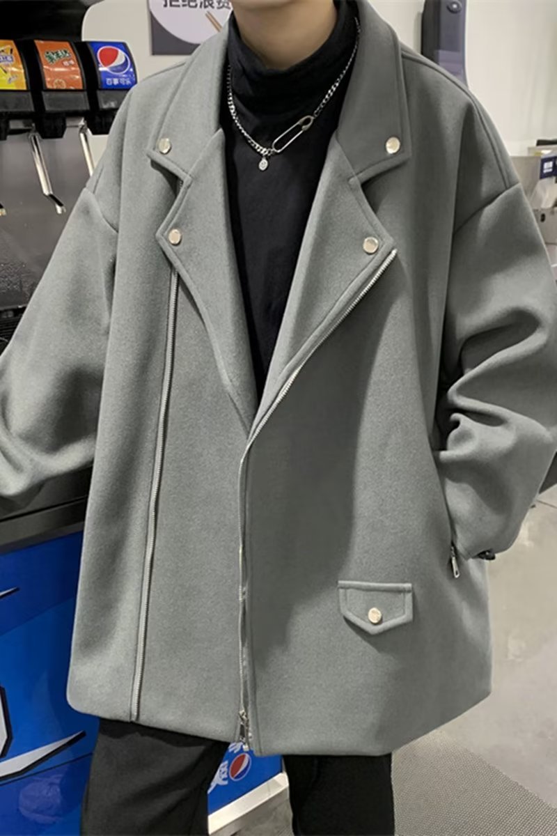 Acha y Agu abrigo de lana con bolsillo azul para hombres tendencia de invierno nueva pareja chaqueta de lana suelta
