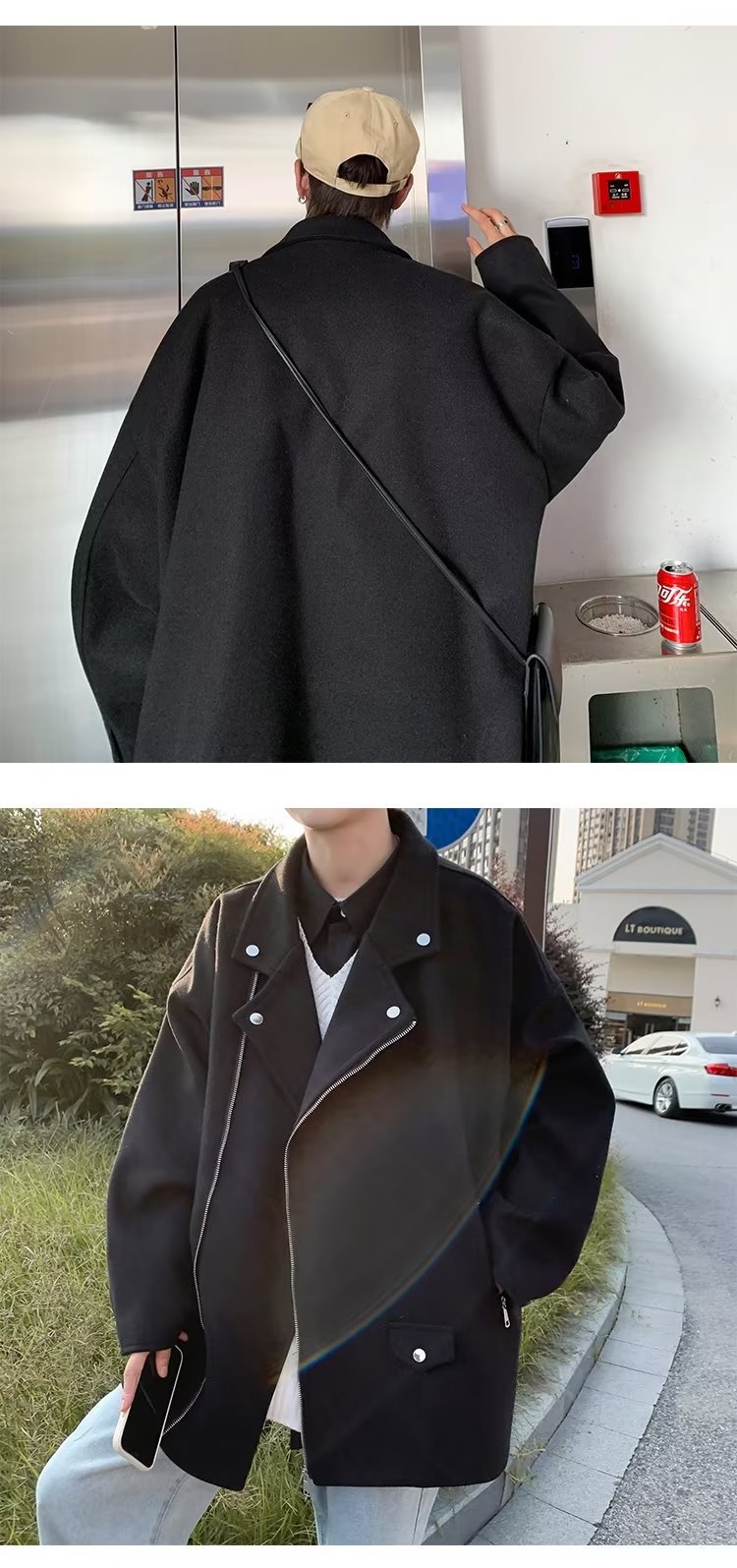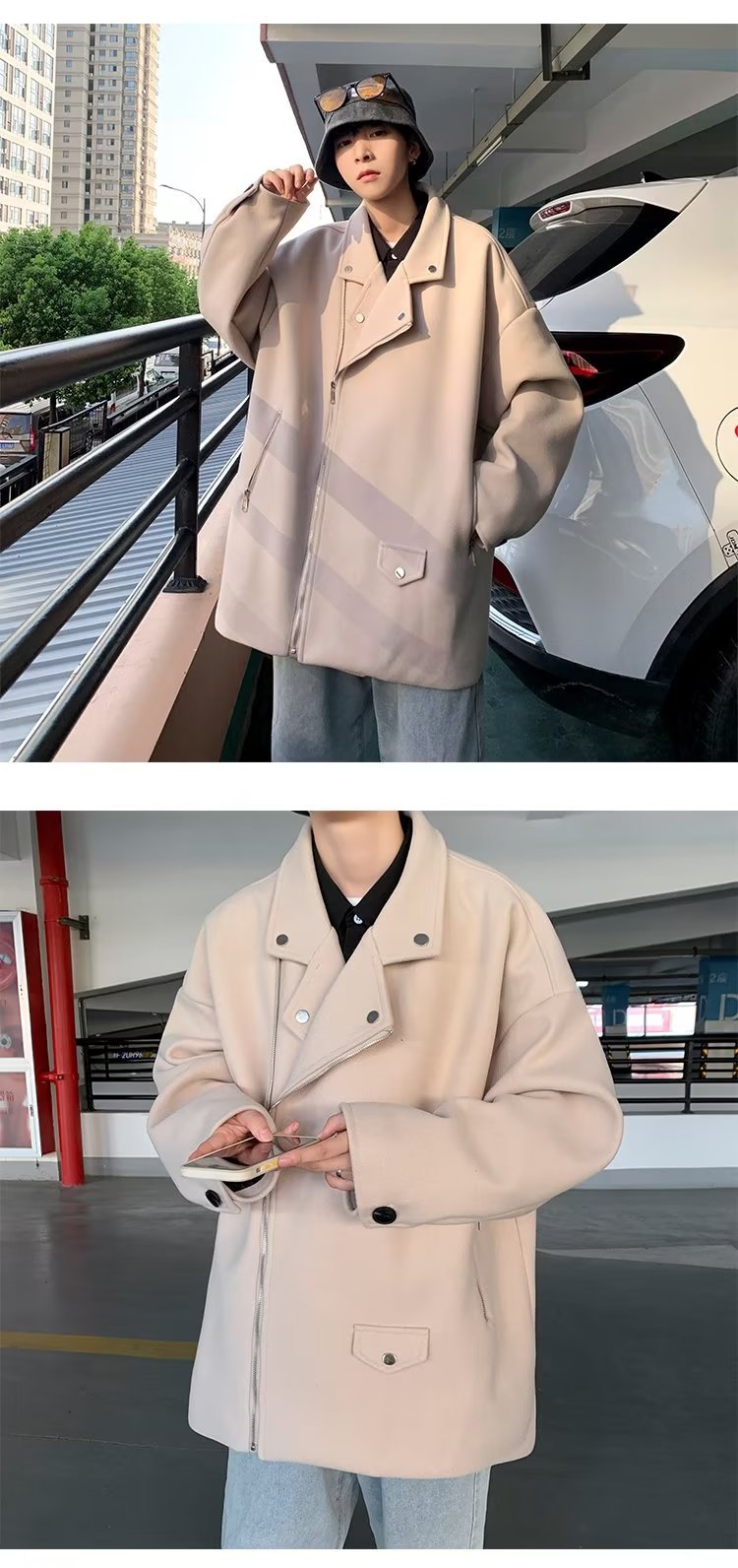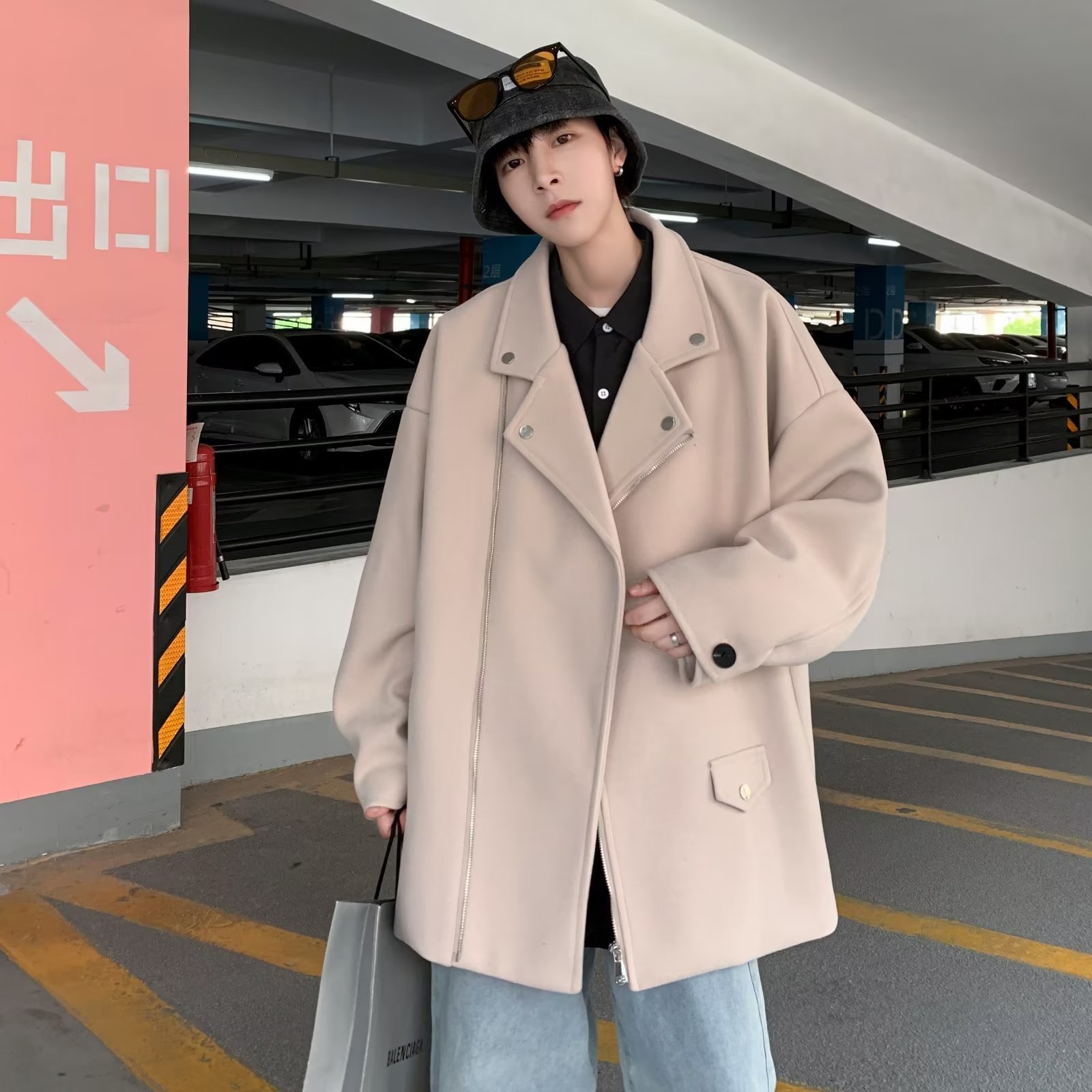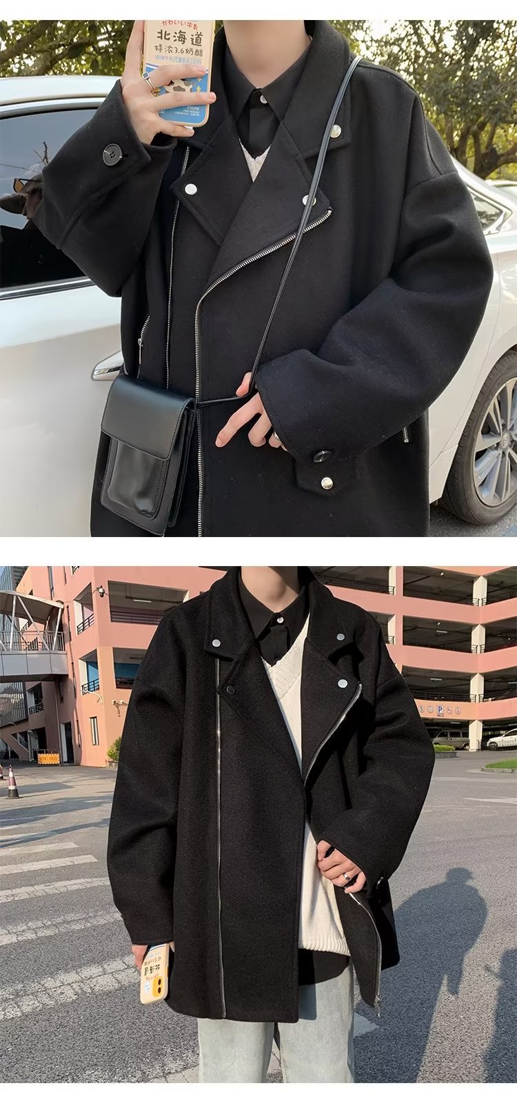 Acha y Agu abrigo de lana con bolsillo azul para hombres tendencia de invierno nueva pareja chaqueta de lana suelta