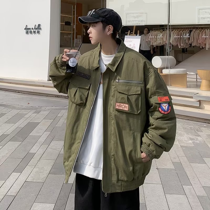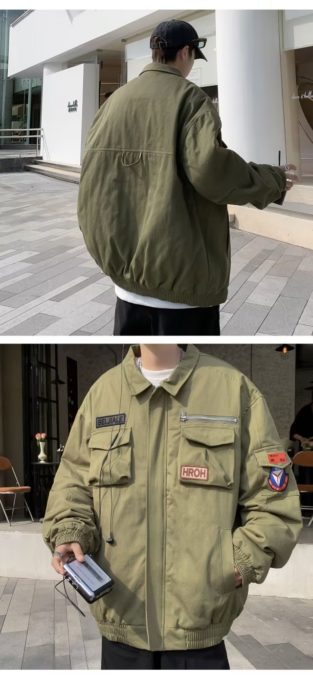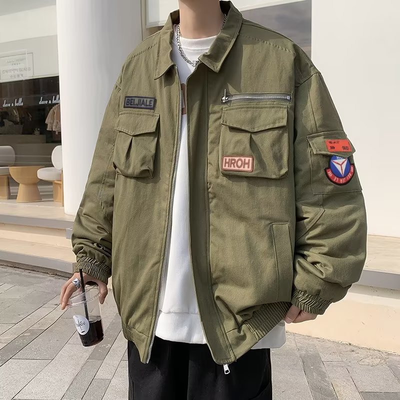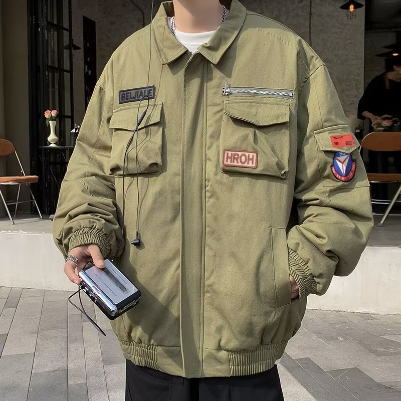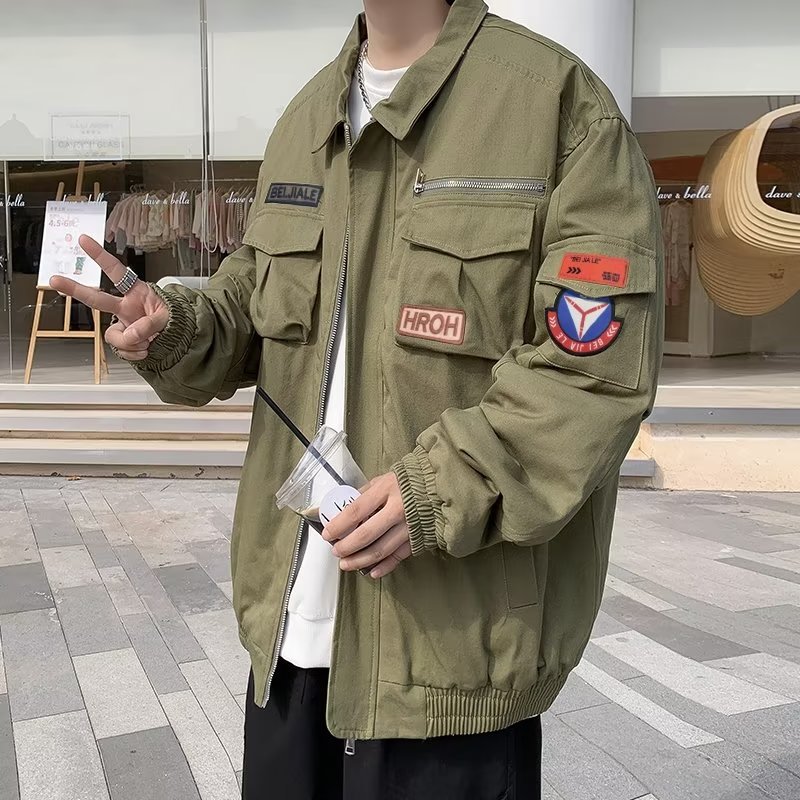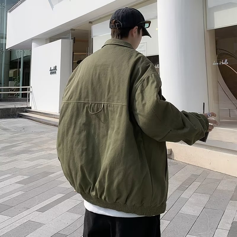 Chaqueta suelta de traje de trabajo de aviador retro americano para hombre, chaqueta de solapa de primavera y otoño