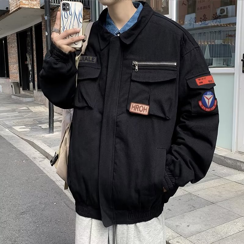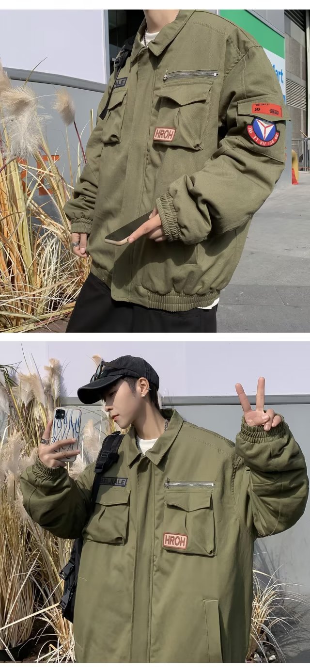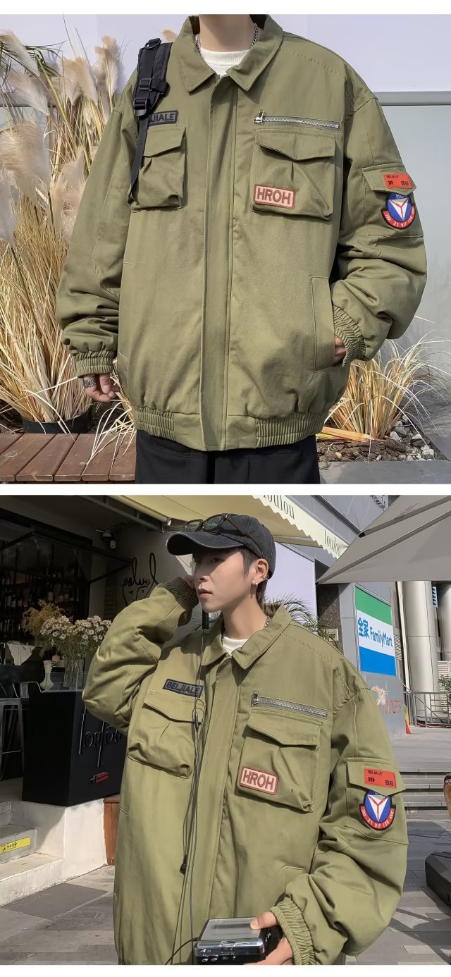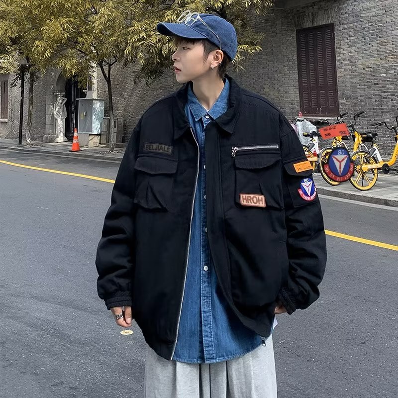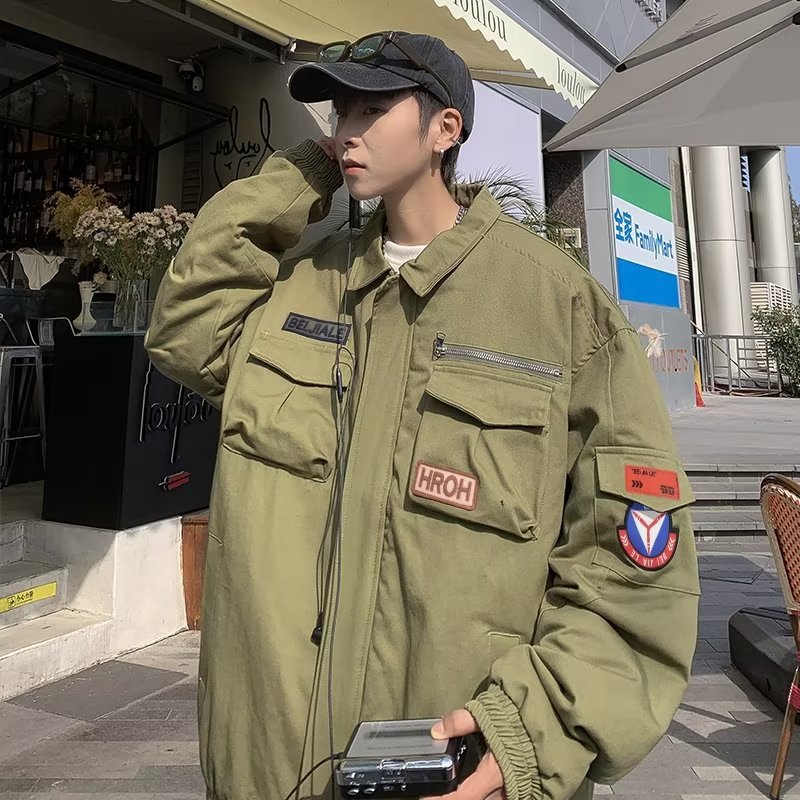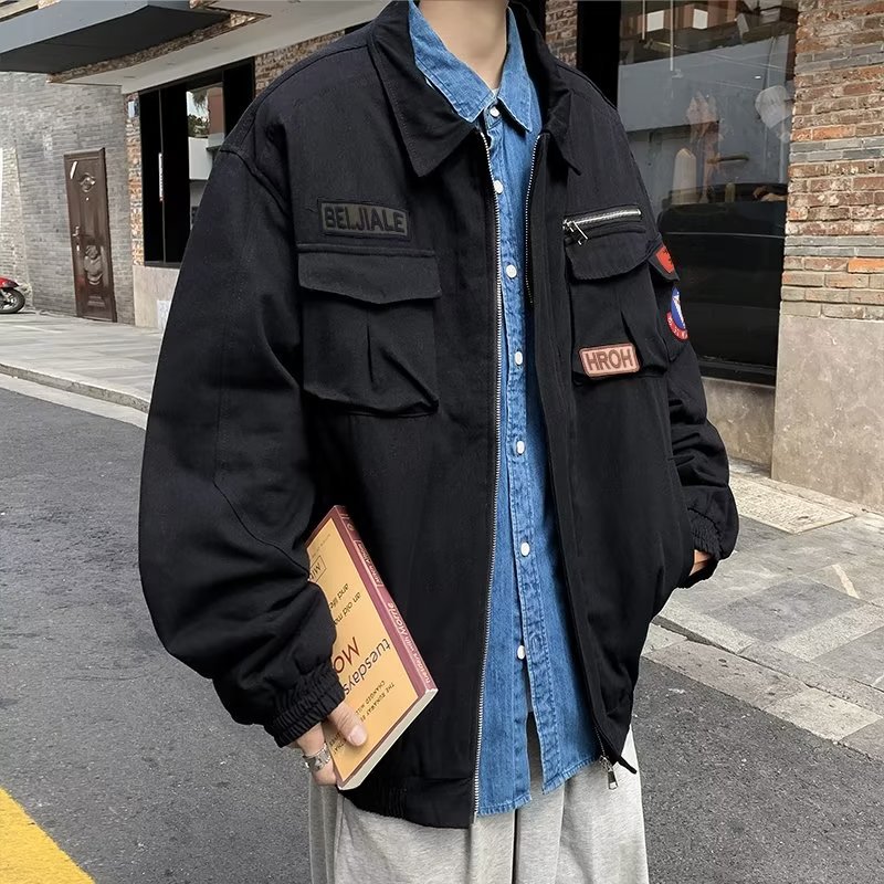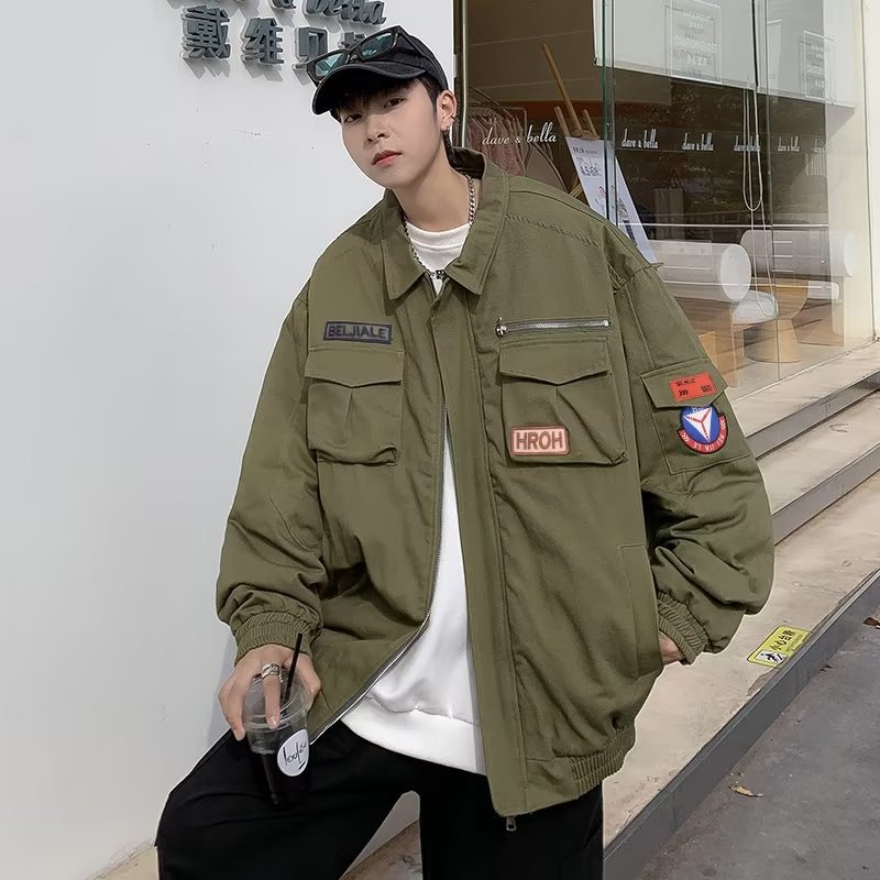 Chaqueta suelta de traje de trabajo de aviador retro americano para hombre, chaqueta de solapa de primavera y otoño