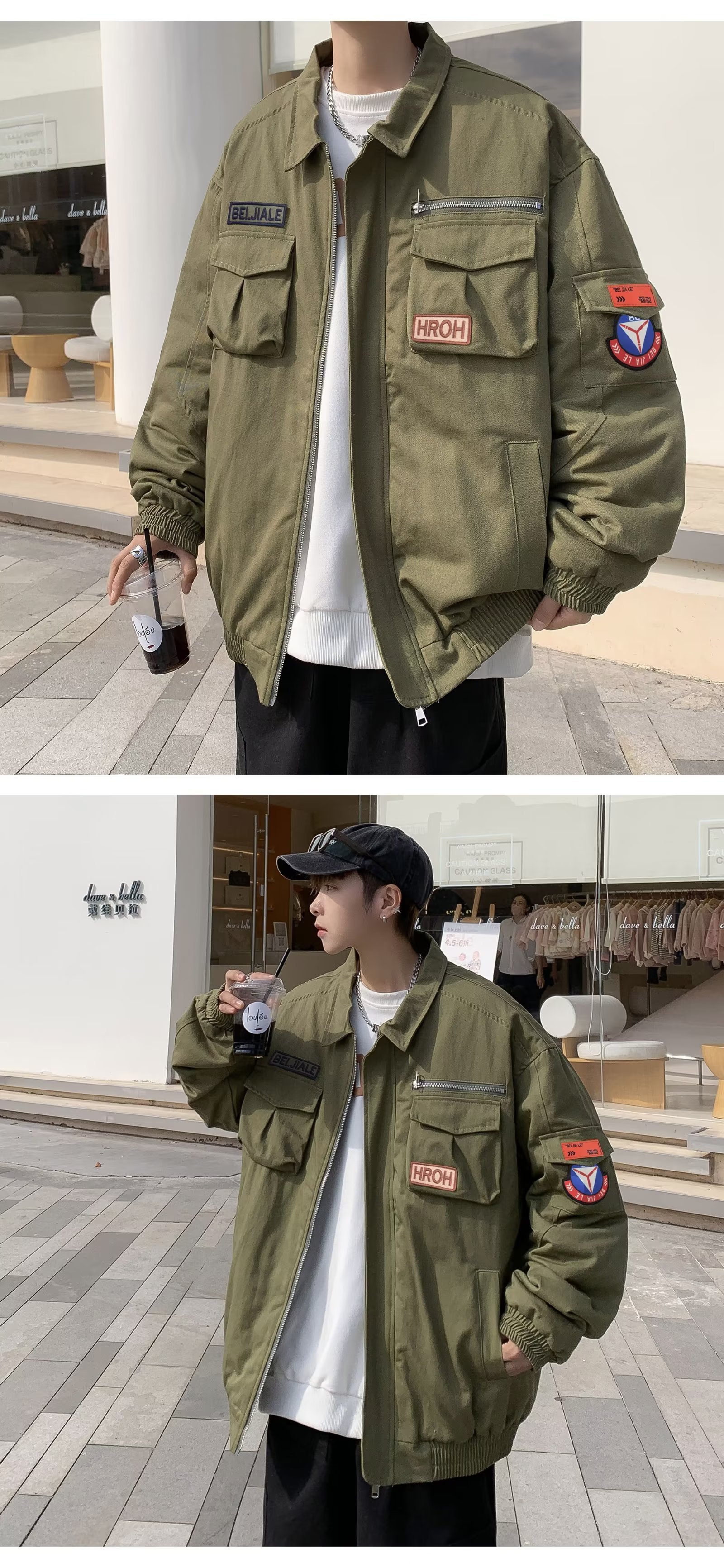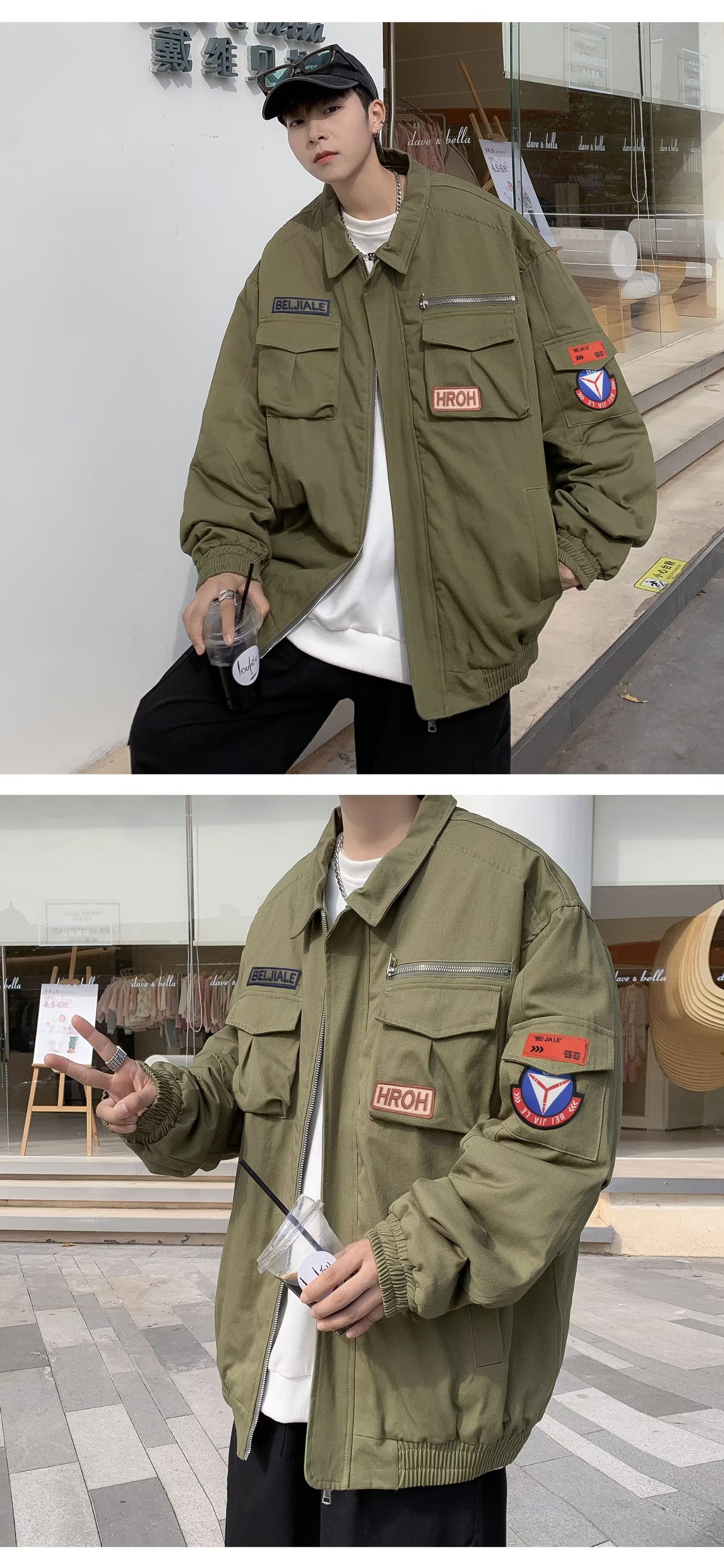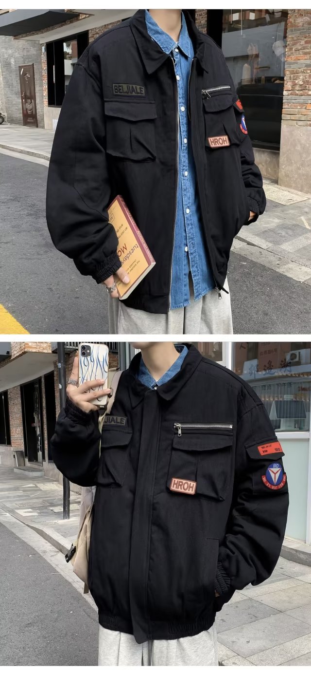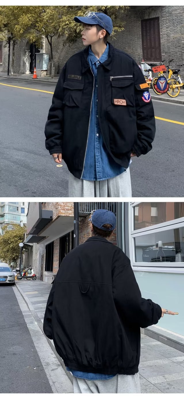 Chaqueta suelta de traje de trabajo de aviador retro americano para hombre, chaqueta de solapa de primavera y otoño