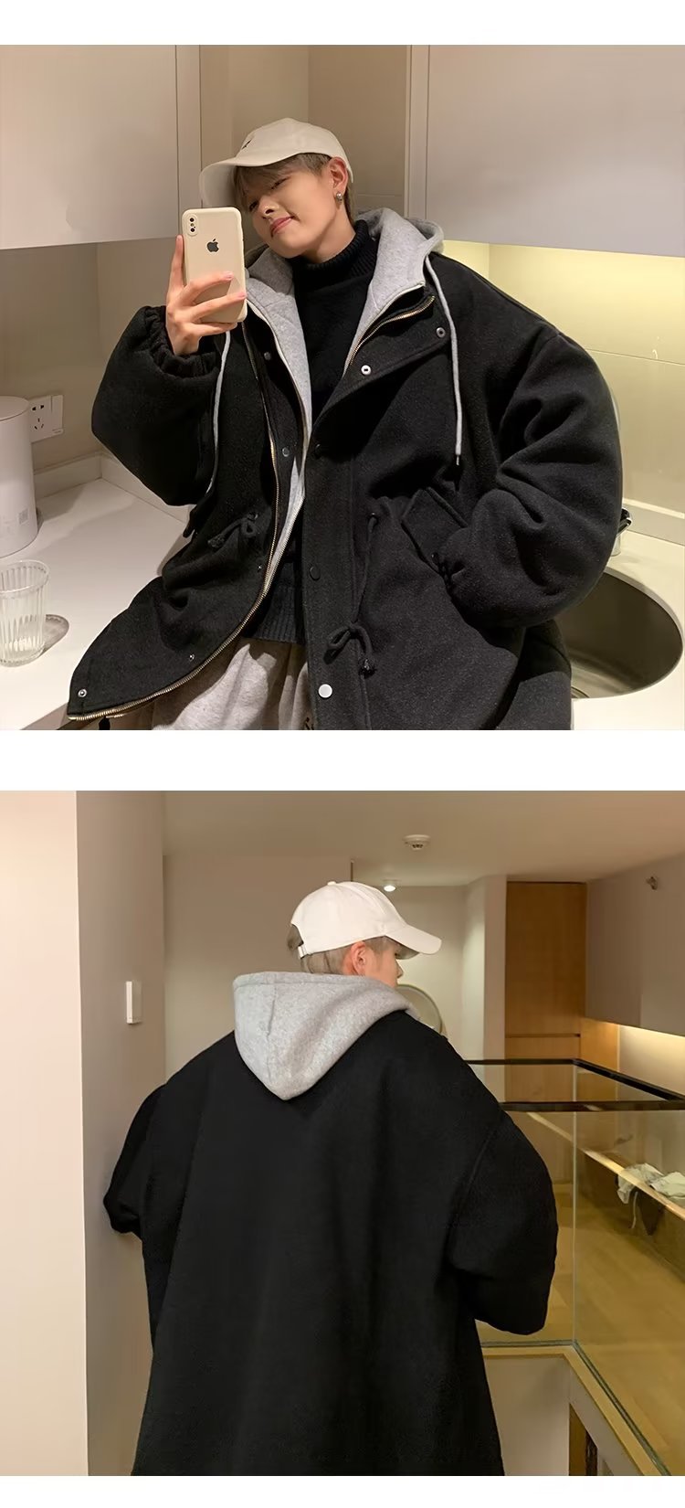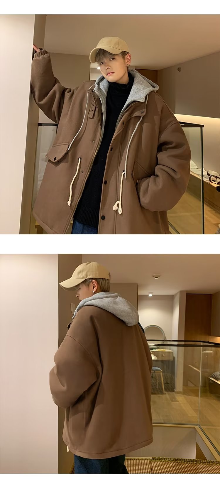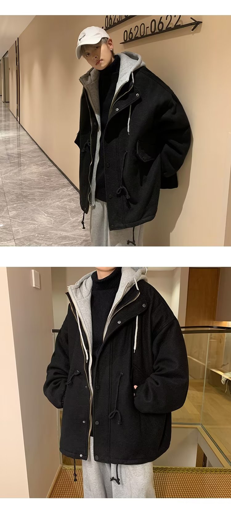Abrigo de lana con capucha ropa de invierno para hombres nuevo abrigo casual suelto grueso estilo de Hong Kong marca de moda hermosa gabardina de longitud media