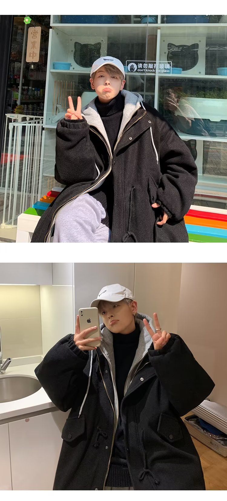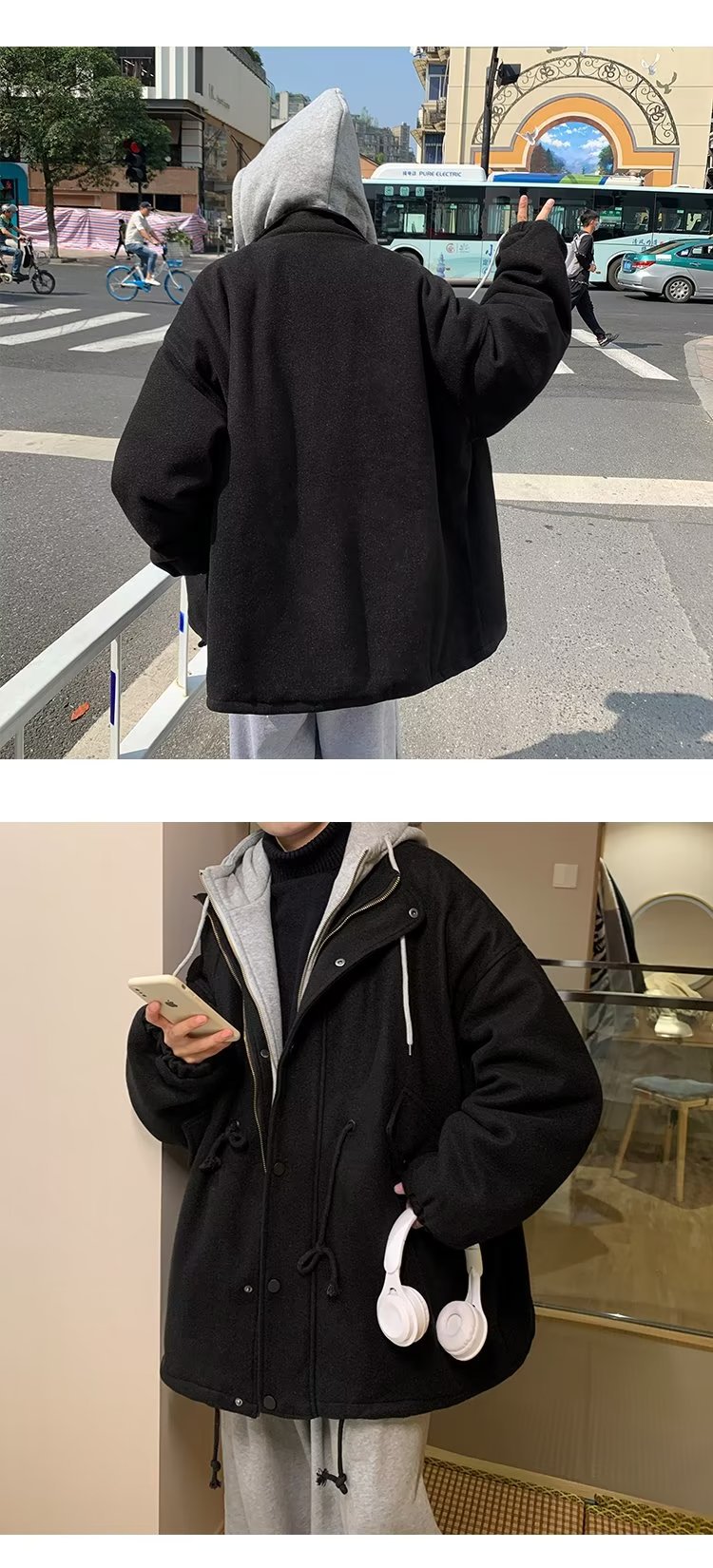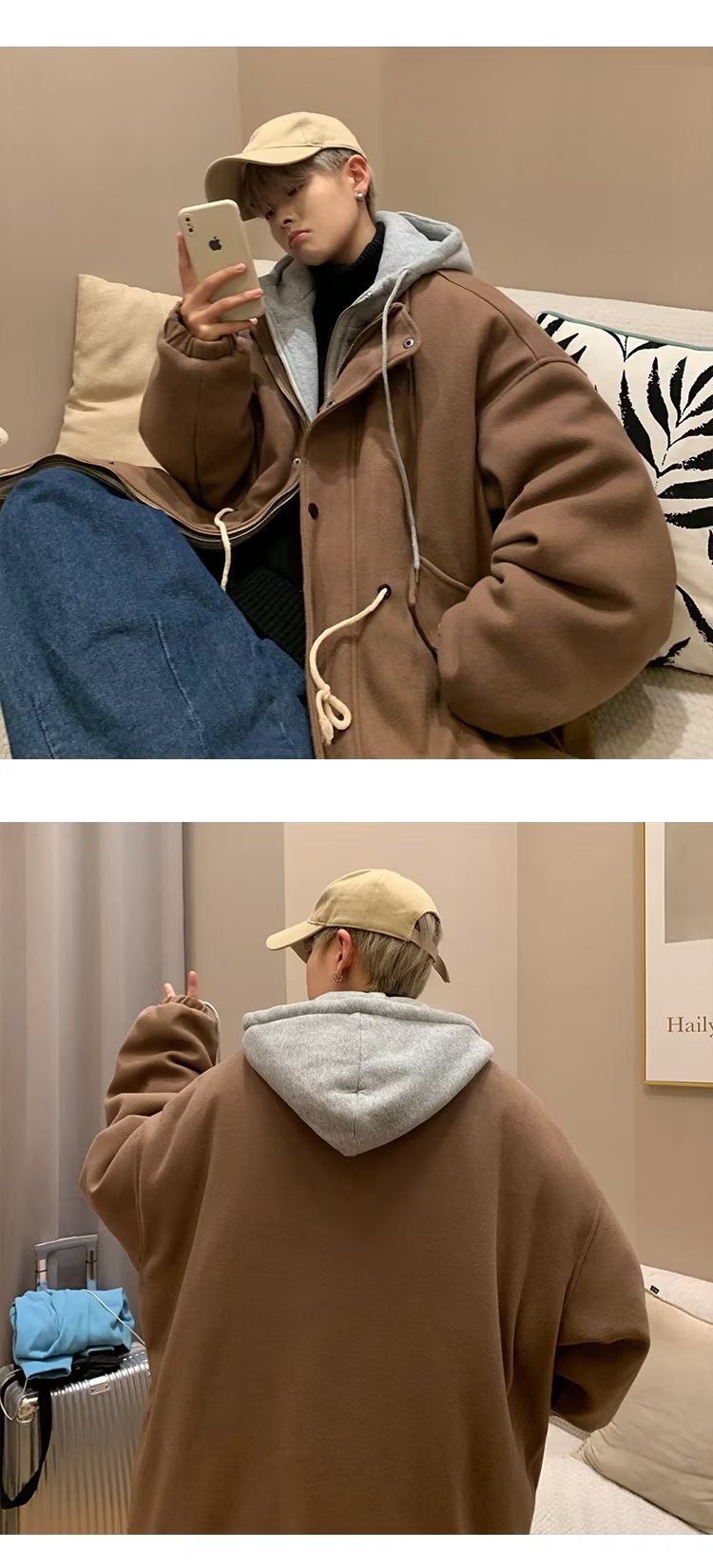 Abrigo de lana con capucha ropa de invierno para hombres nuevo abrigo casual suelto grueso estilo de Hong Kong marca de moda hermosa gabardina de longitud media