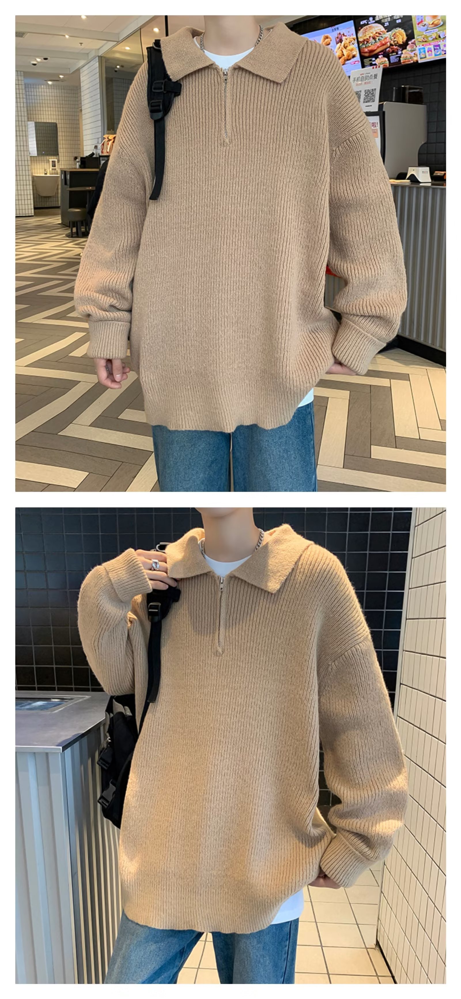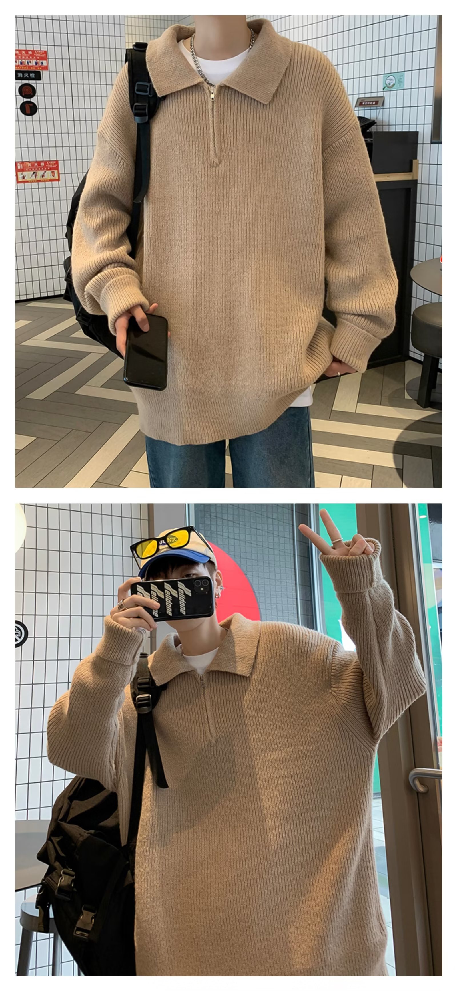 2024 nuevos hombres de otoño e invierno suéter suéter media cremallera retro color sólido cuello alto salvaje suelto conjunto simple deportivo