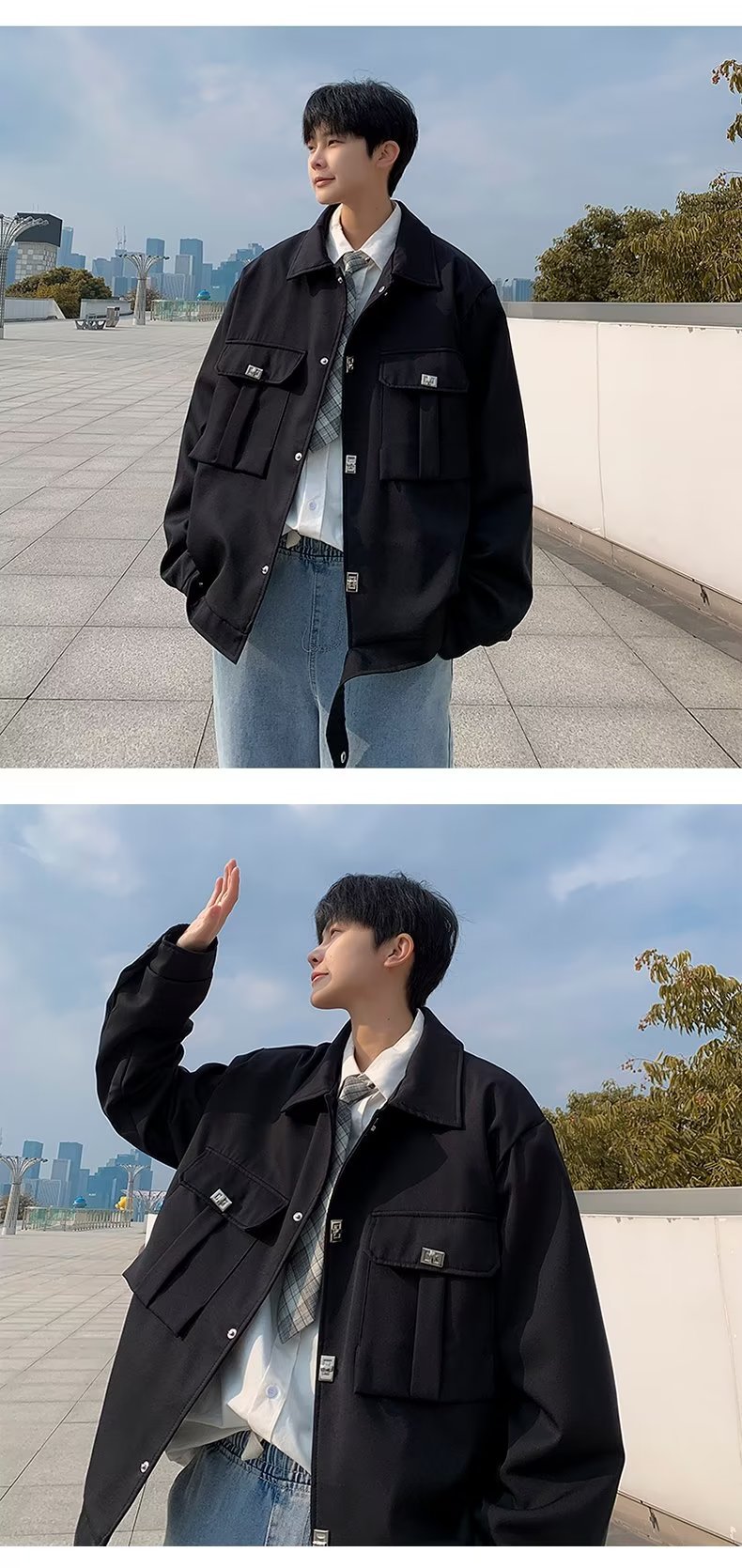 2024 Primavera y otoño Chaqueta guapa Hombre ins High Street Trendy Marca Hong Kong Estilo japonés Harajuku Chaqueta suelta de moda coreana