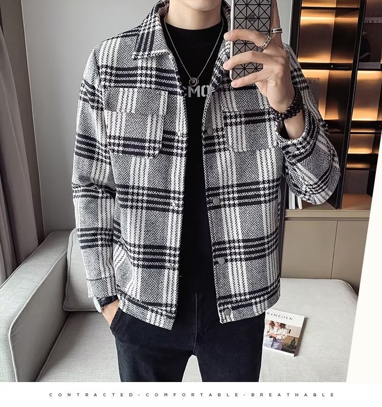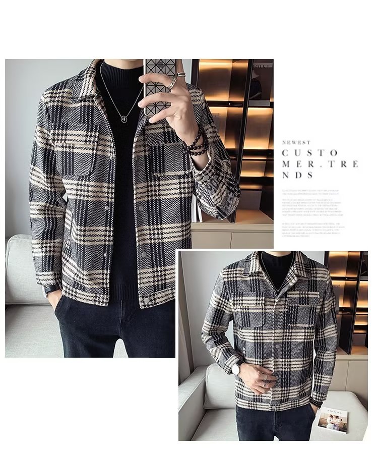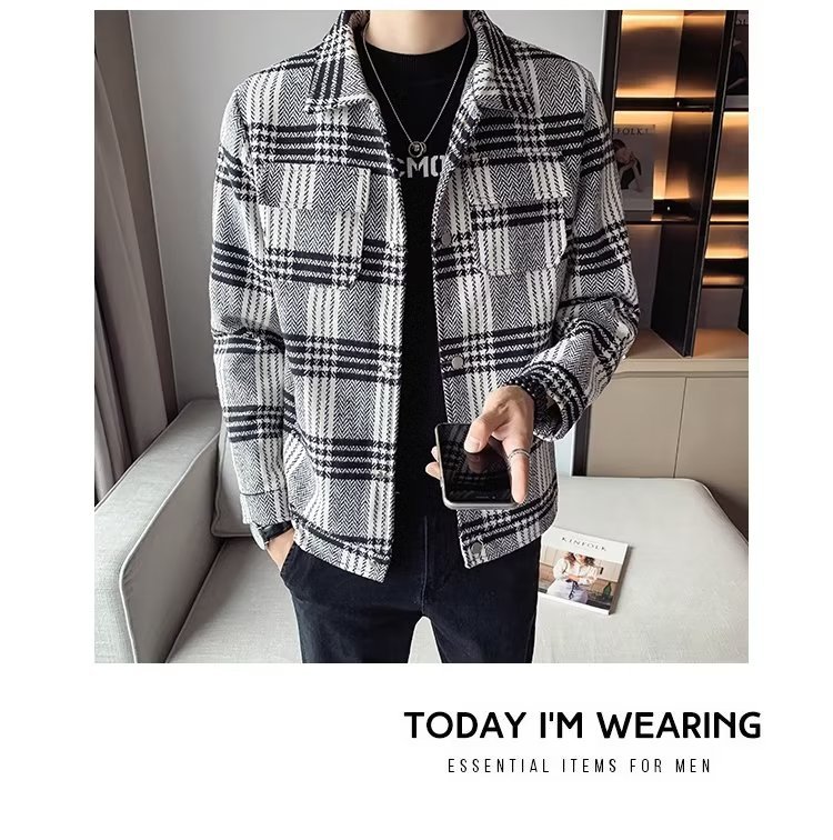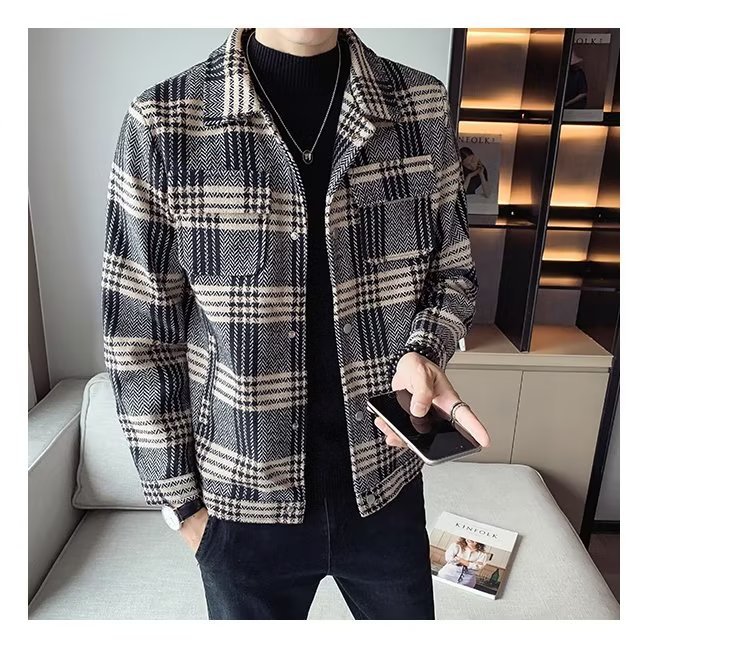 Abrigo de lana corto engrosado con algodón para hombres jóvenes otoño e invierno chaqueta de solapa delgada para hombres chaqueta de lana para hombres