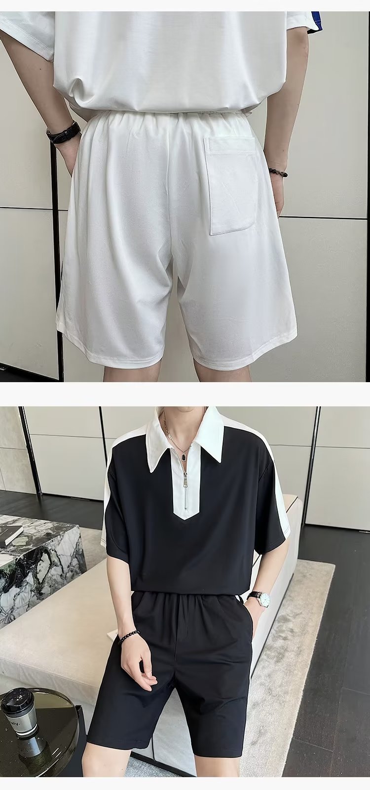 Otoño, personalidad de moda, combinación de colores, deportes y ocio, traje suelto, traje de dos piezas con suéter para hombre