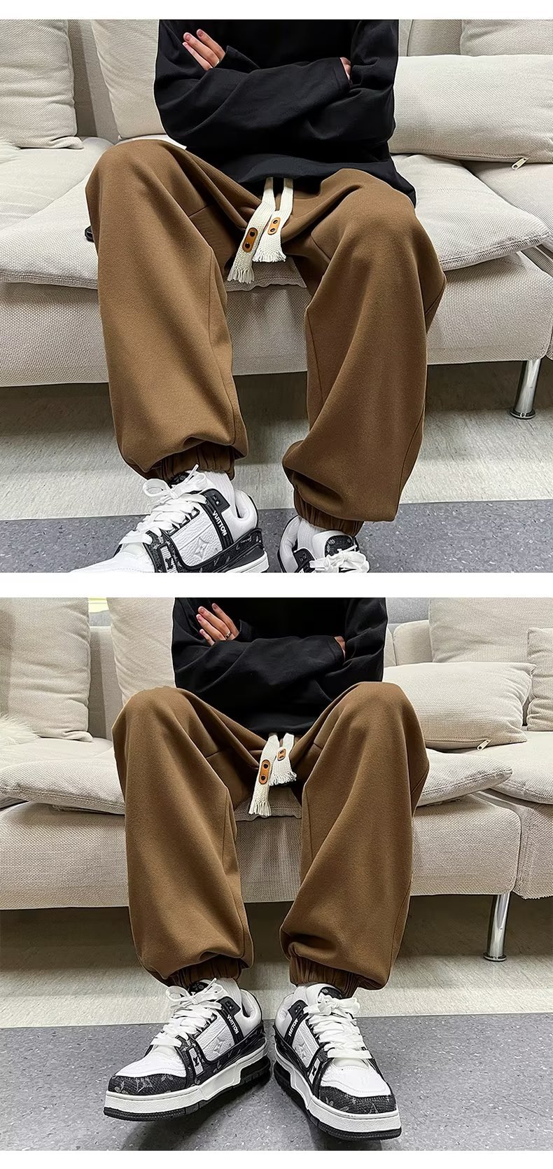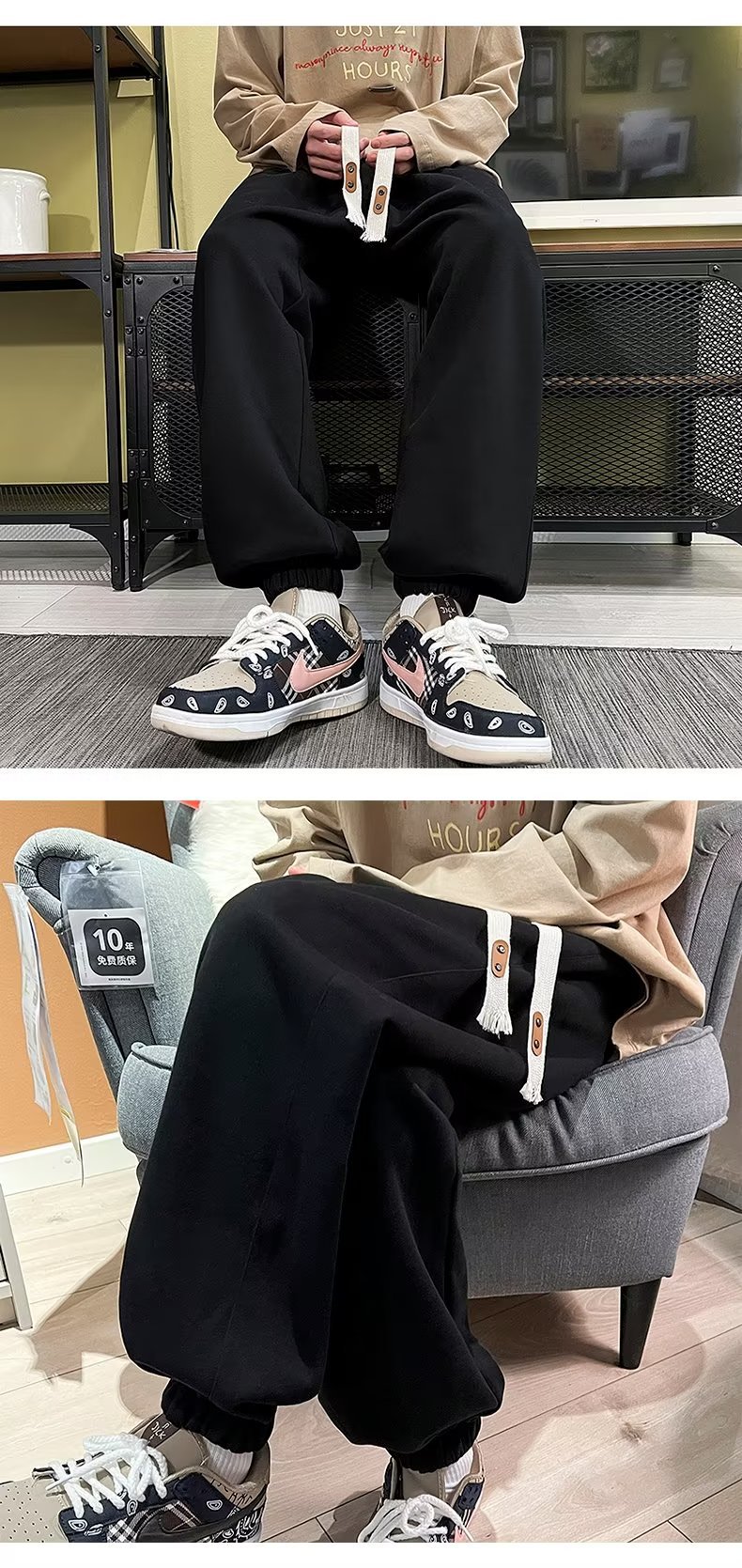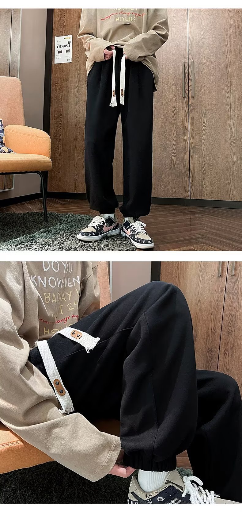 Pantalones casuales de todo fósforo estilo ins Hong Kong pantalones casuales de pierna recta sueltos para hombres 2024 pantalones con corsés para hombres de moda pantalones de hombre de moda de todo fósforo