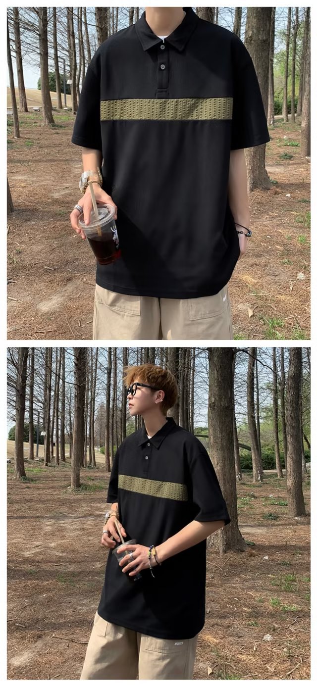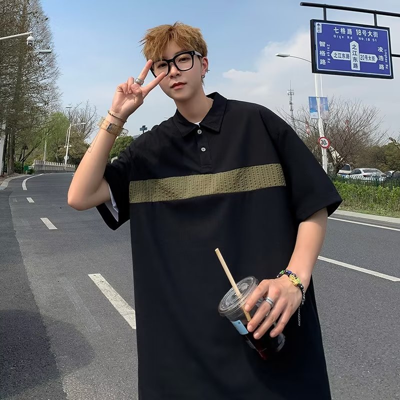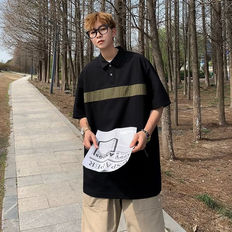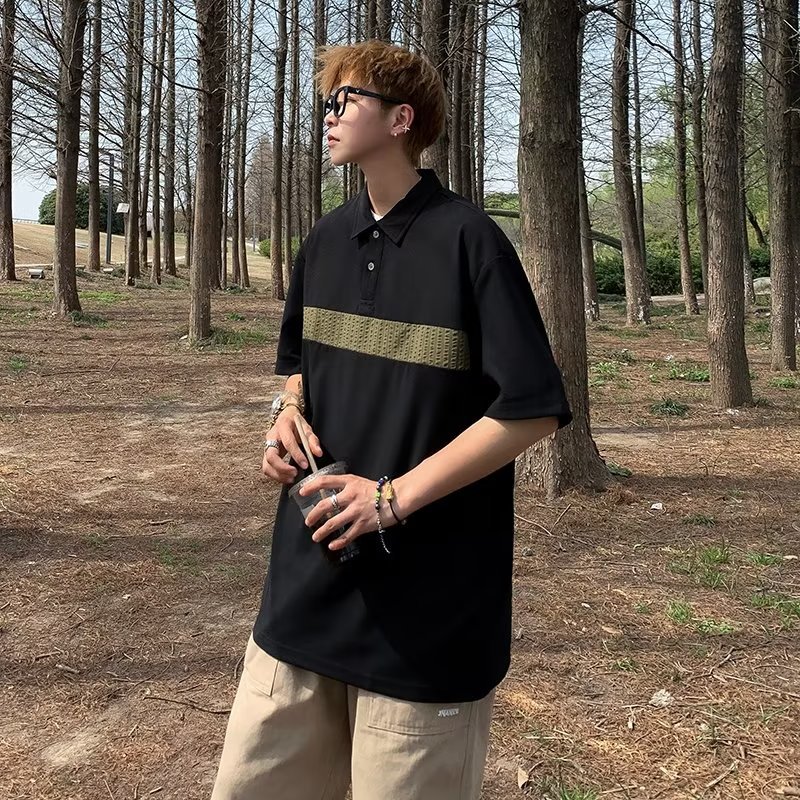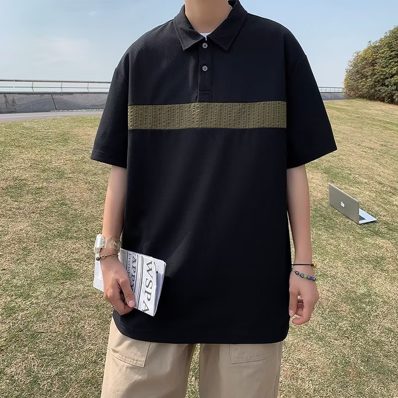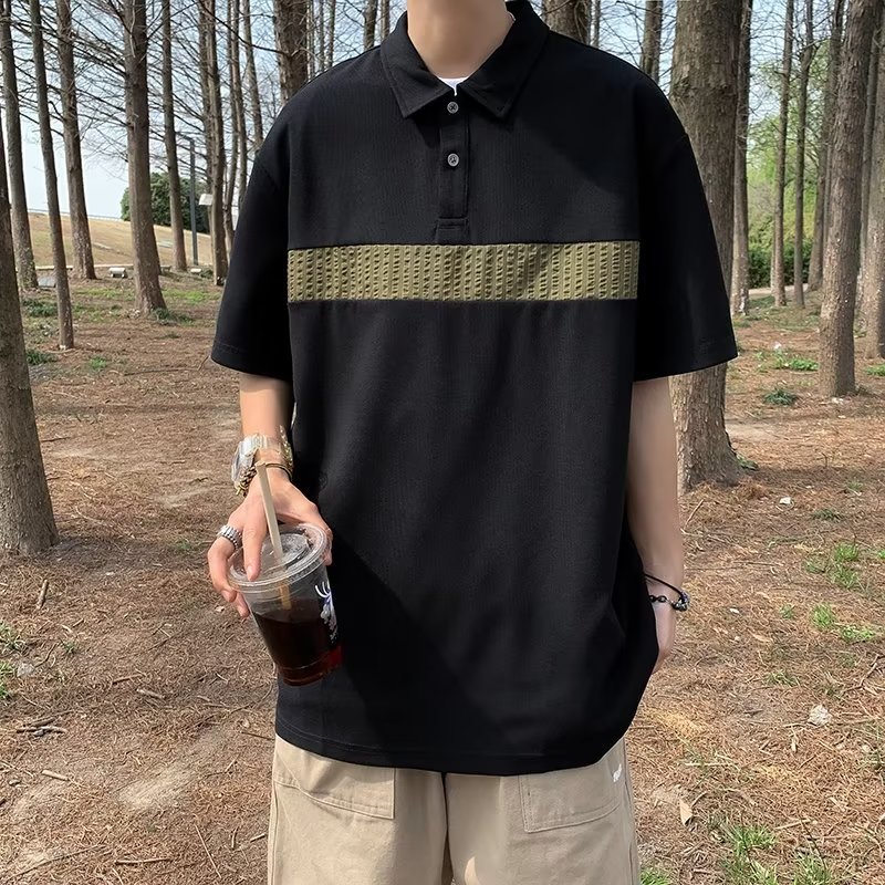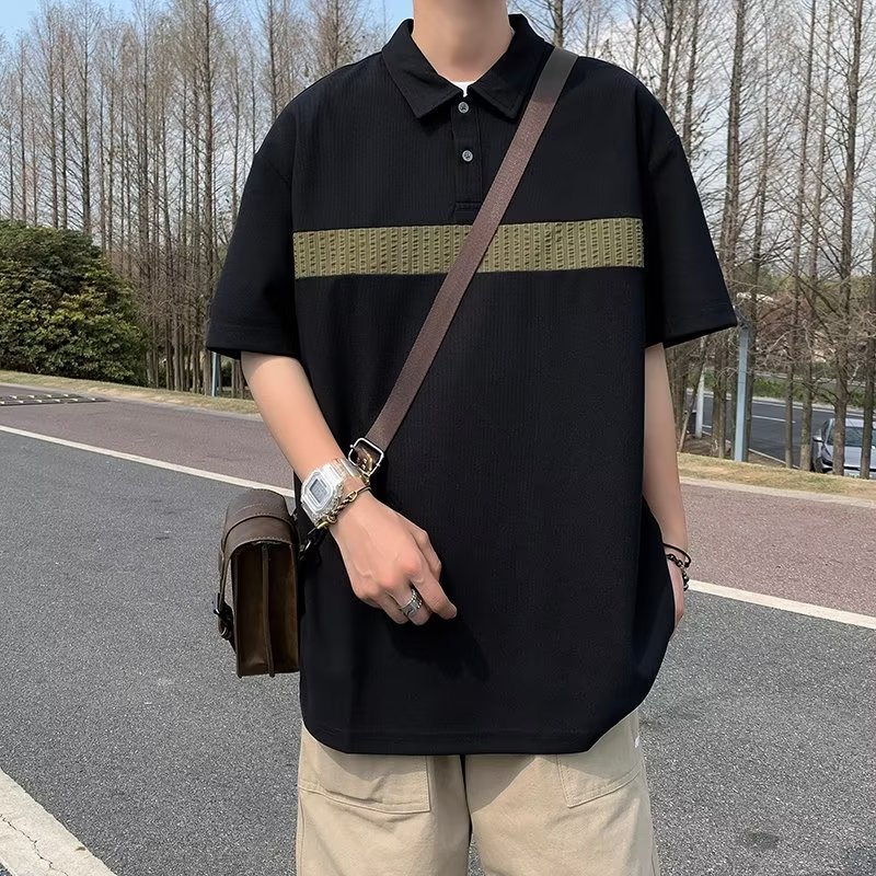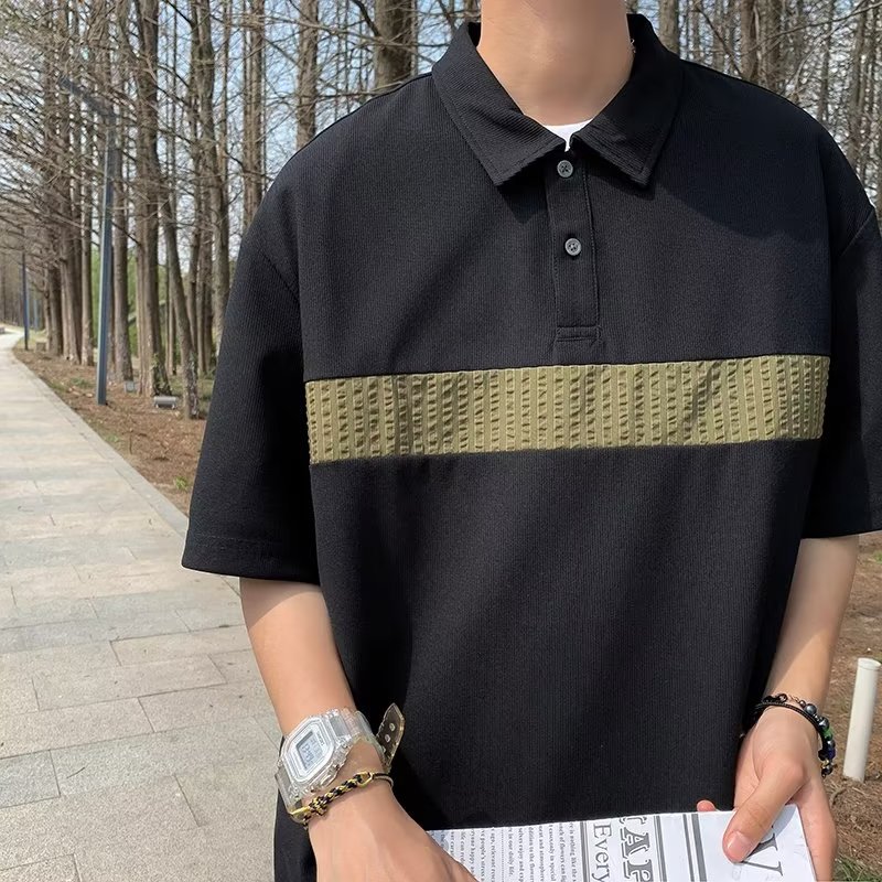 Camiseta de hombre de nuevo estilo polo camisa de hombre de manga corta solapa media manga tendencia camiseta costura tela transpirable