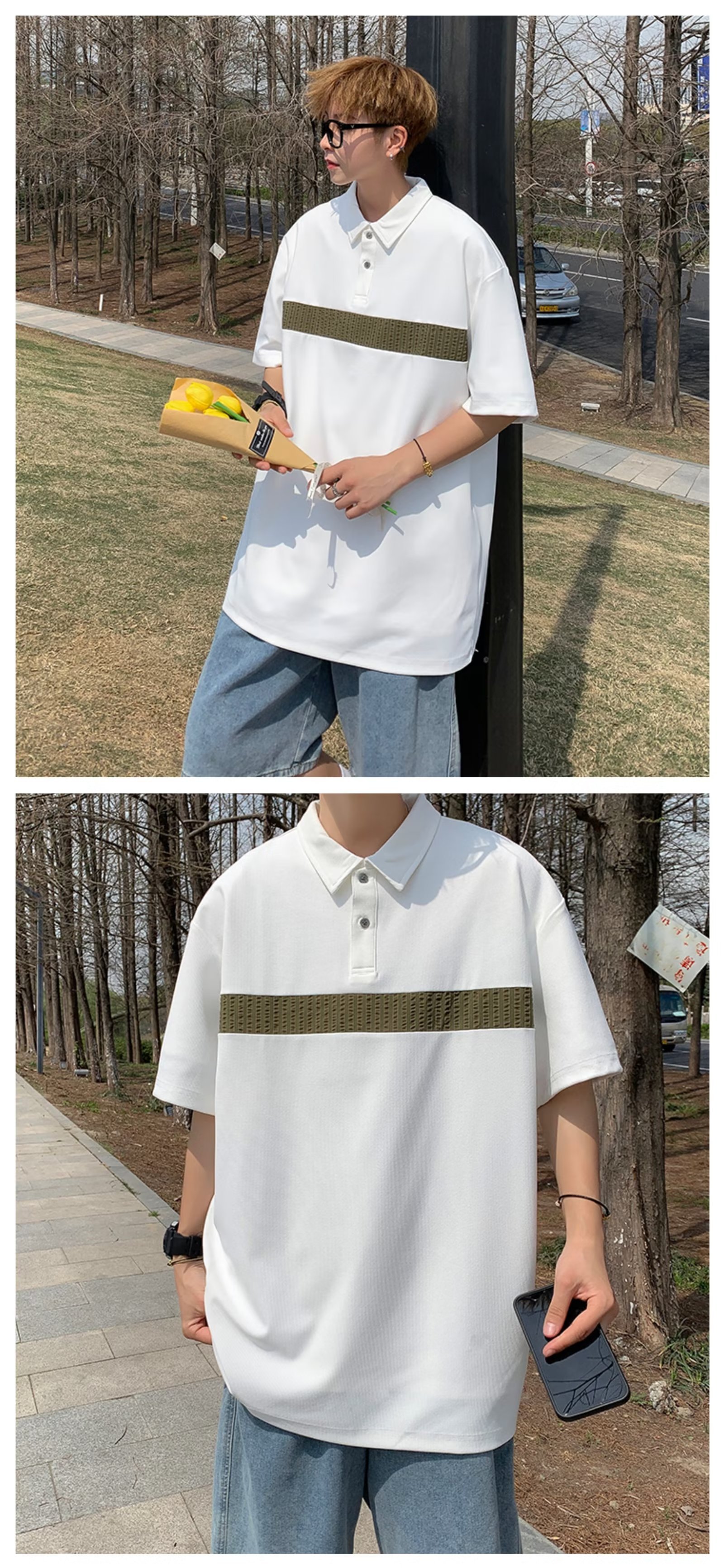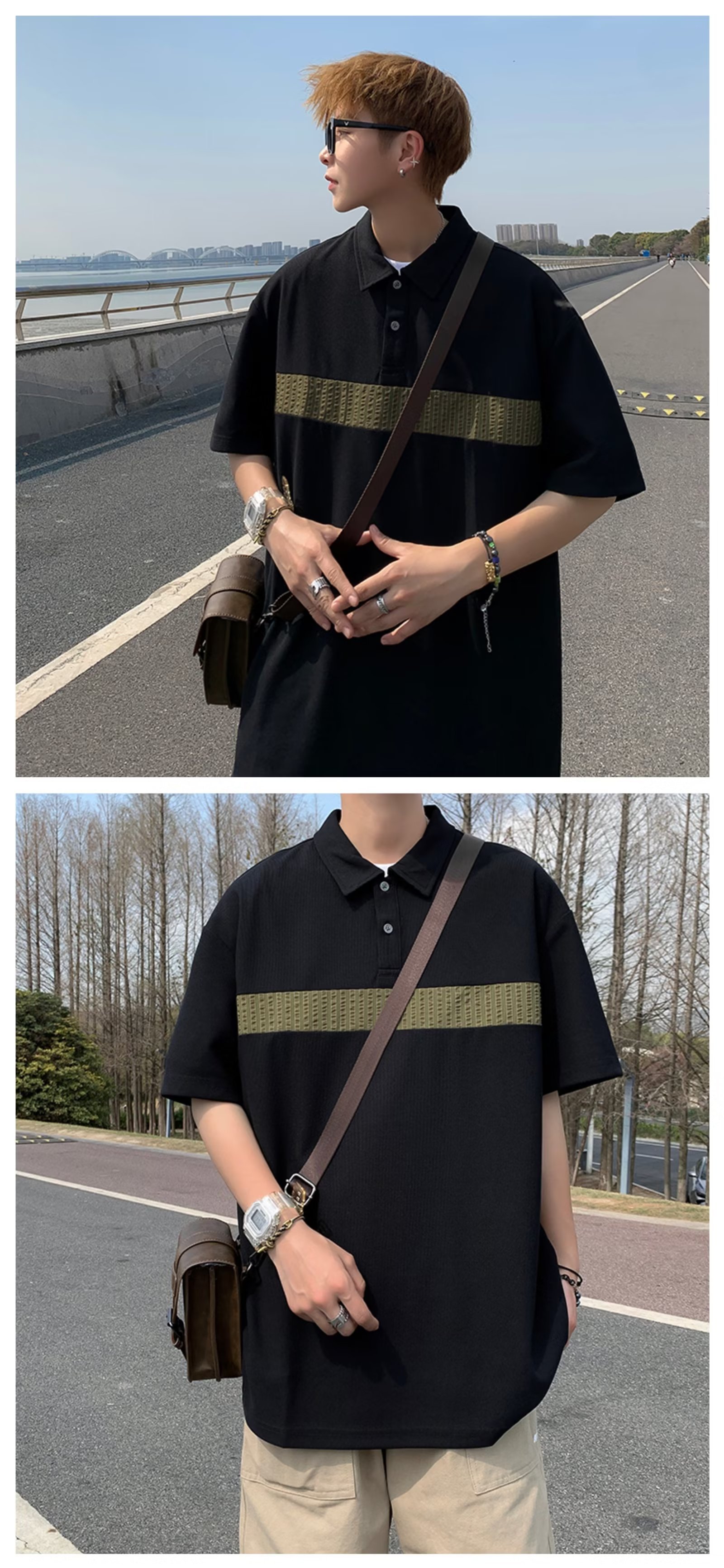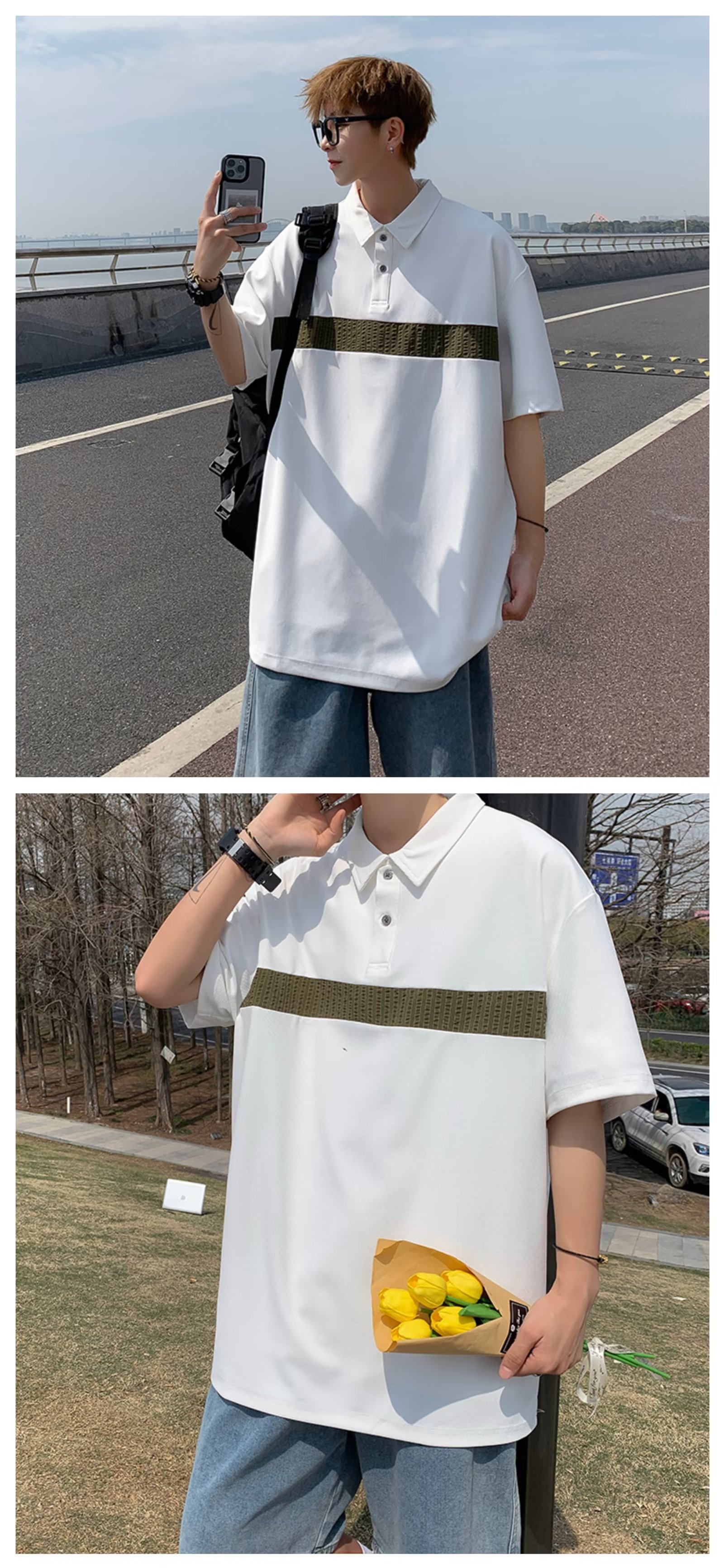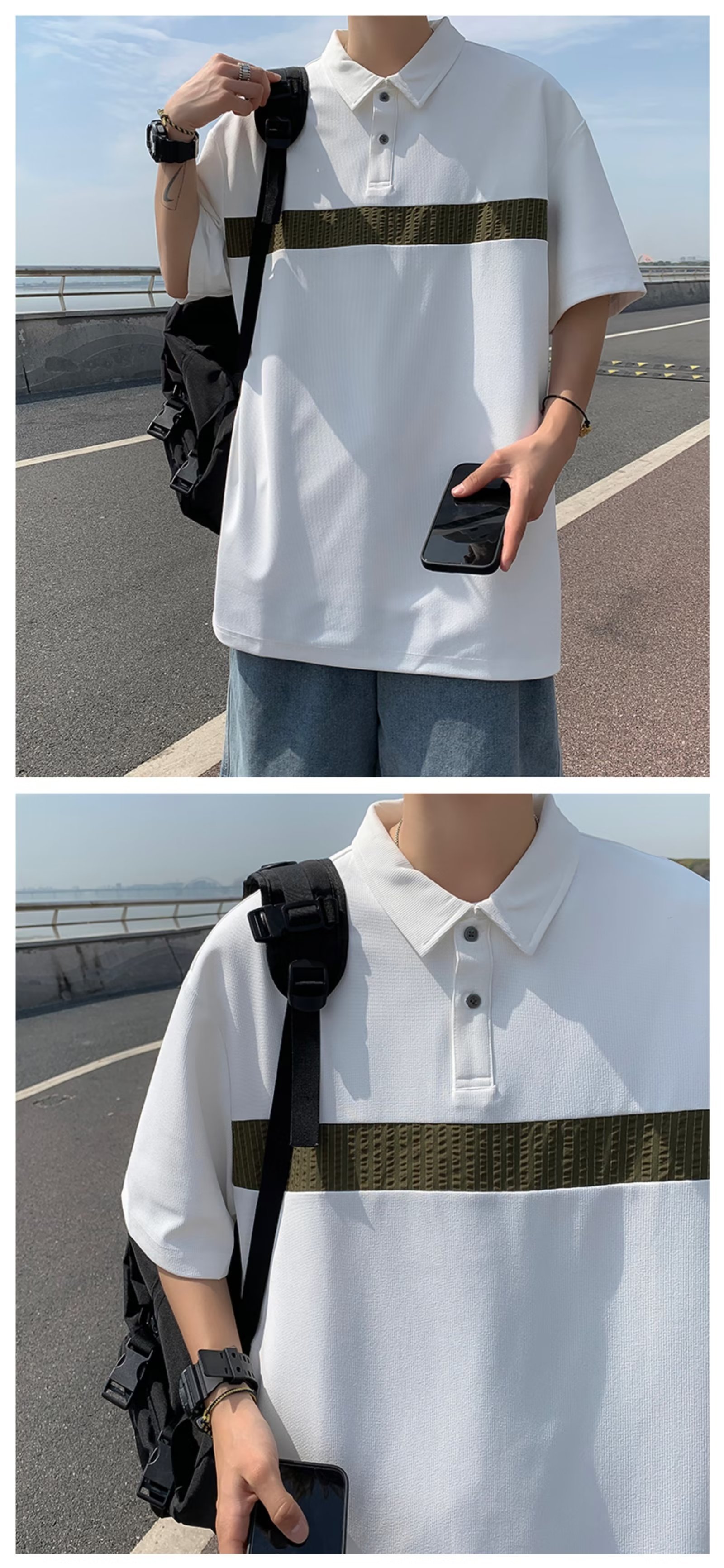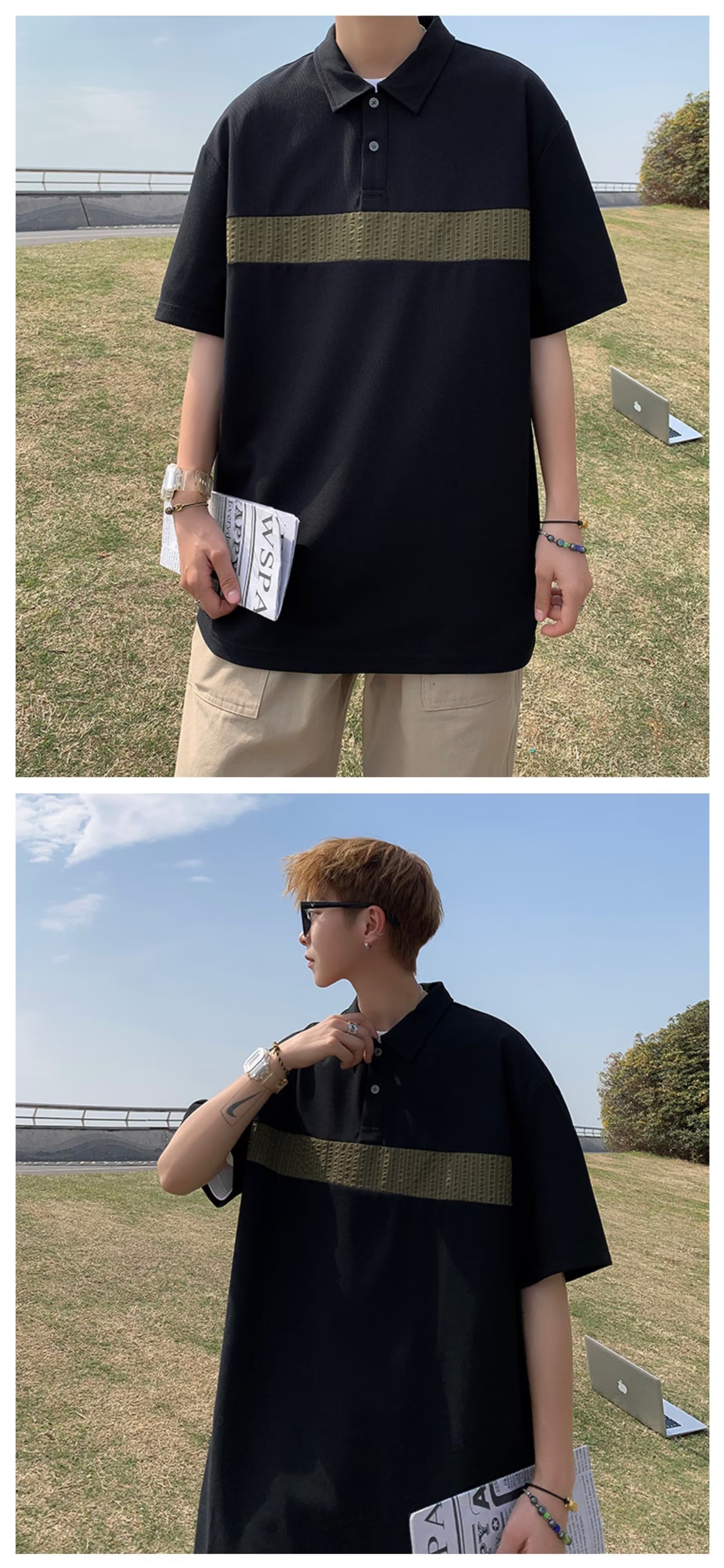 Camiseta de hombre de nuevo estilo polo camisa de hombre de manga corta solapa media manga tendencia camiseta costura tela transpirable
