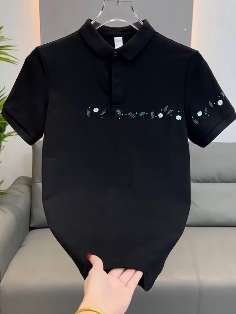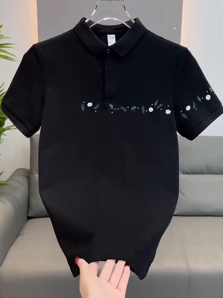 2024 nuevo polo estampado de alta gama camiseta de manga corta de moda para hombres verano nuevo estilo negocios solapa casual