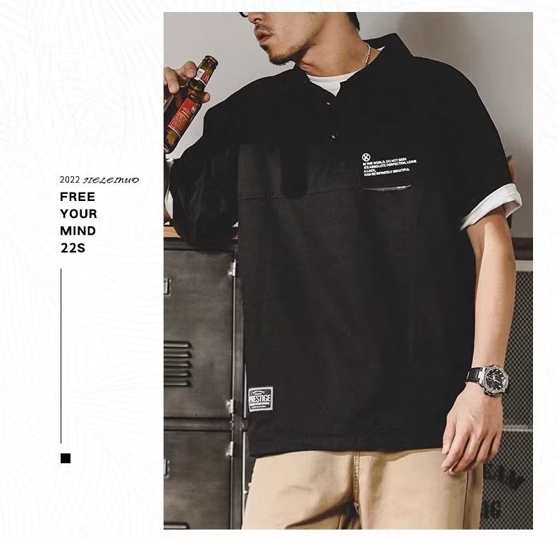 2024 nuevo polo de manga corta con solapa, camiseta de verano de marca de moda para hombres, camiseta de todo fósforo de tendencia delgada de estilo coreano