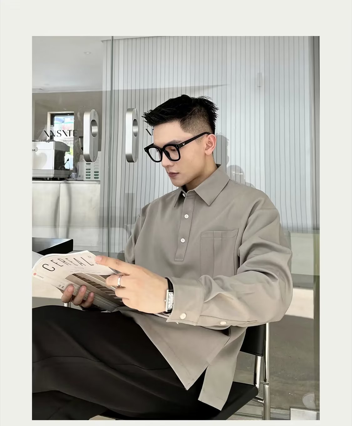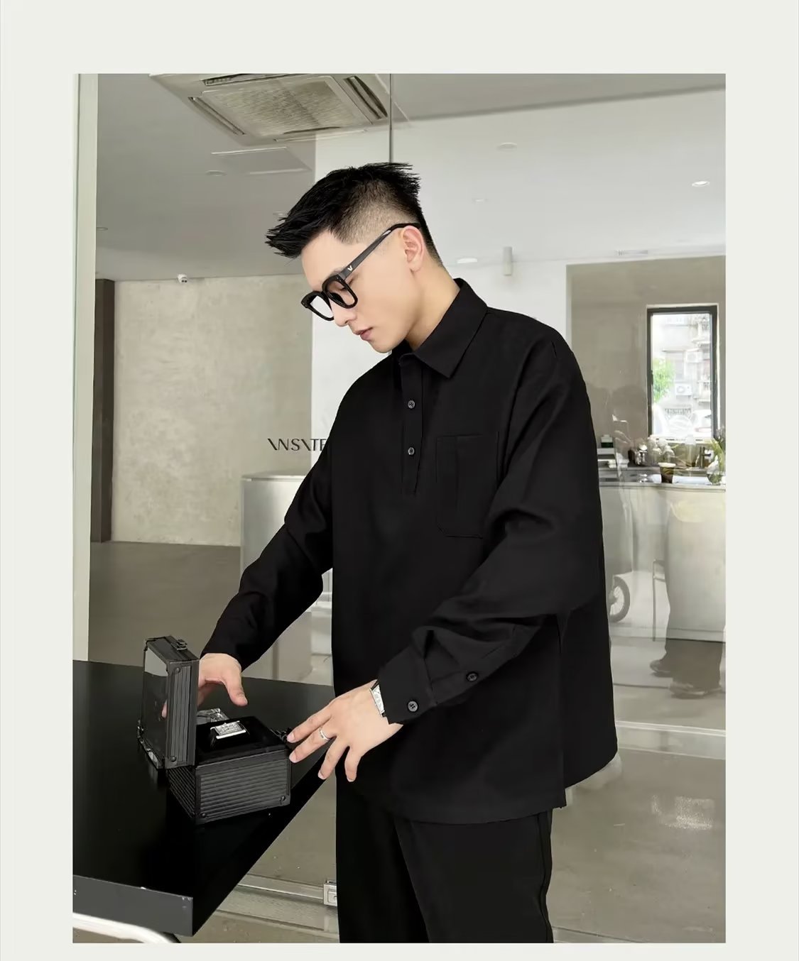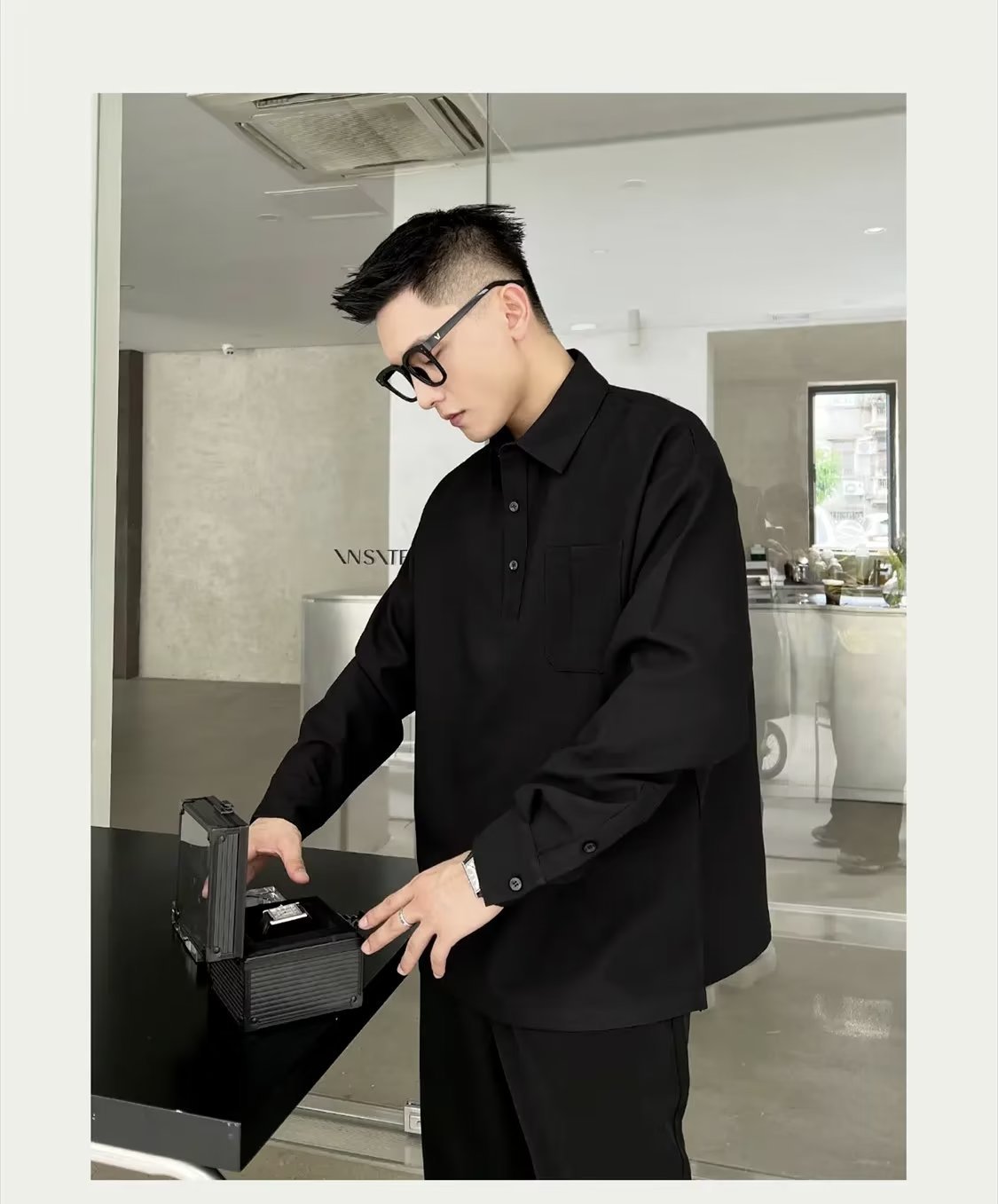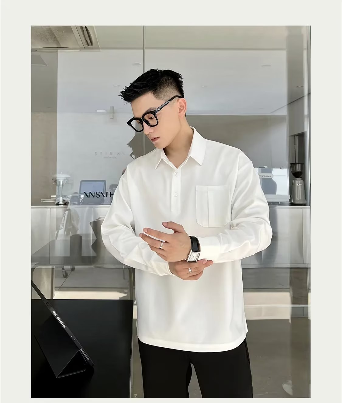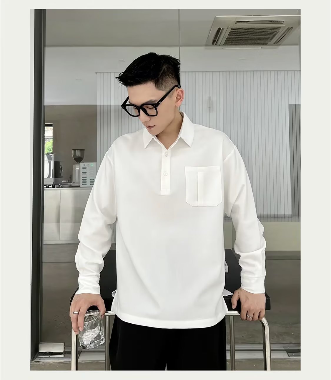 2024 marca de moda estilo universitario camisa polo de manga larga a juego de color tendencia de la moda masculina suéter de media cremallera suelto retro americano