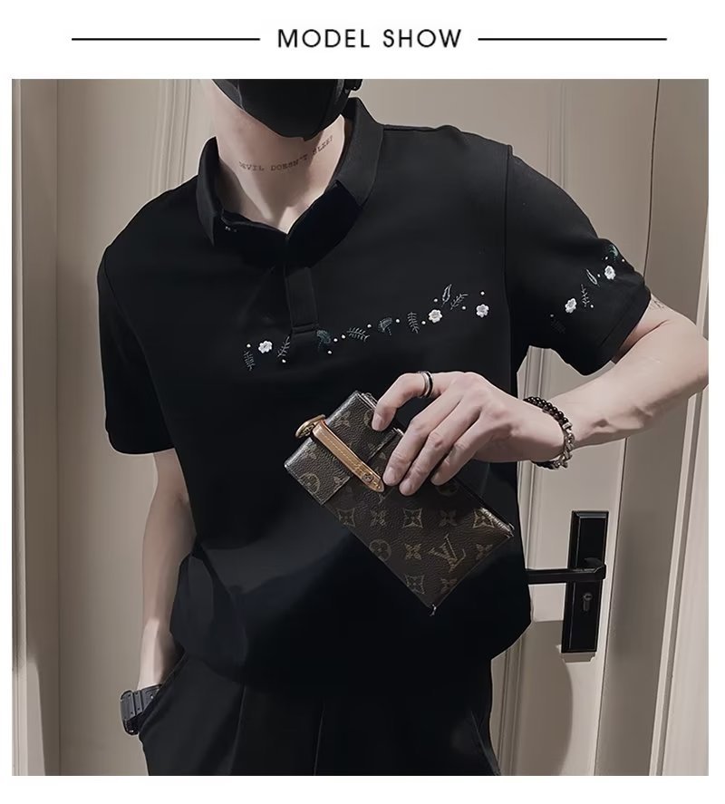 Camisa polo de manga corta con solapa de tendencia Camiseta de verano de marca de moda para hombres Versión coreana de la tendencia delgada 2024 nueva camiseta de todo fósforo