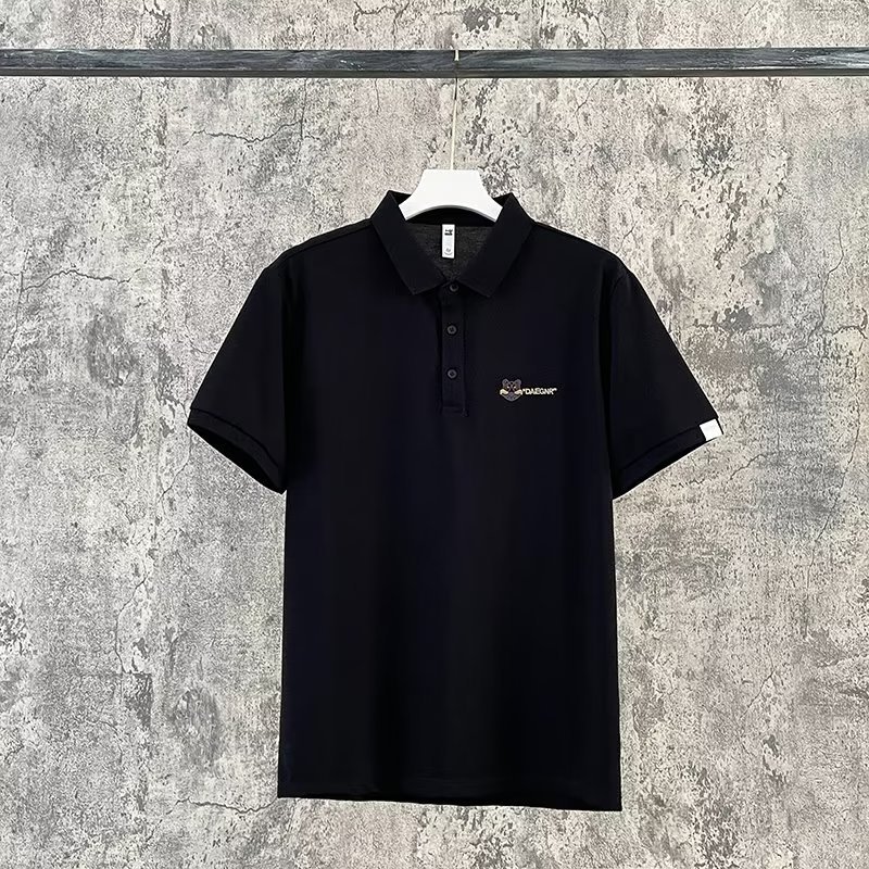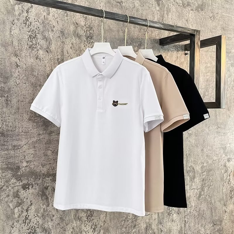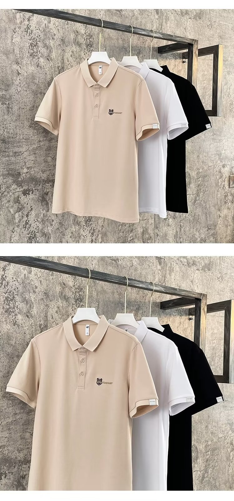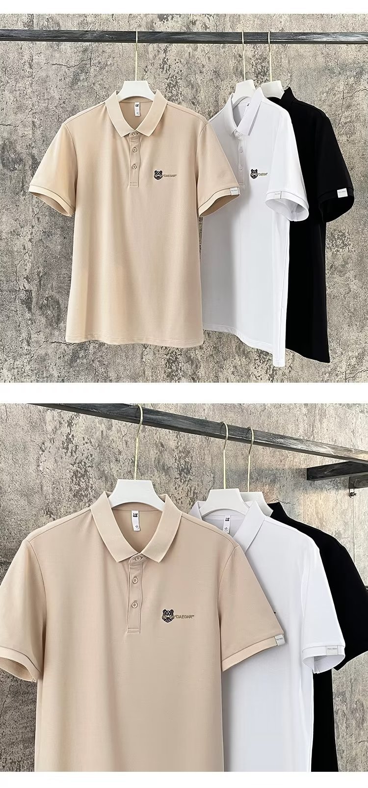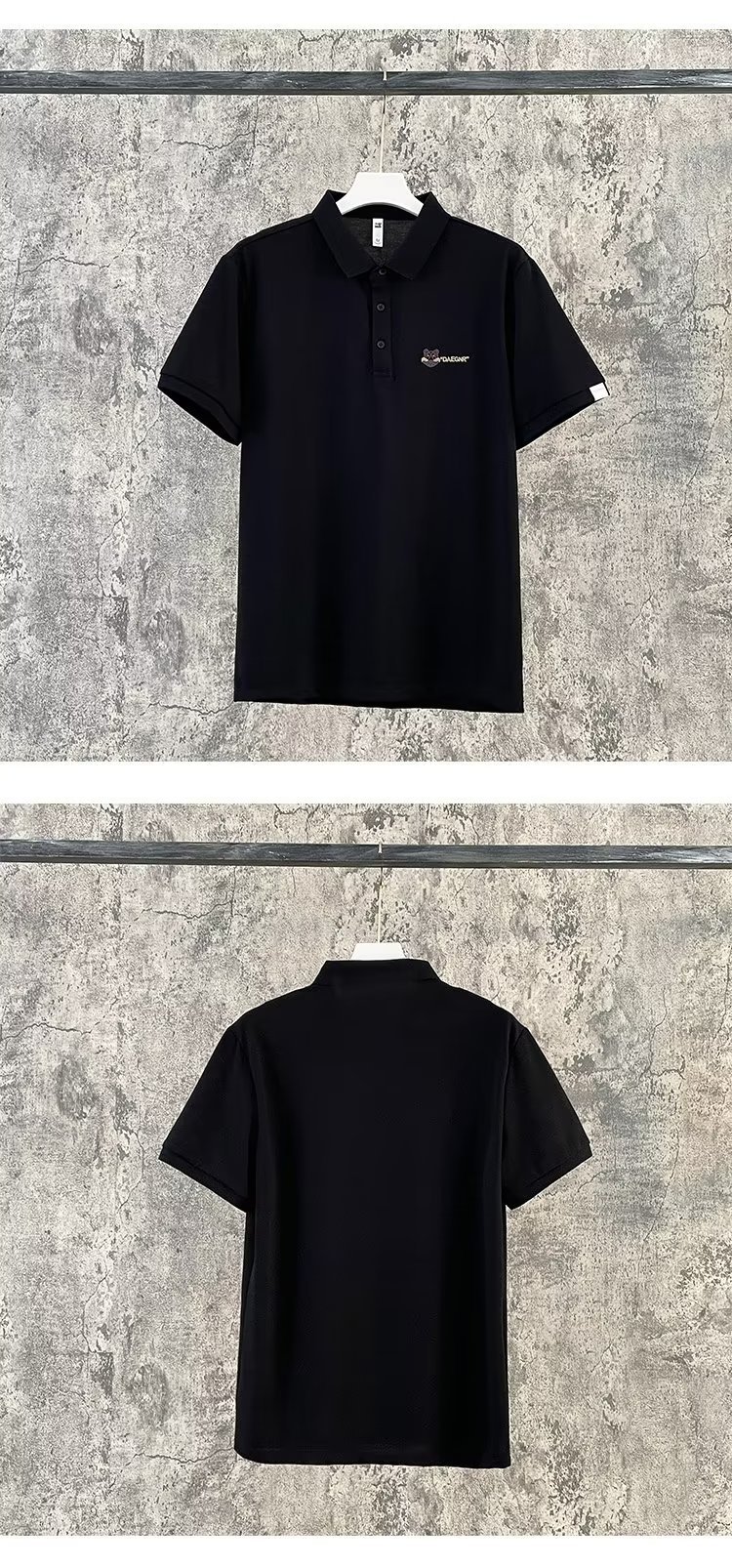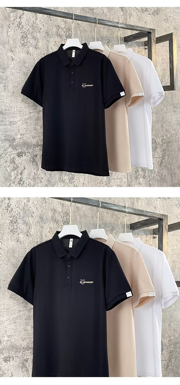 Camisa polo de solapa de manga corta para hombre de seda de hielo de verano, casual de negocios para hombre, camiseta de todo fósforo de seda de hielo, tendencia de bordado para hombre