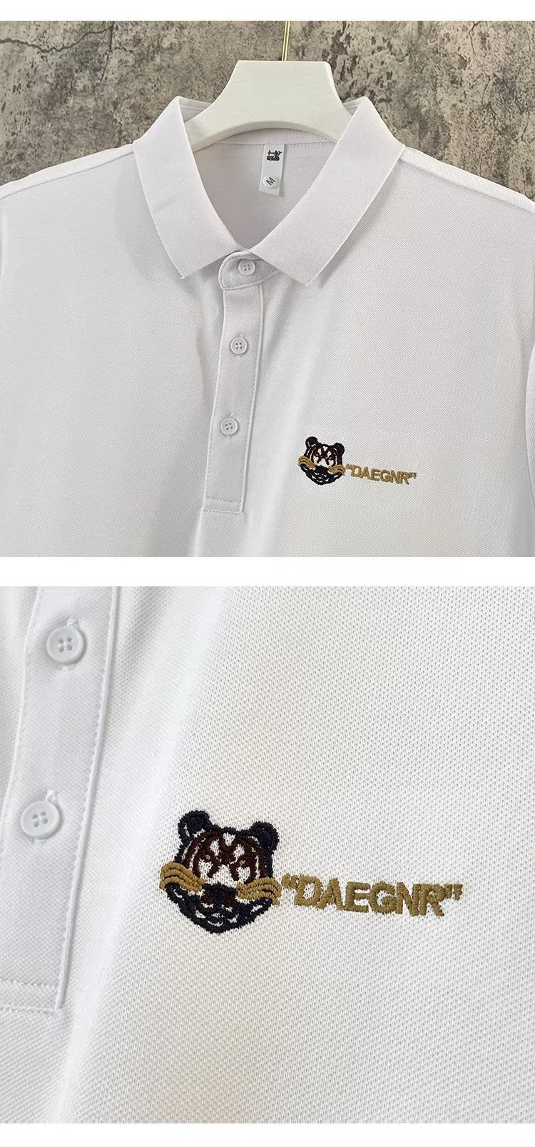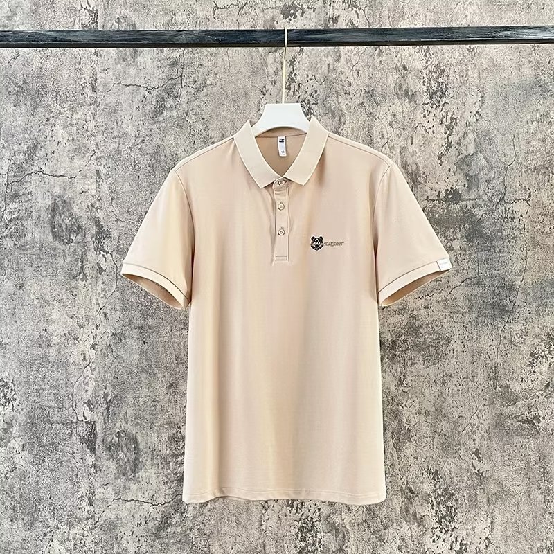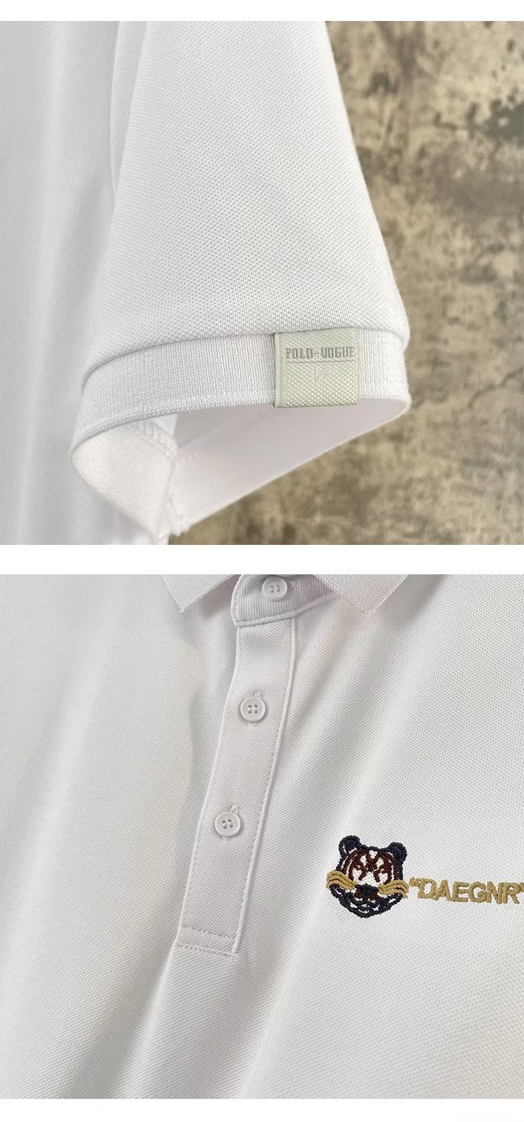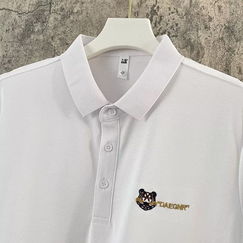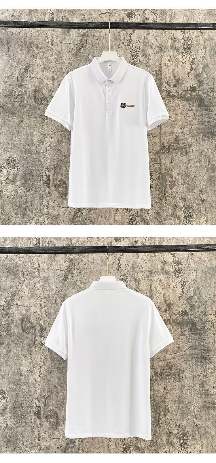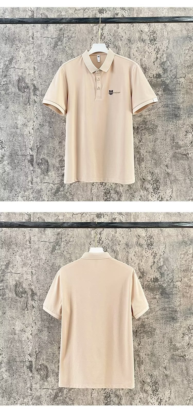 Camisa polo de solapa de manga corta para hombre de seda de hielo de verano, casual de negocios para hombre, camiseta de todo fósforo de seda de hielo, tendencia de bordado para hombre