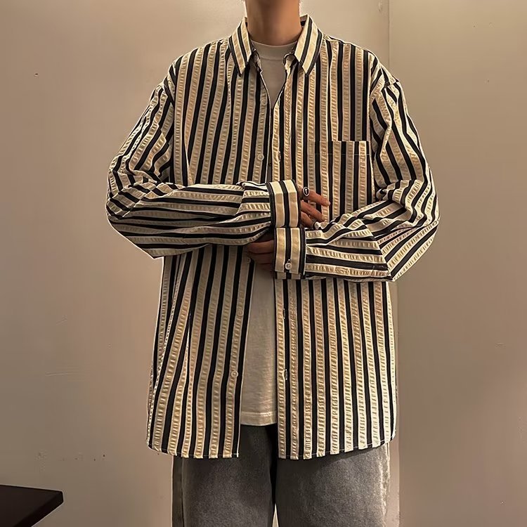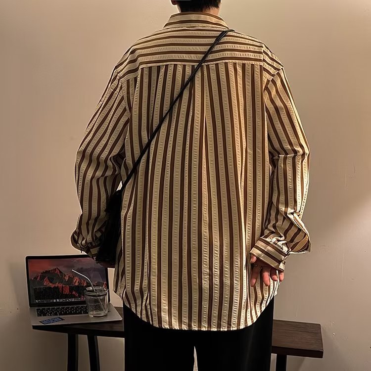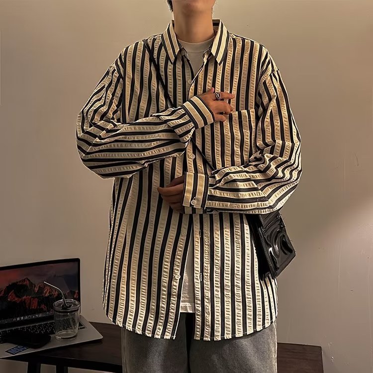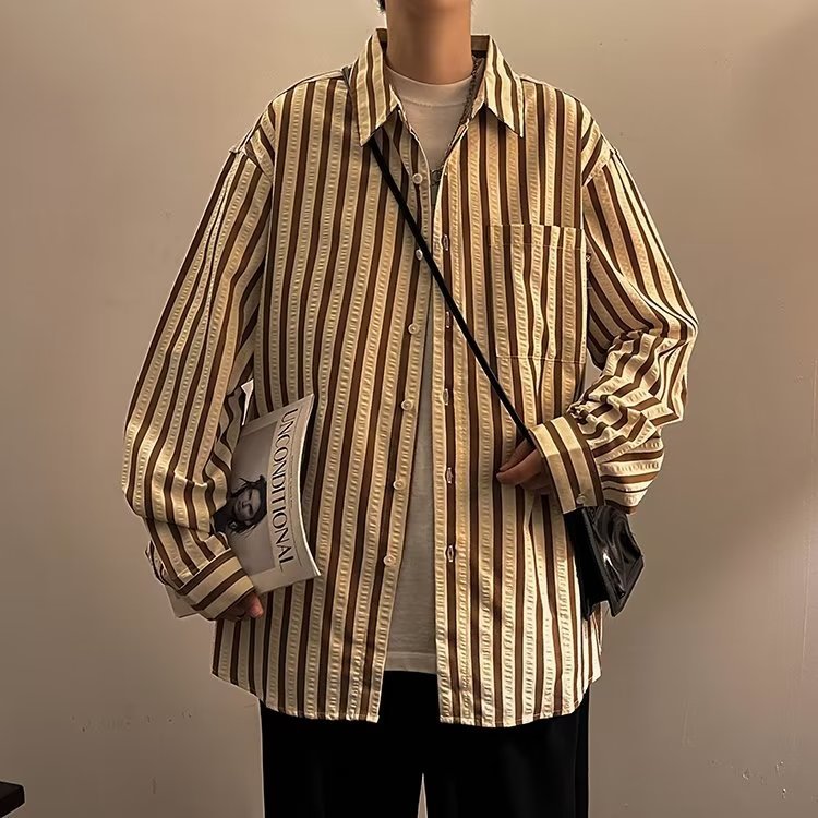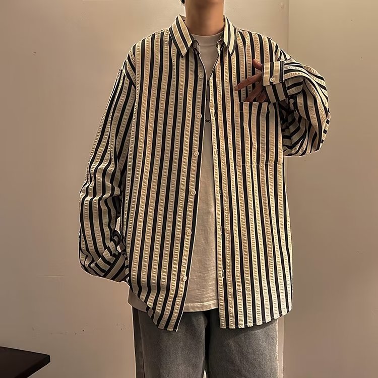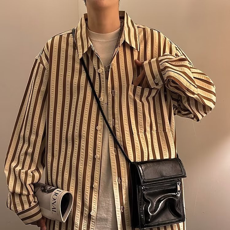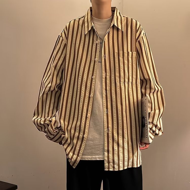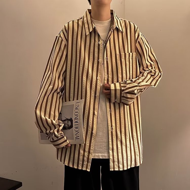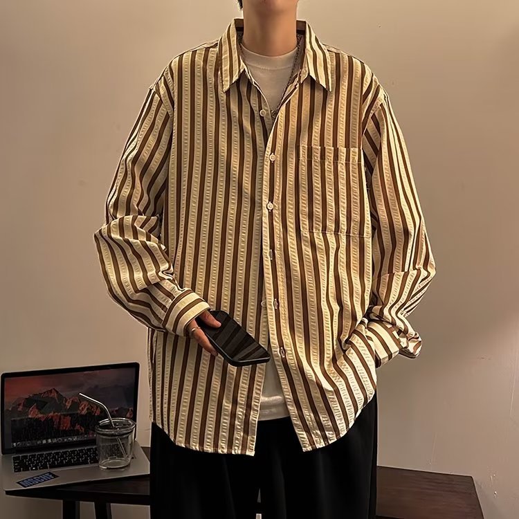 Moda estándar masculino literario temperamento diario moda de primavera moda juvenil tendencia de camisa de manga larga de moda perezosa