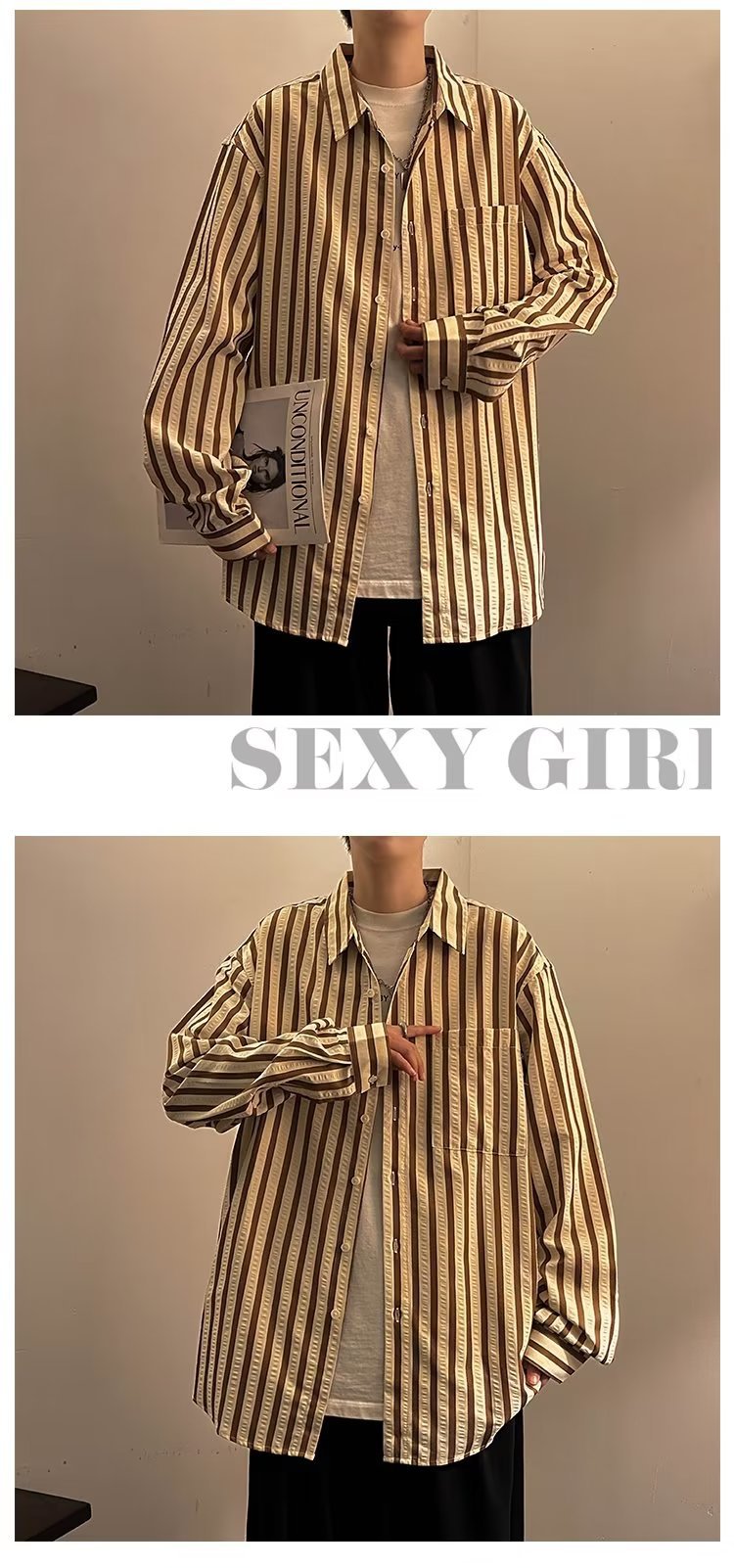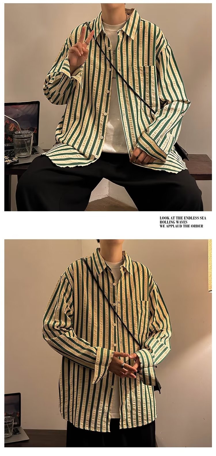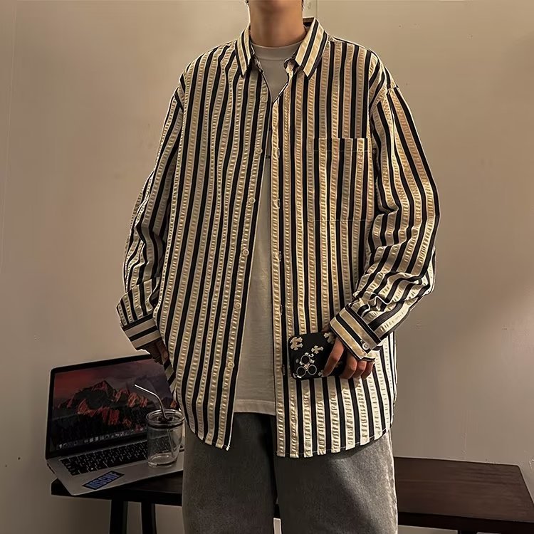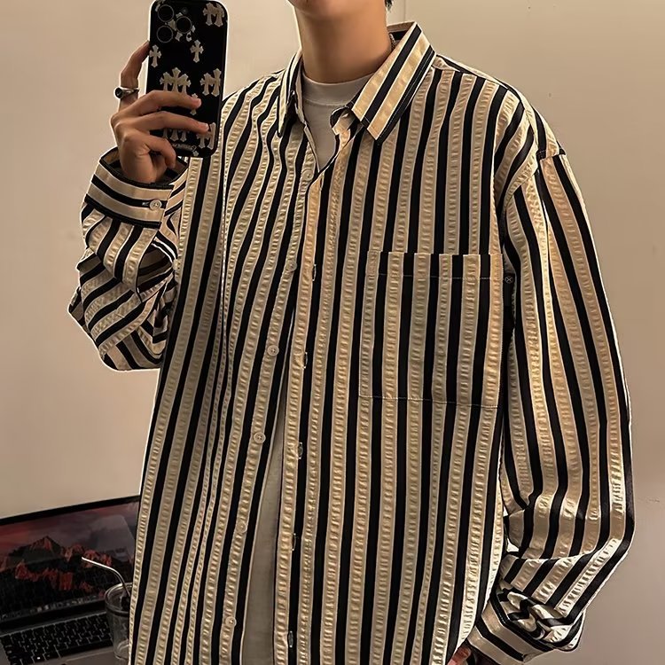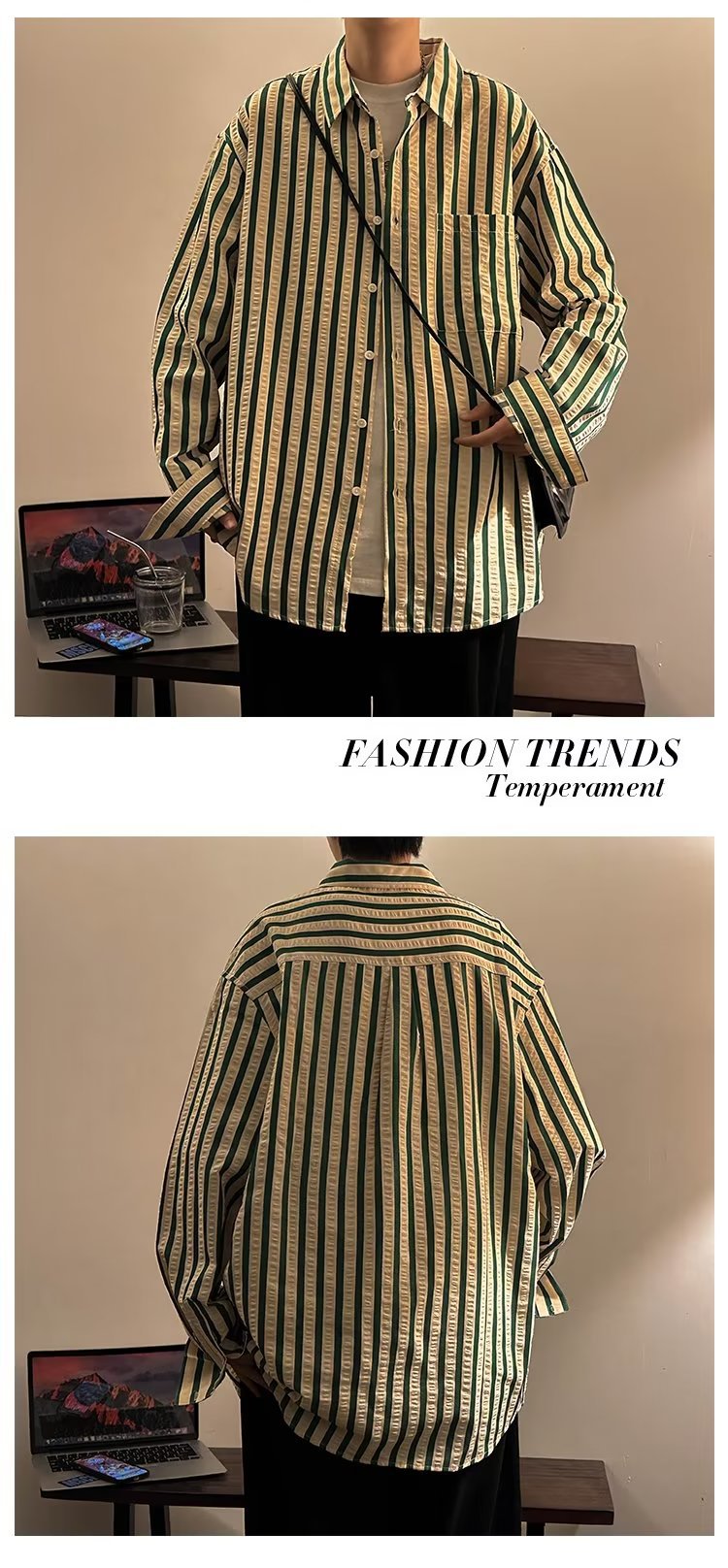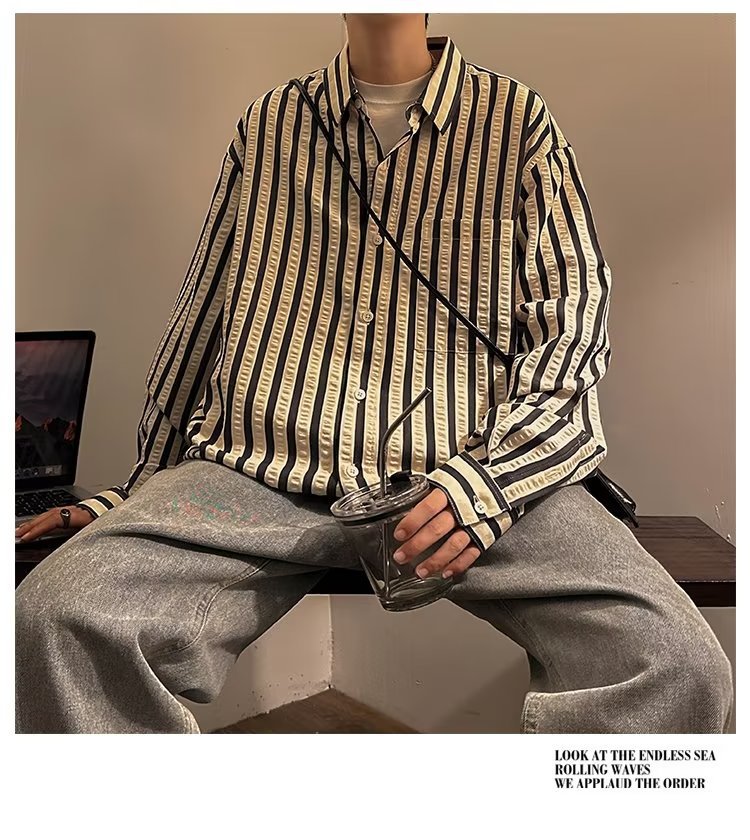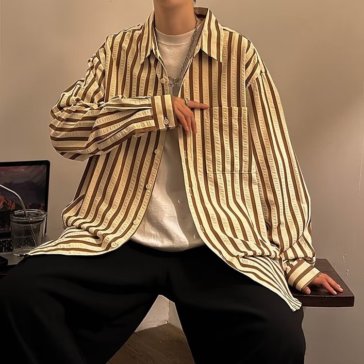 Moda estándar masculino literario temperamento diario moda de primavera moda juvenil tendencia de camisa de manga larga de moda perezosa