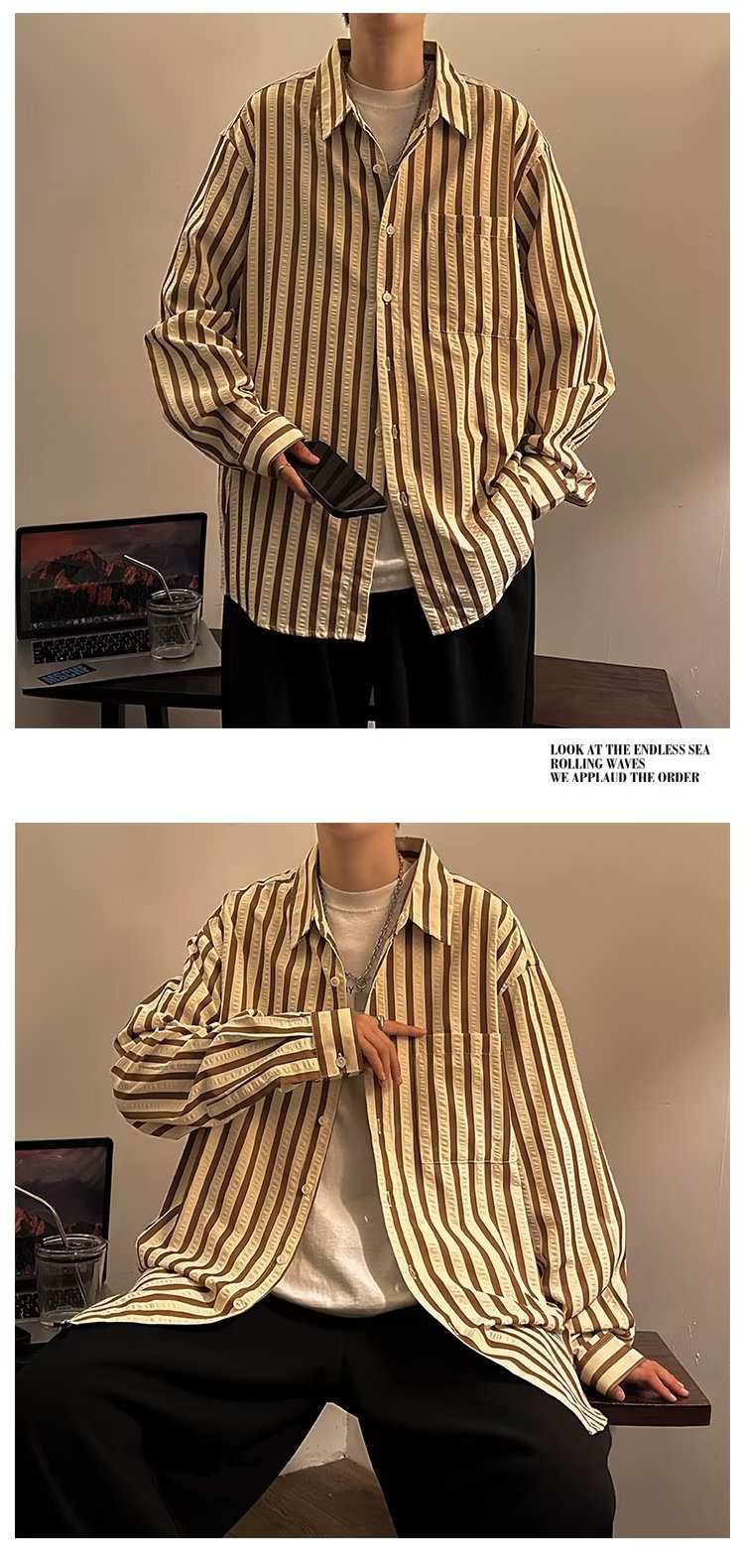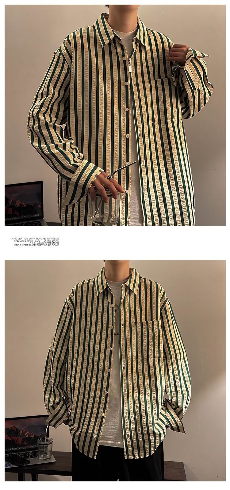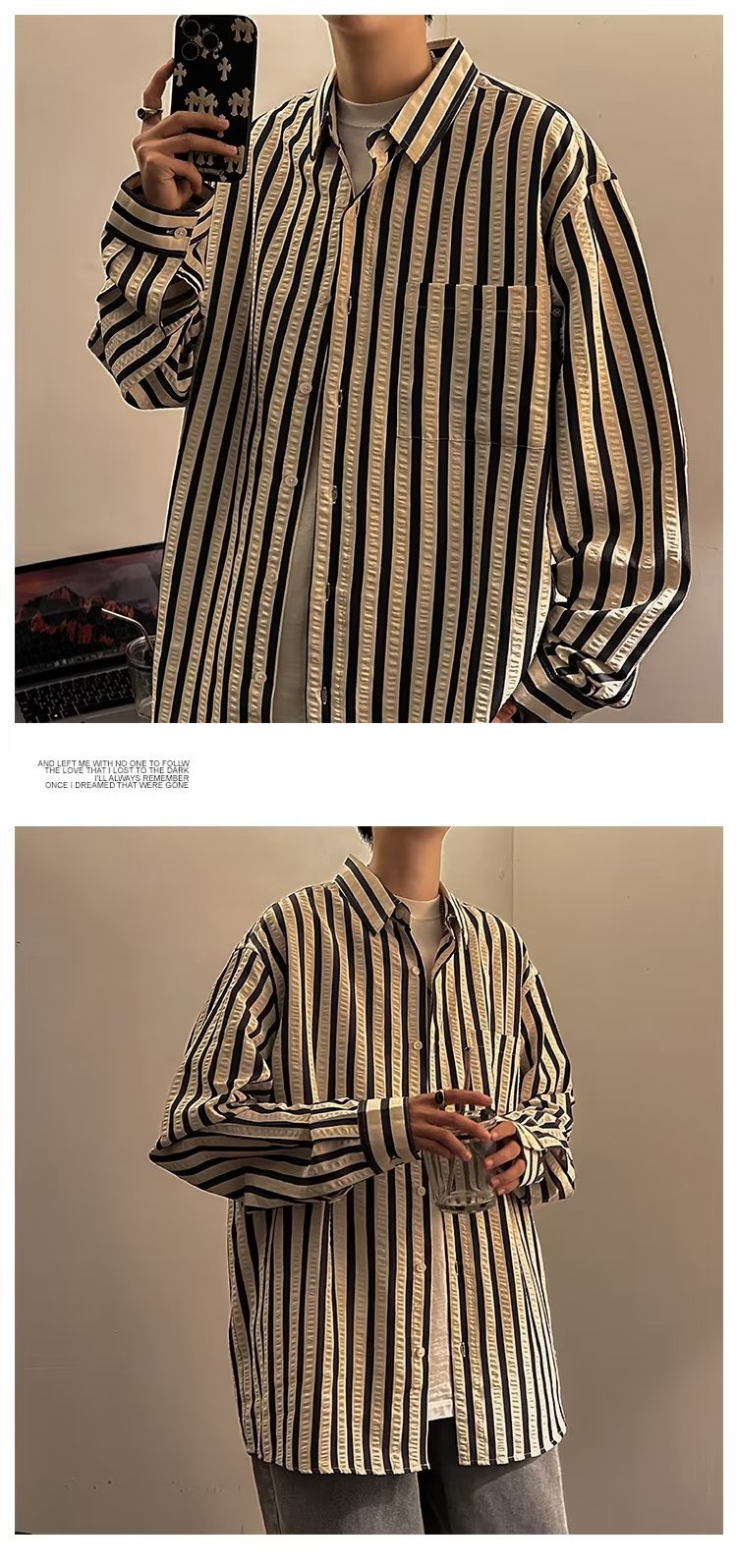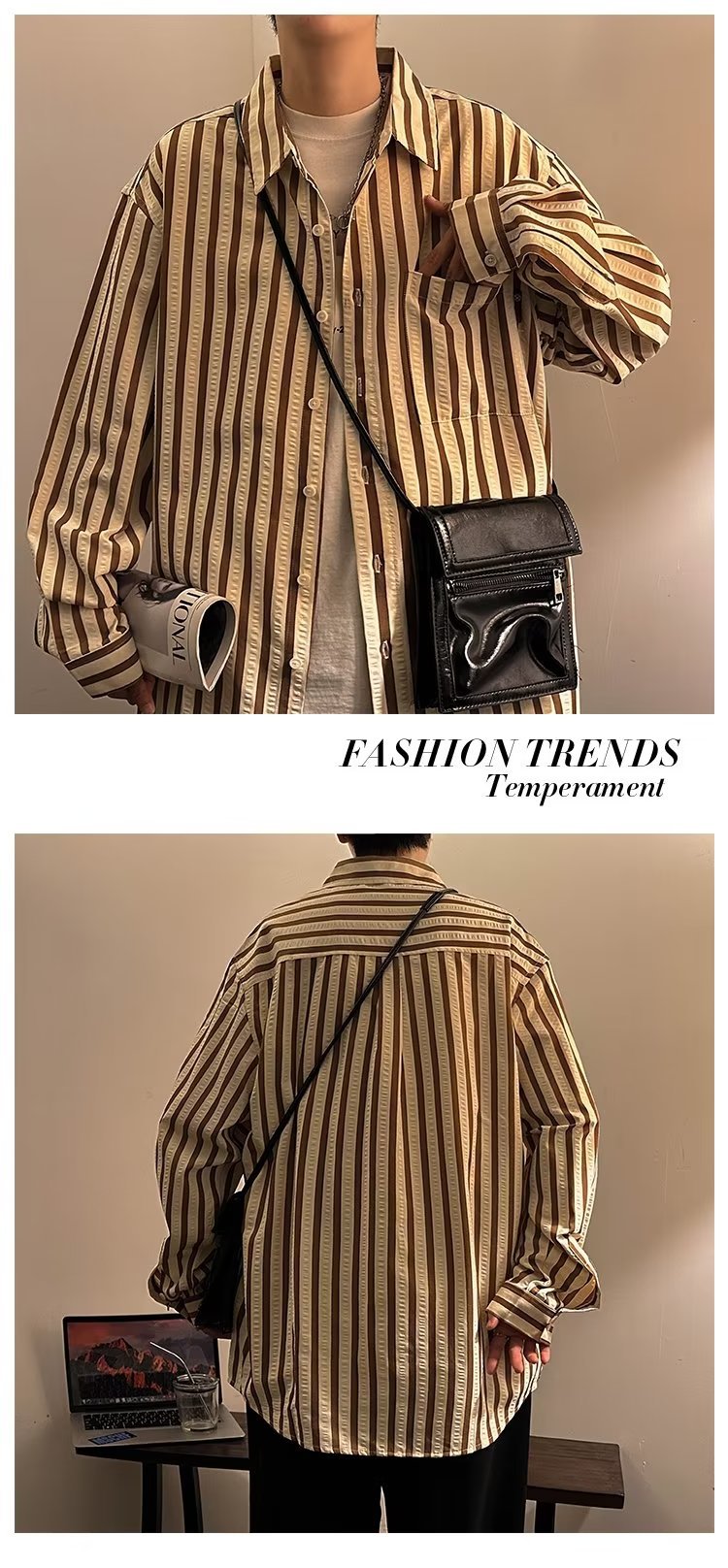 Moda estándar masculino literario temperamento diario moda de primavera moda juvenil tendencia de camisa de manga larga de moda perezosa