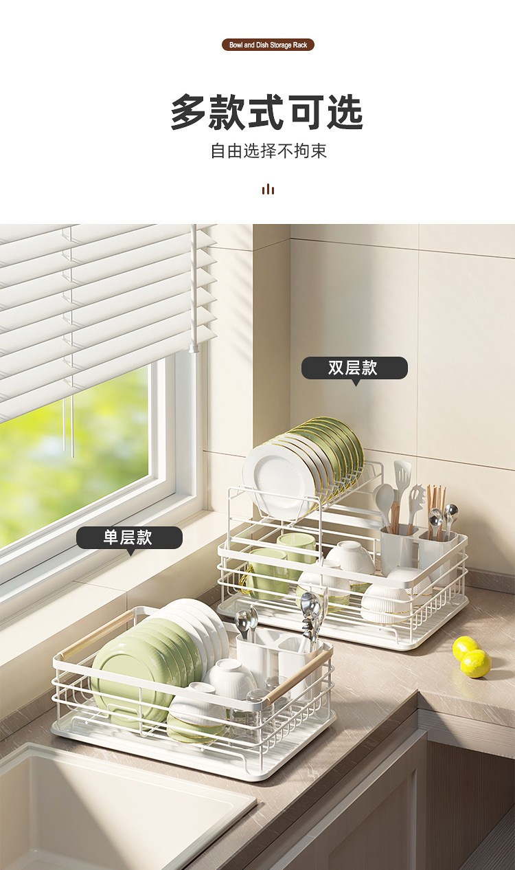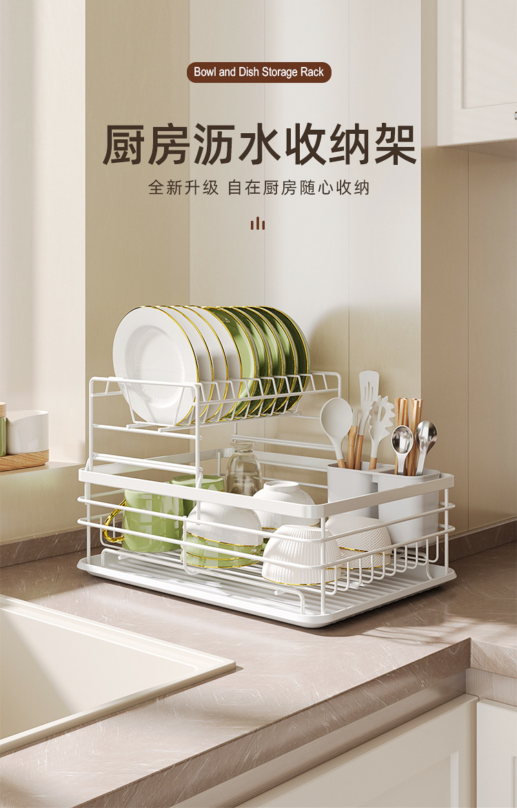 Estantes de cocina, almacenamiento de vajilla, estante de drenaje, estante de drenaje, encimera, estante de doble capa, estante de almacenamiento de metal