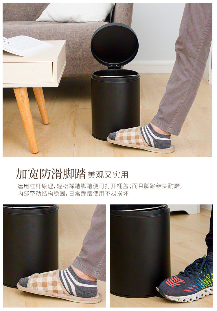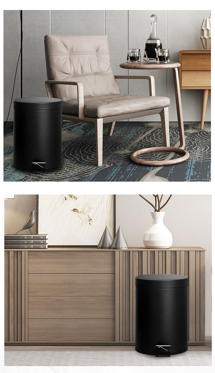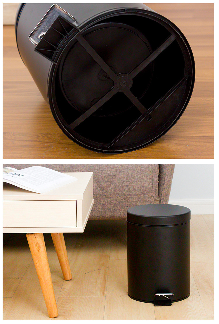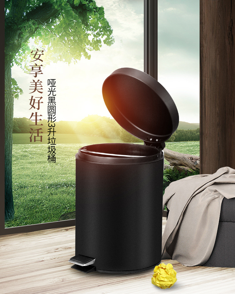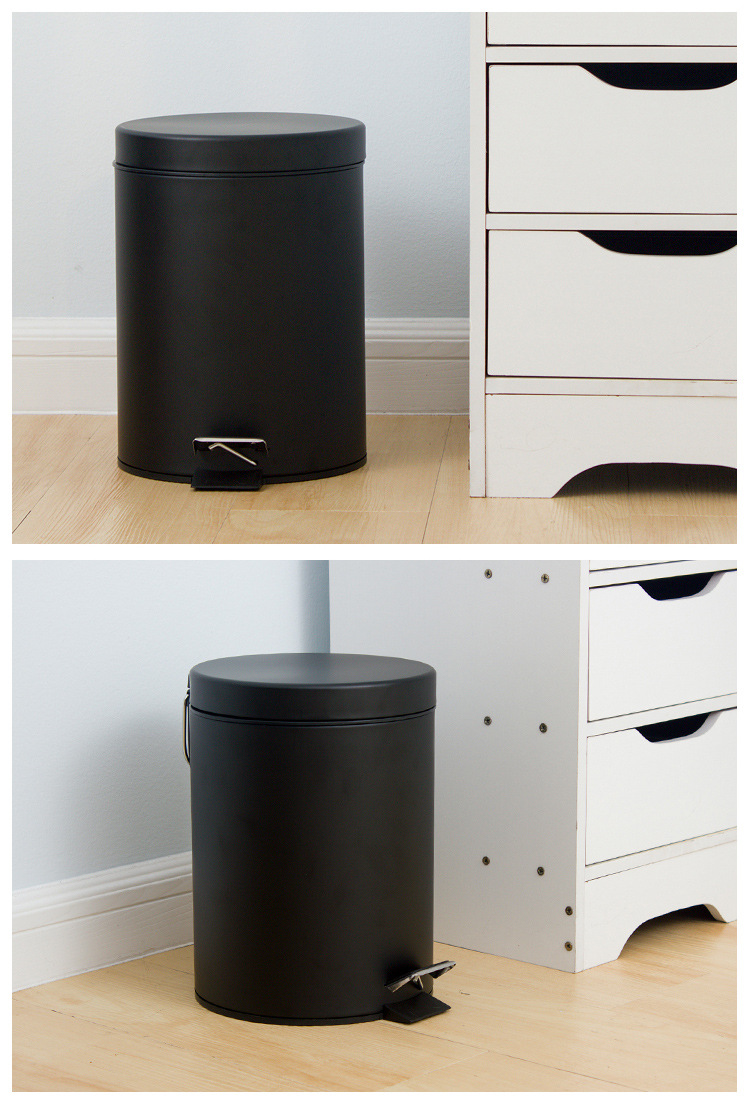 Bote de basura abatible redondo negro mate transfronterizo 3L, cubo de limpieza de pedal silencioso para el hogar con tapa