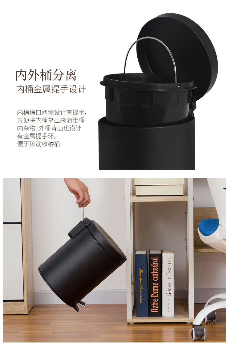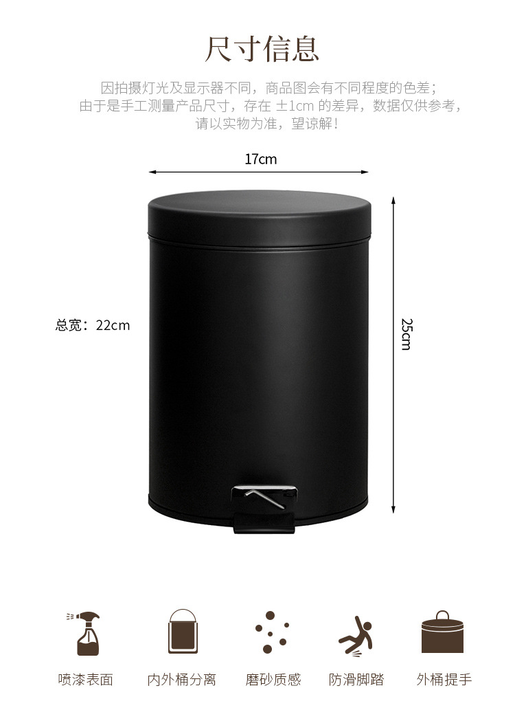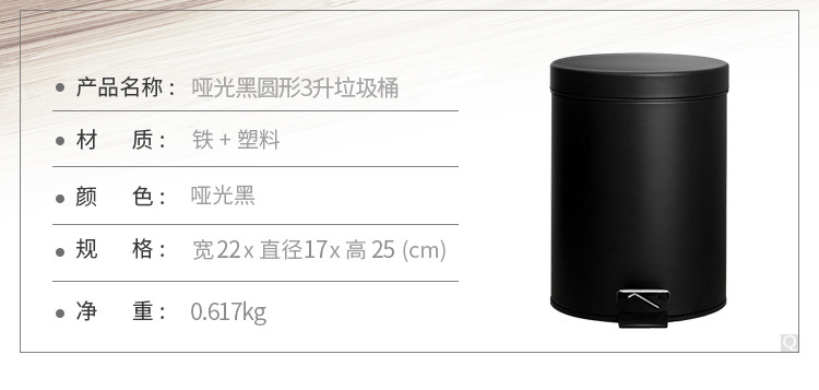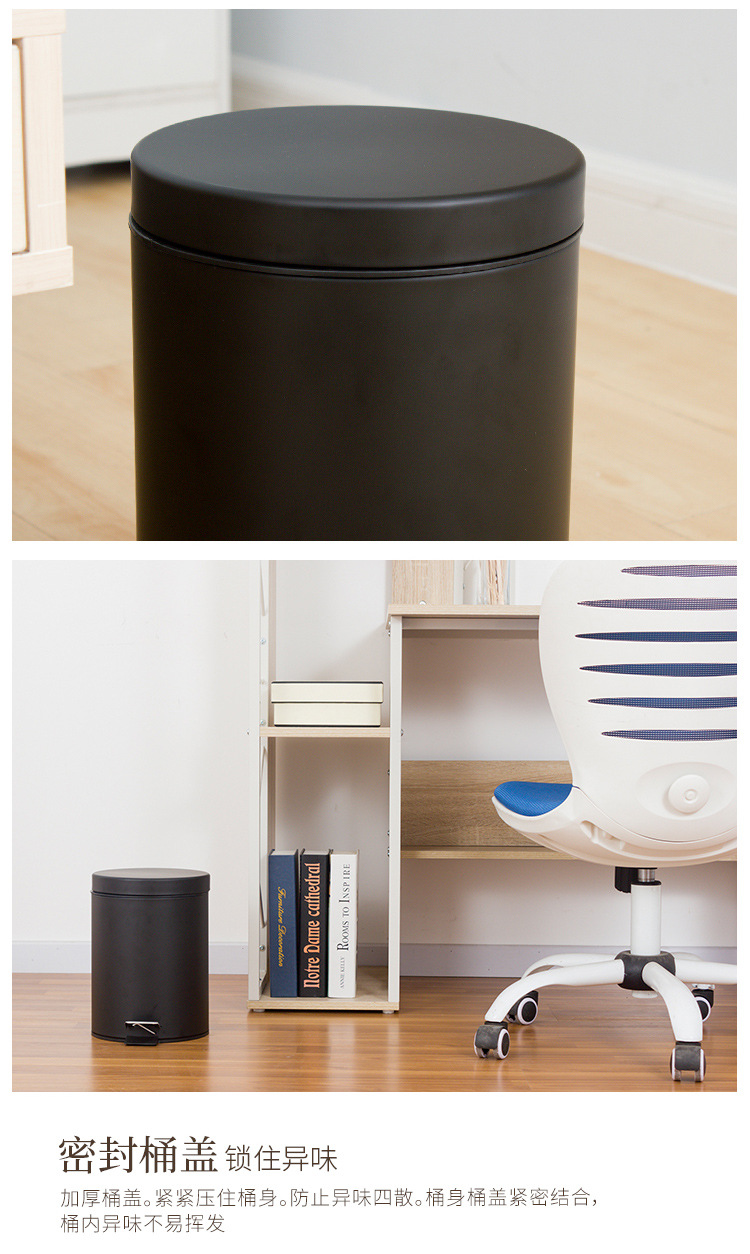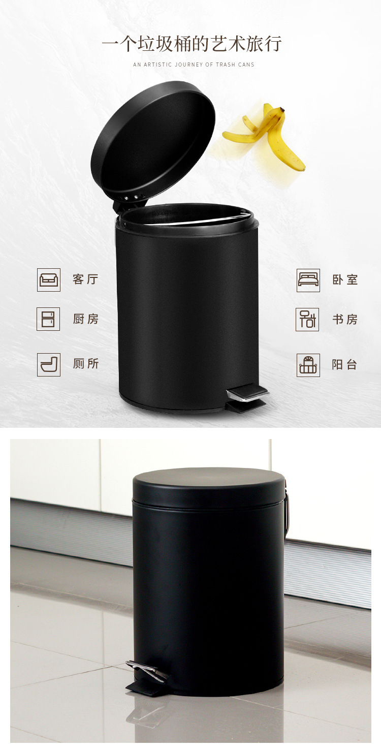 Bote de basura abatible redondo negro mate transfronterizo 3L, cubo de limpieza de pedal silencioso para el hogar con tapa