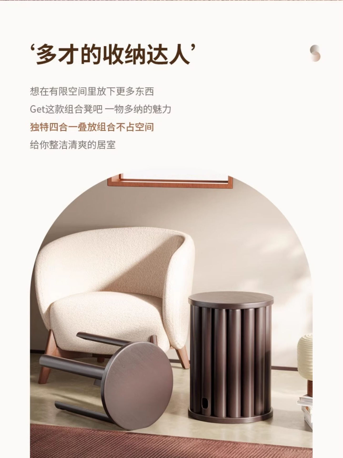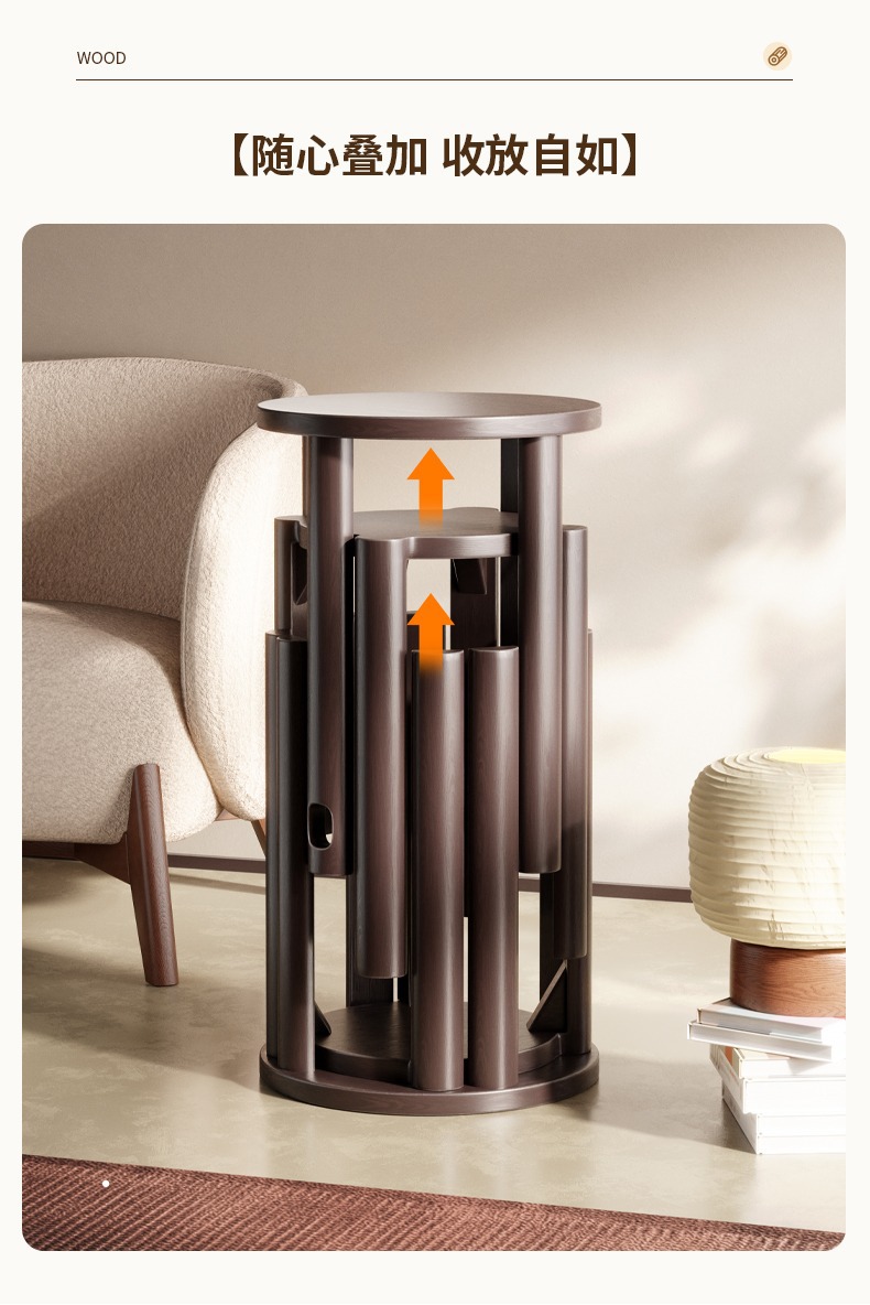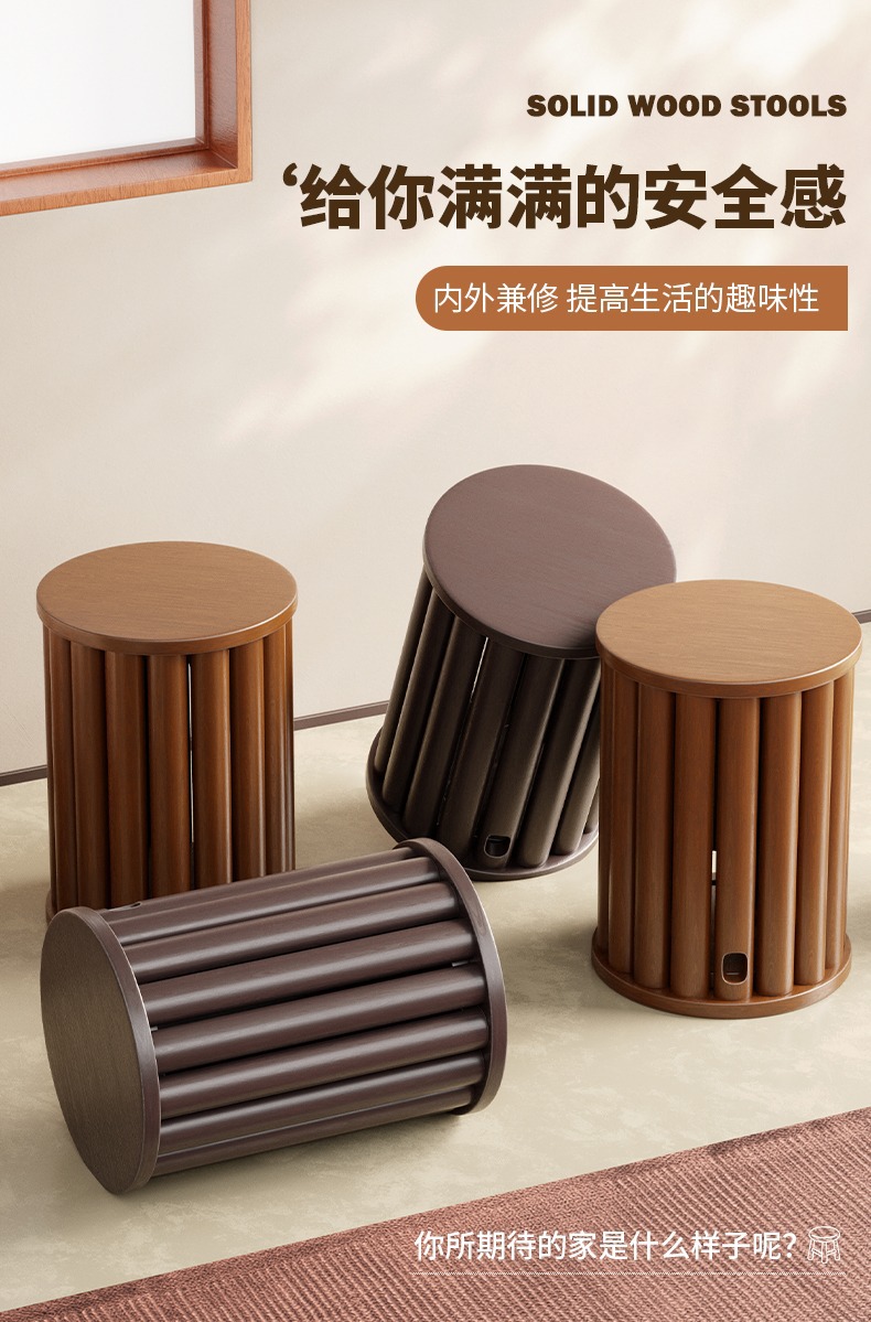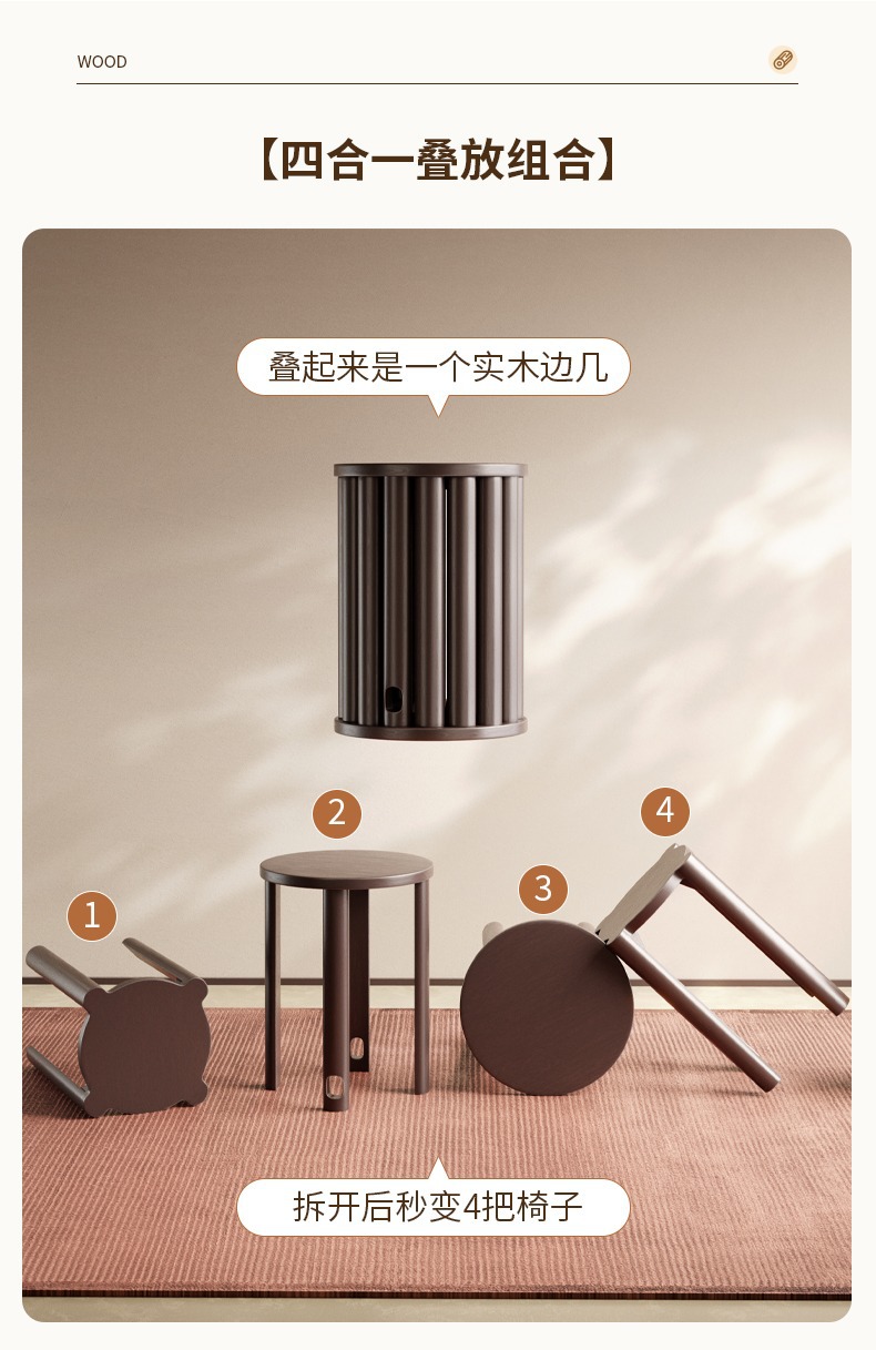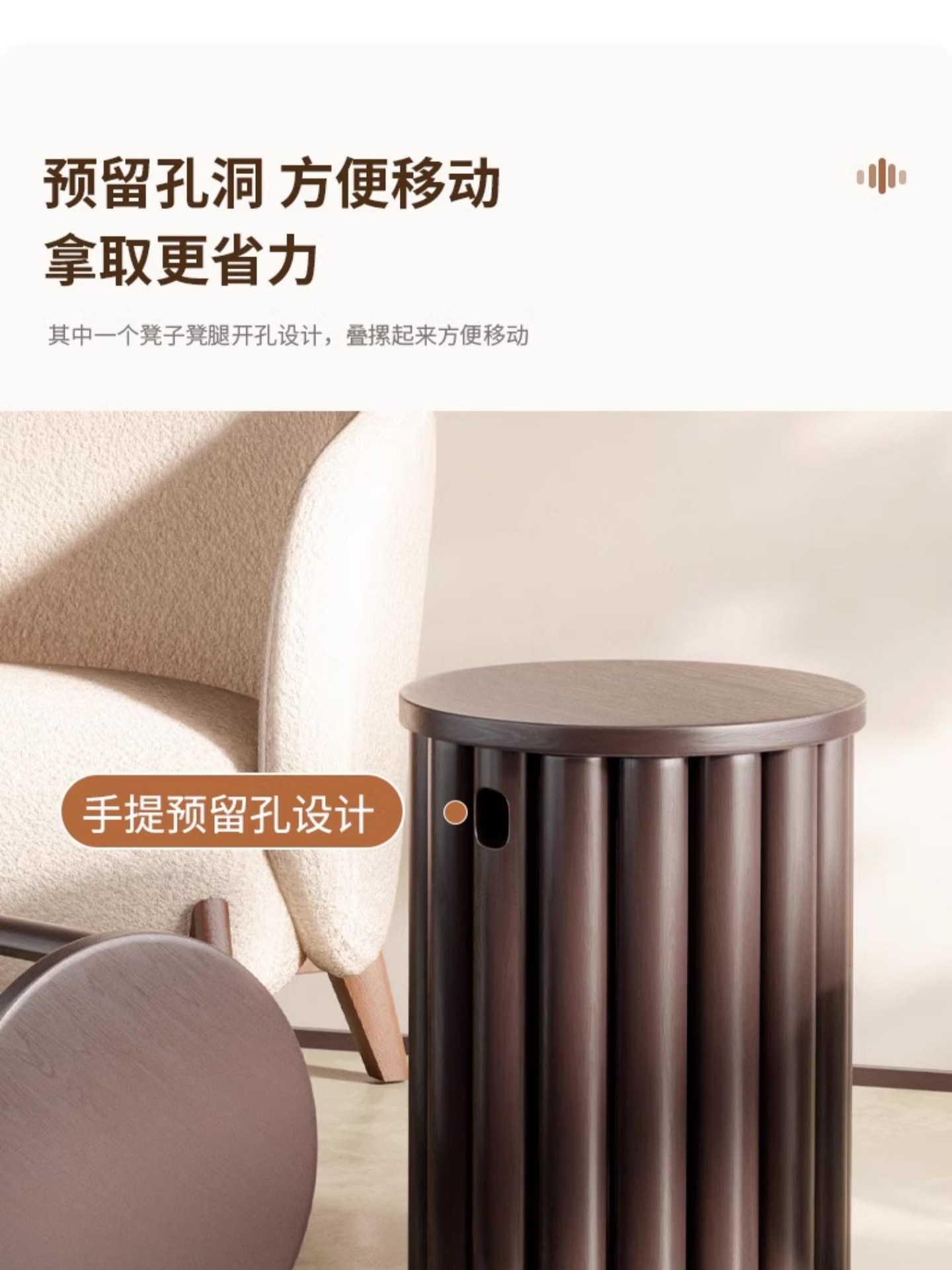 Taburete para el hogar El taburete bajo multifuncional de madera maciza Jenga puede almacenar taburetes apilados que ahorran espacio Nuevo taburete redondo de mesa lateral de estilo chino