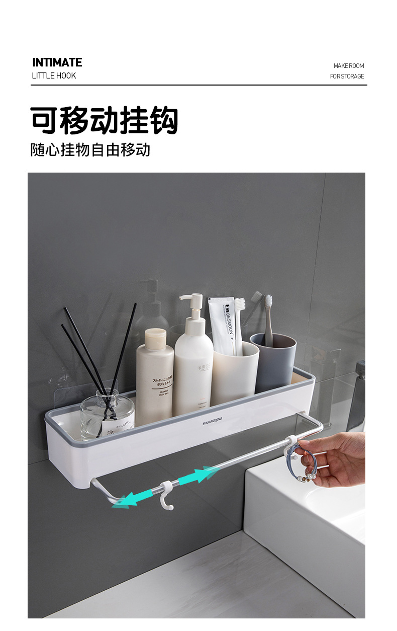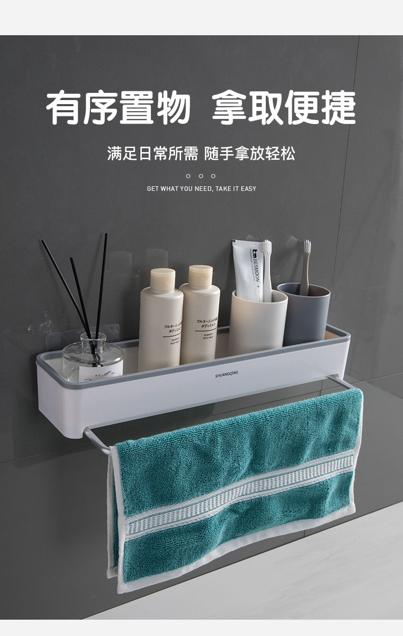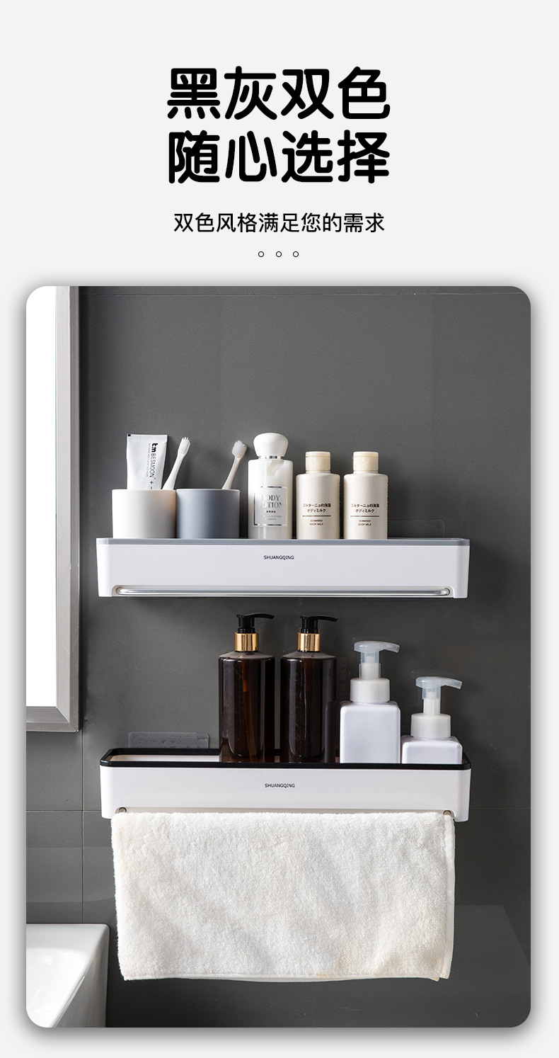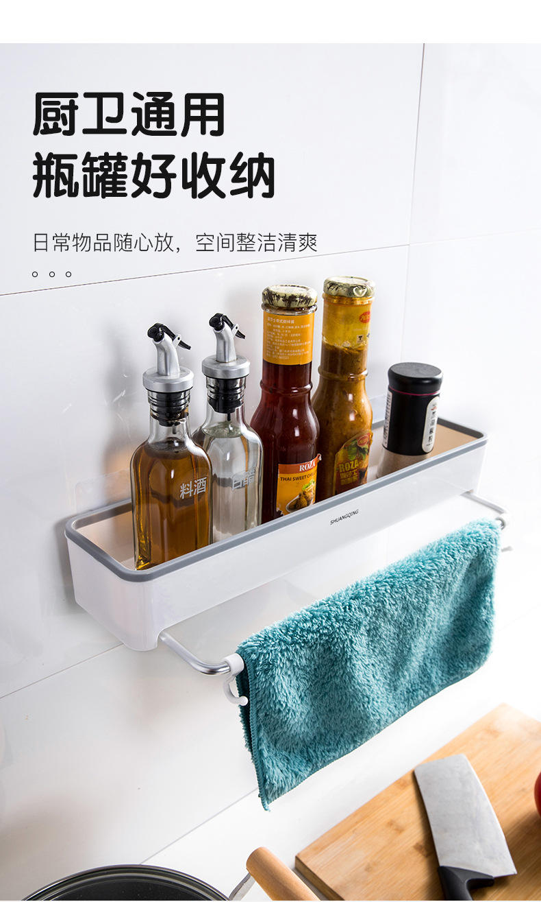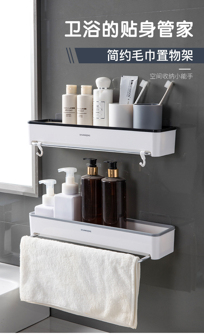 Estante de almacenamiento para baño, toallero de plástico montado en la pared sin perforaciones, estante de almacenamiento para encimera de baño y cocina