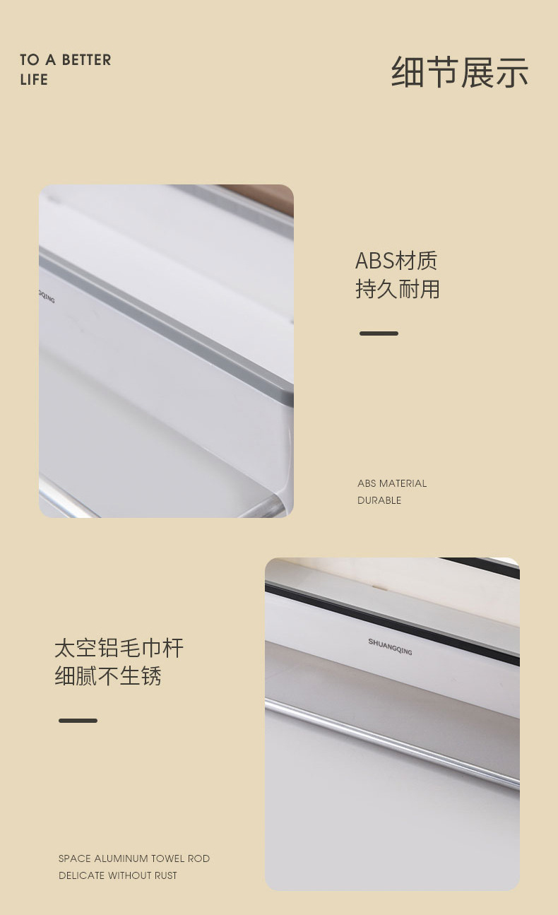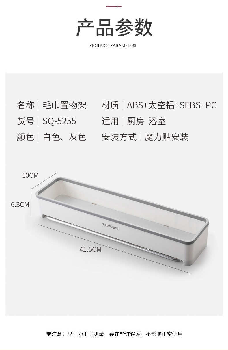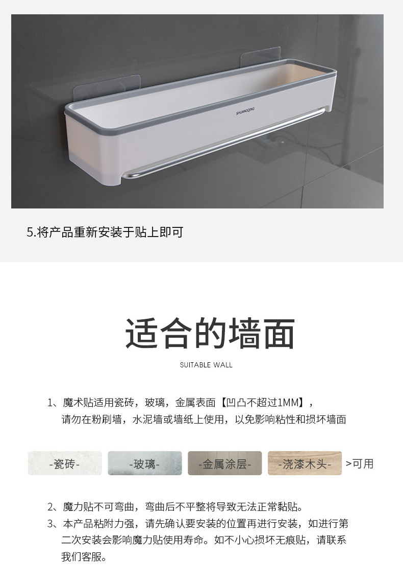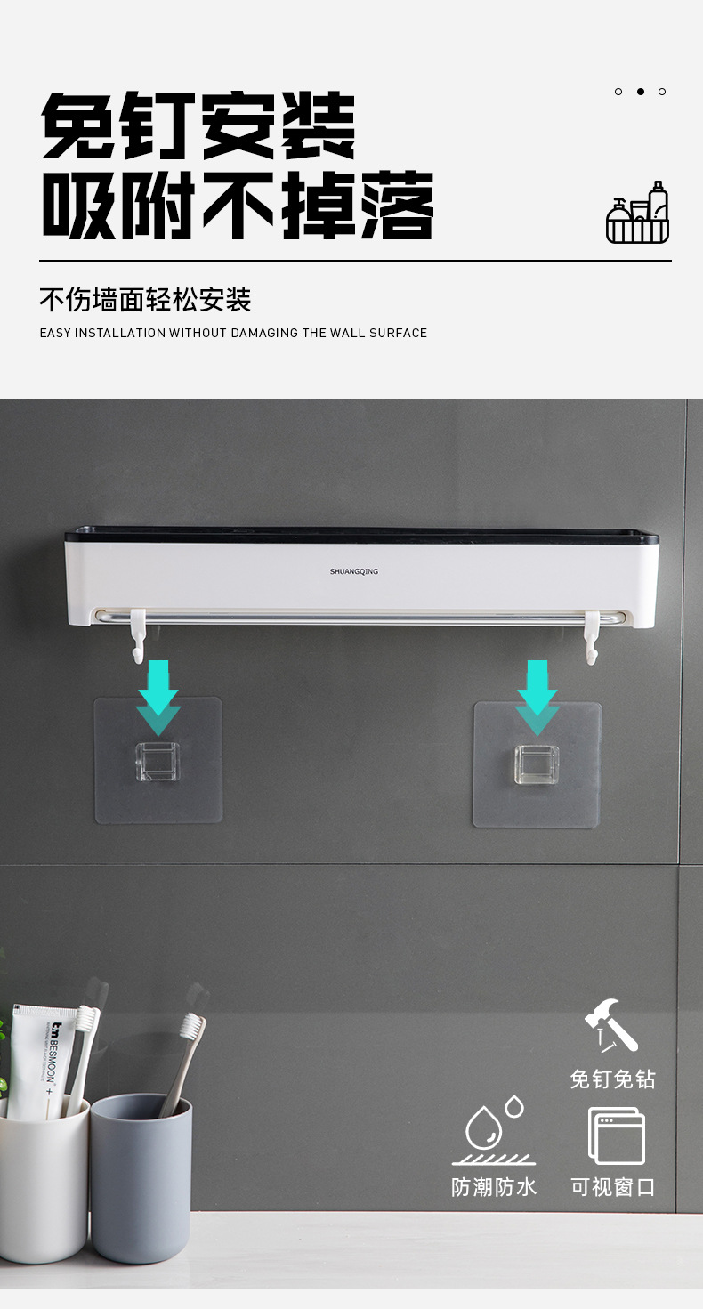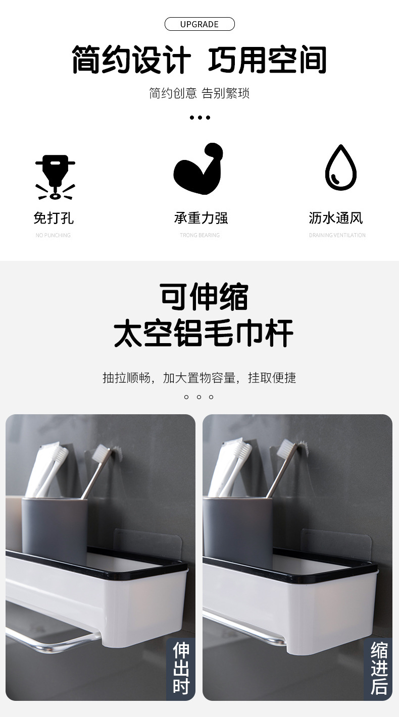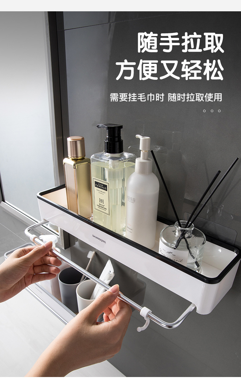 Estante de almacenamiento para baño, toallero de plástico montado en la pared sin perforaciones, estante de almacenamiento para encimera de baño y cocina