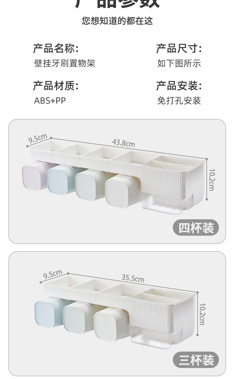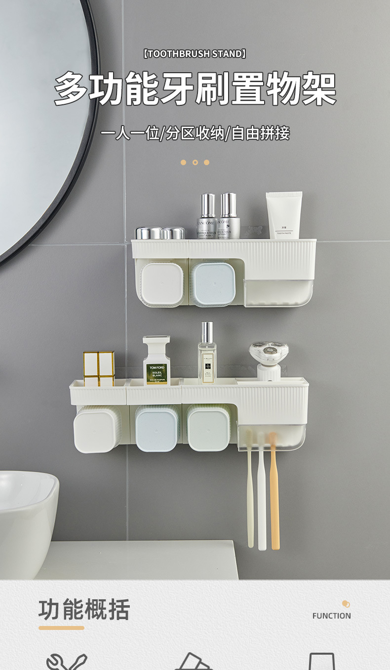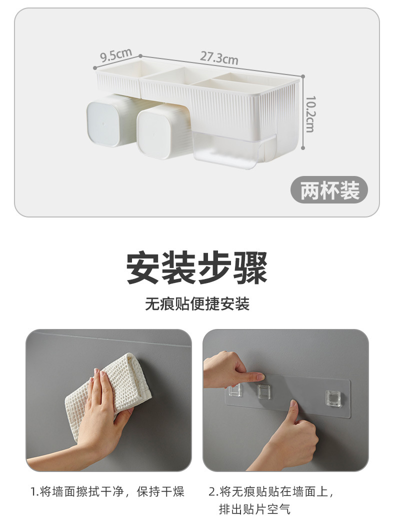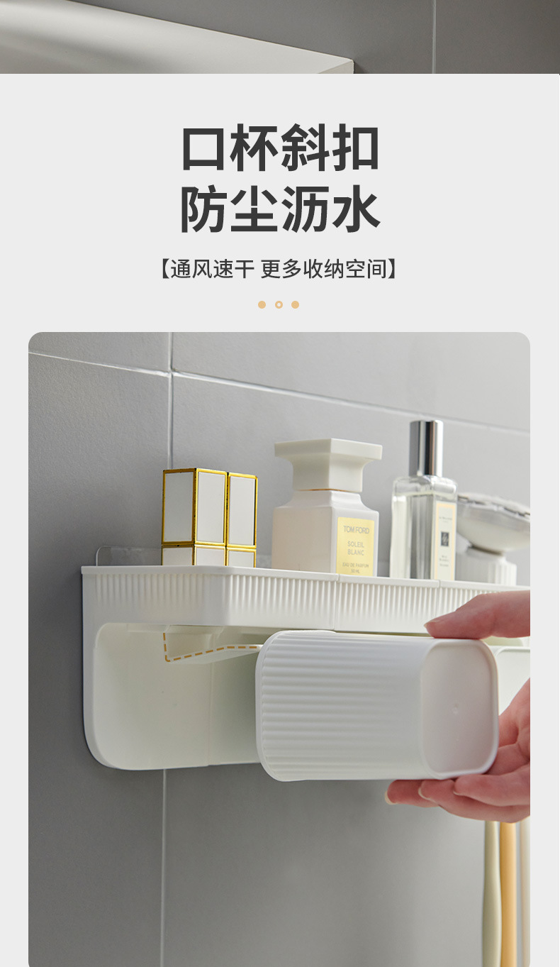 Estante de cepillo de dientes Estante de almacenamiento de taza de cepillo de dientes sin perforación Estante de cilindro de dientes de baño Estante de taza de lavado de pared