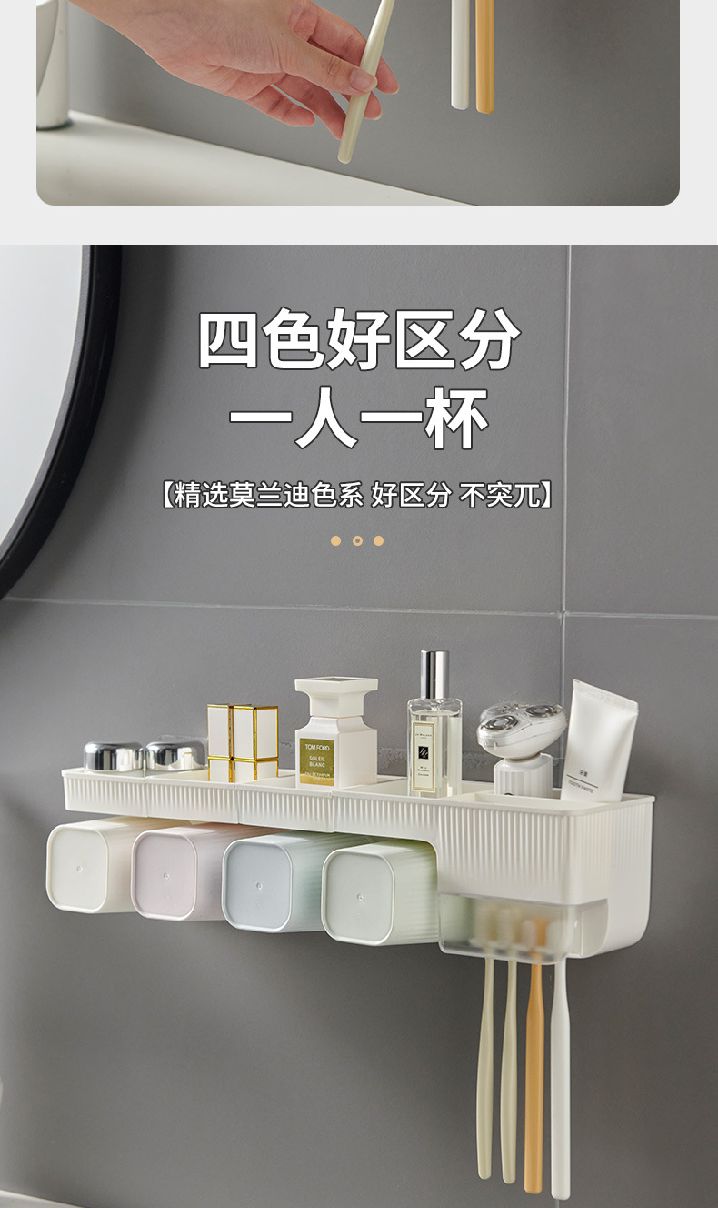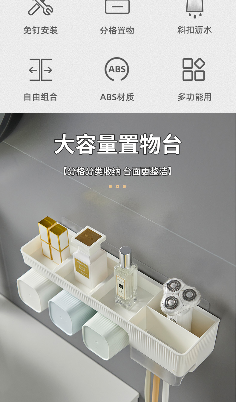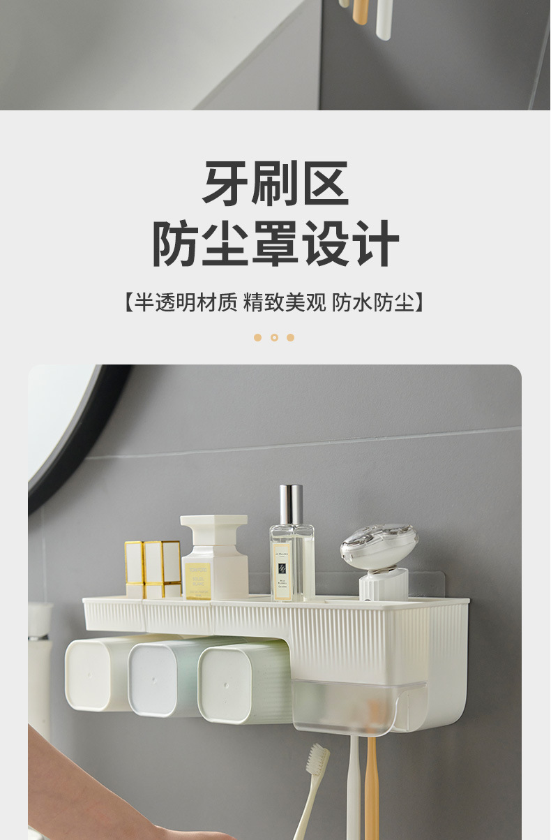 Estante de cepillo de dientes Estante de almacenamiento de taza de cepillo de dientes sin perforación Estante de cilindro de dientes de baño Estante de taza de lavado de pared