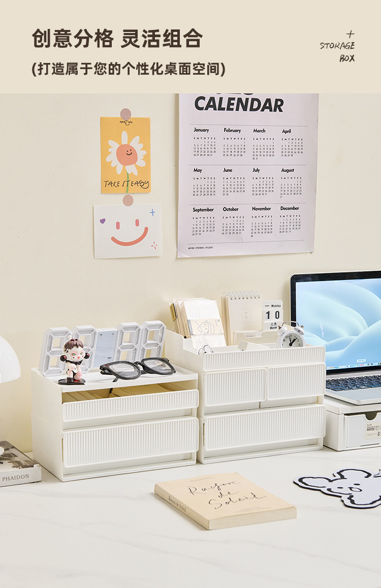 Caja de almacenamiento de papelería El escritorio de la oficina se puede superponer con una caja de almacenamiento de cajón de almacenamiento multicapa para estudiantes de gran capacidad