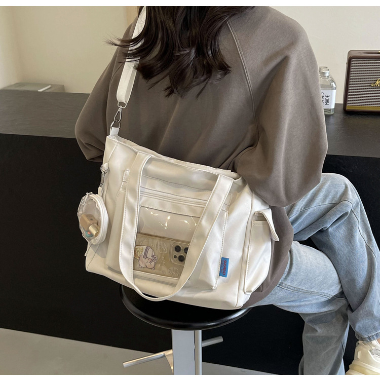 Bolso transparente casual de gran capacidad para mujer 2024 verano bolso de lona de alta gama mensajero de un solo hombro bolso portátil