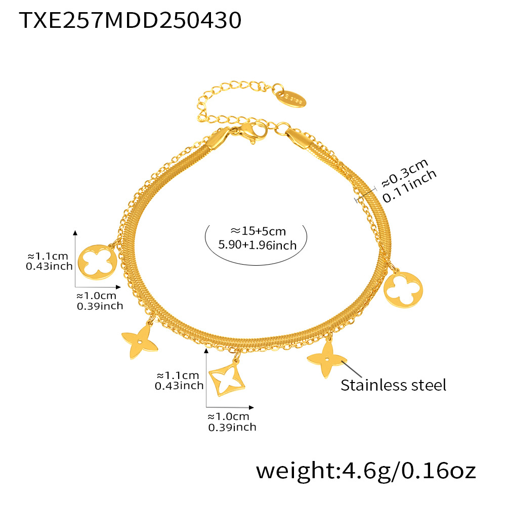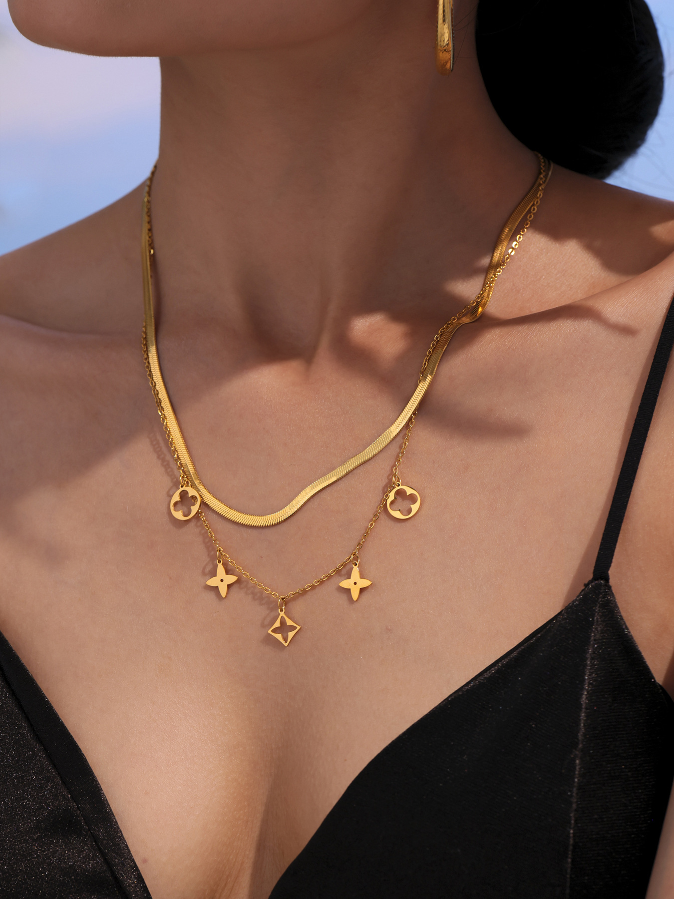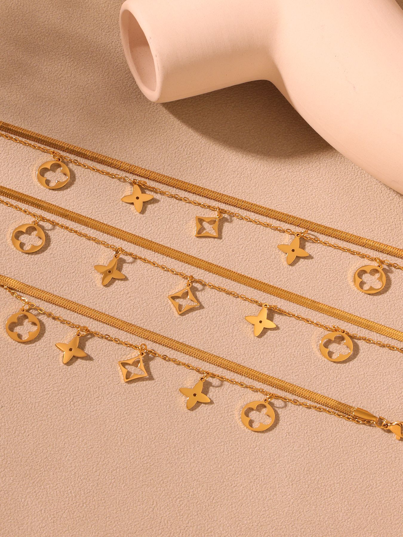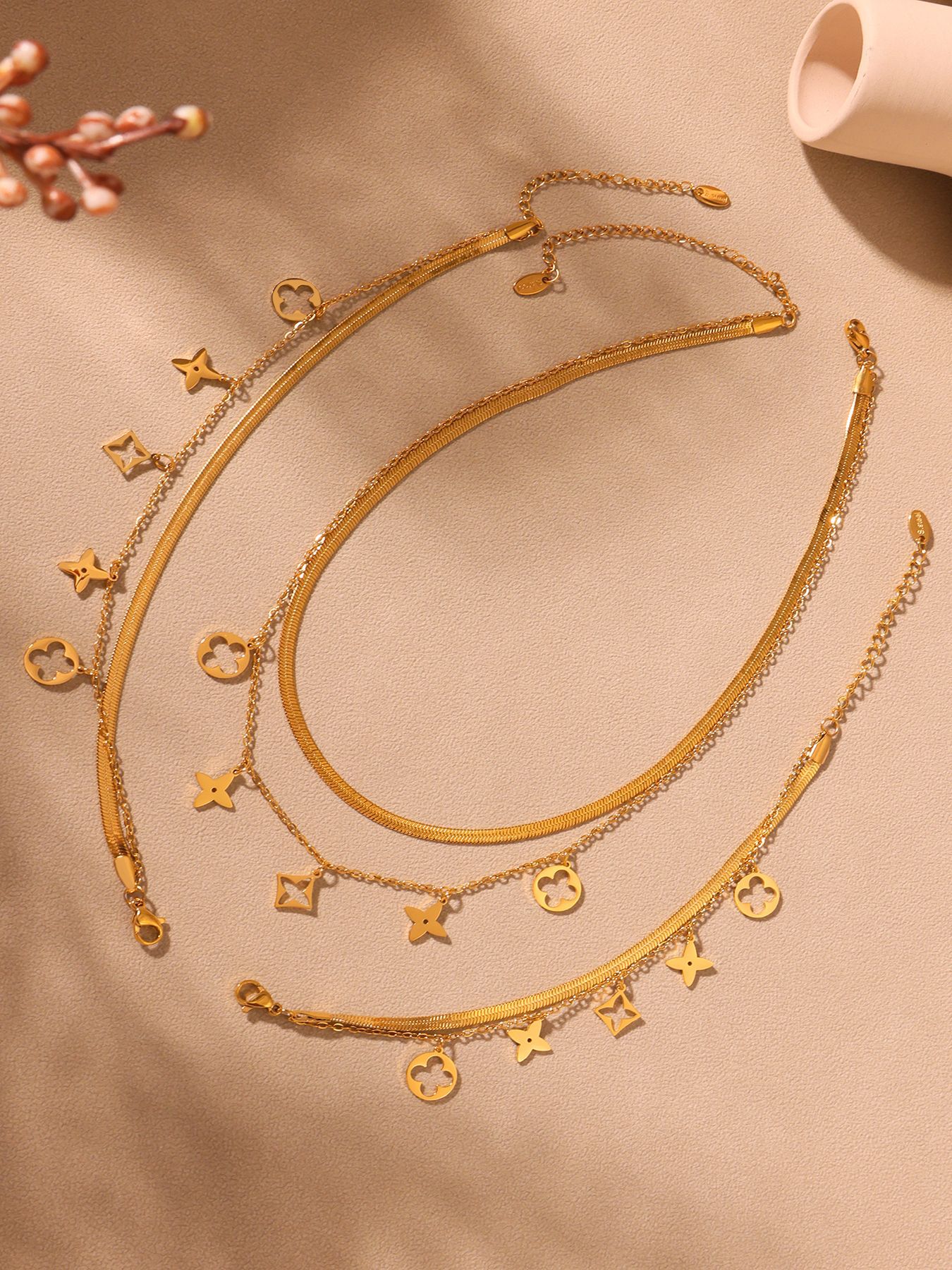 Sugar nuevo colgante de trébol de cuatro hojas de flores huecas de doble cara, doble capa, cadena de clavícula, pulsera, tobillera, juego de joyas