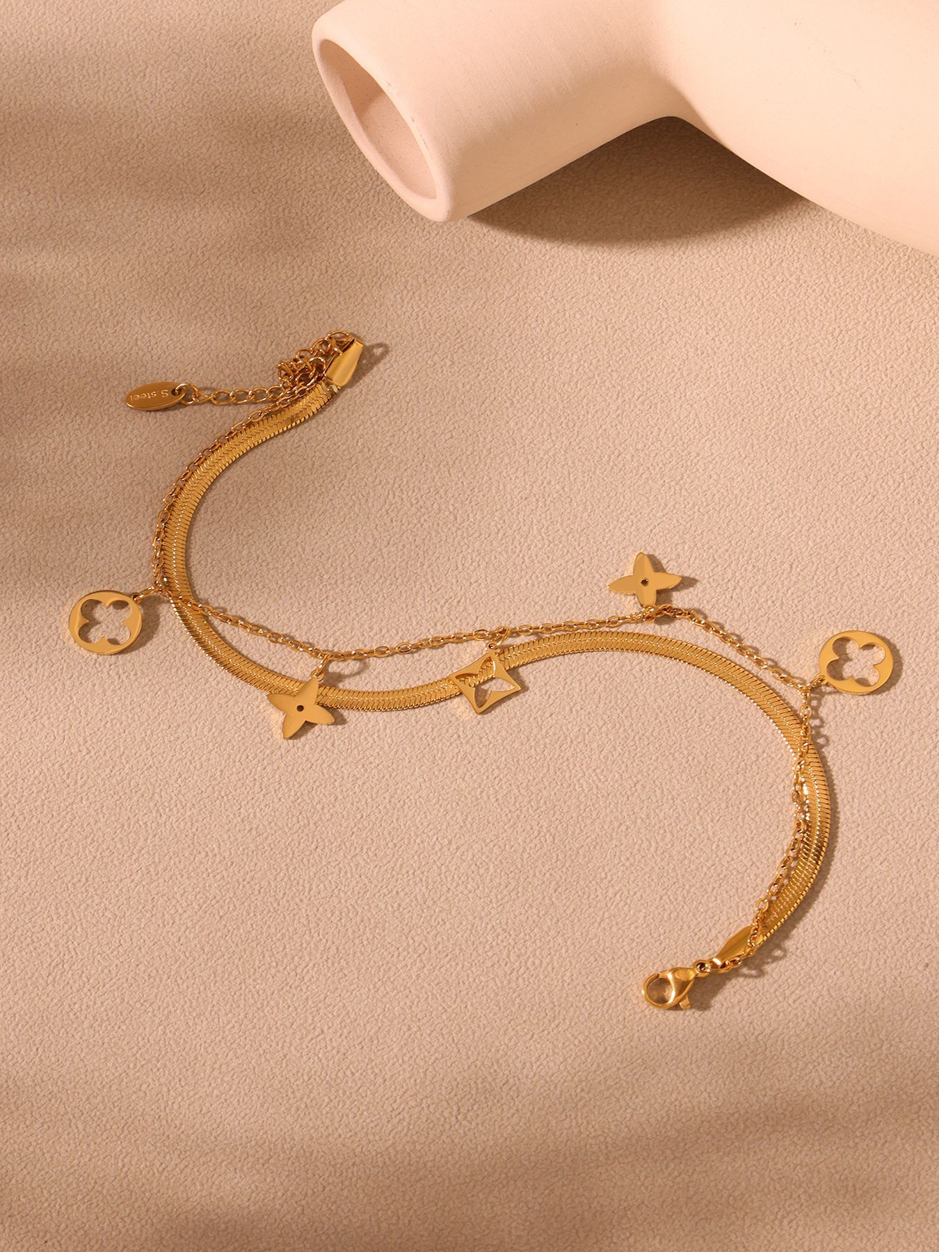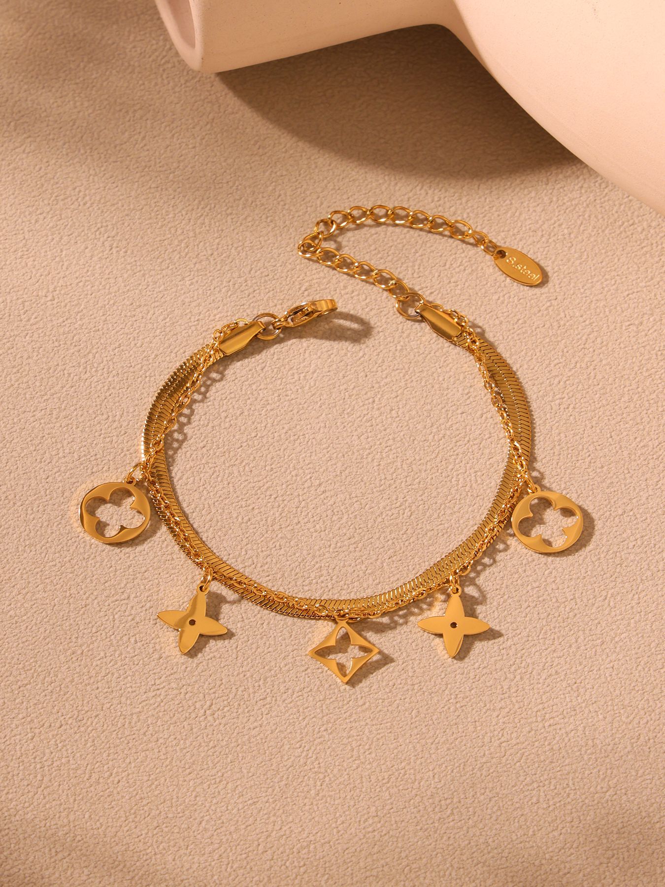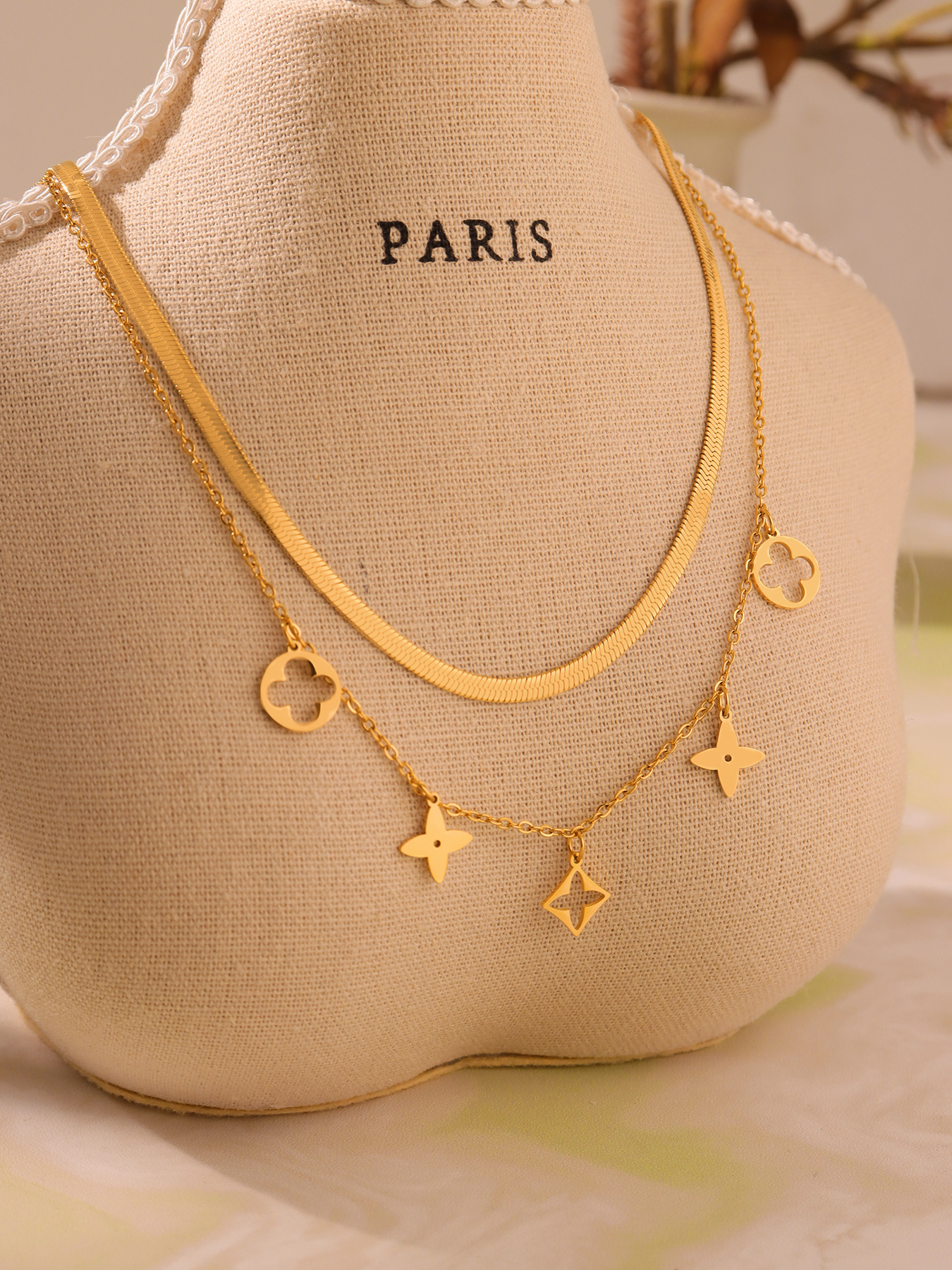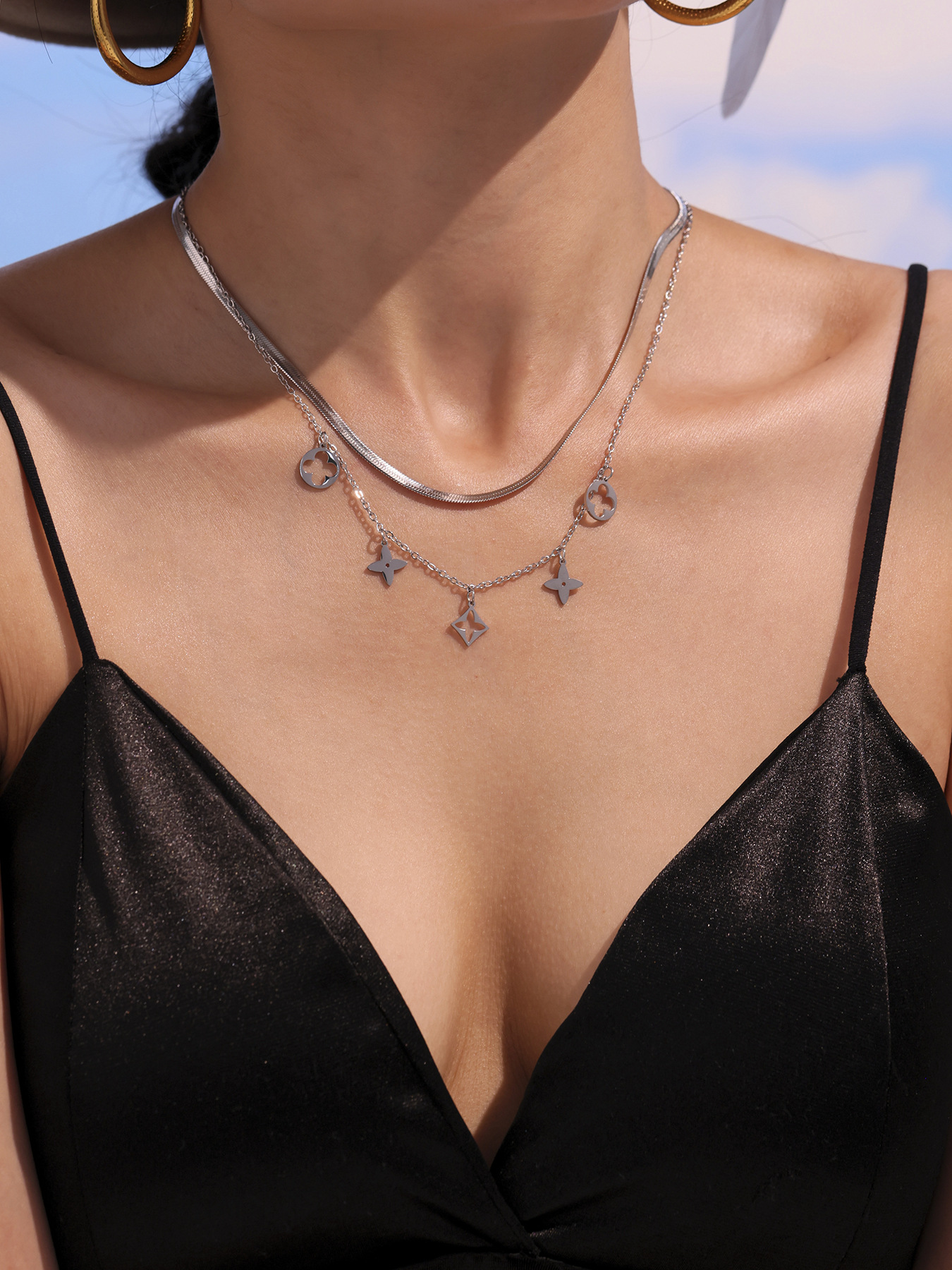 Sugar nuevo colgante de trébol de cuatro hojas de flores huecas de doble cara, doble capa, cadena de clavícula, pulsera, tobillera, juego de joyas
