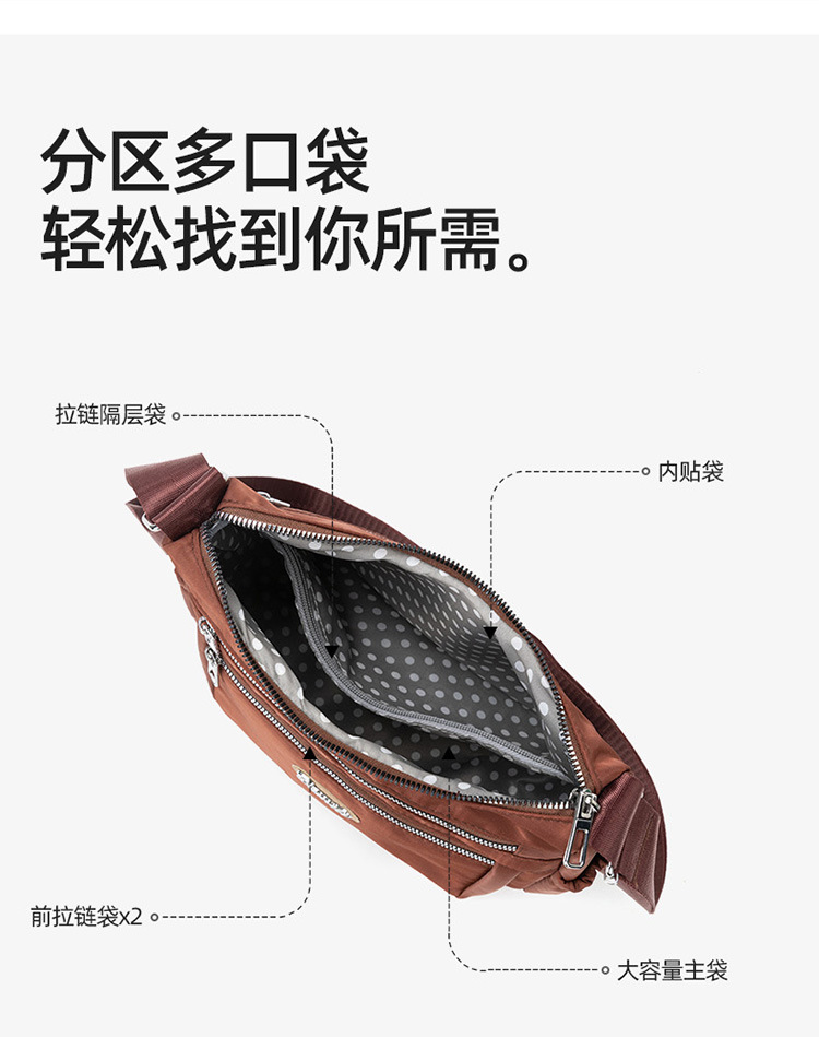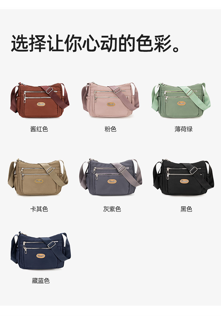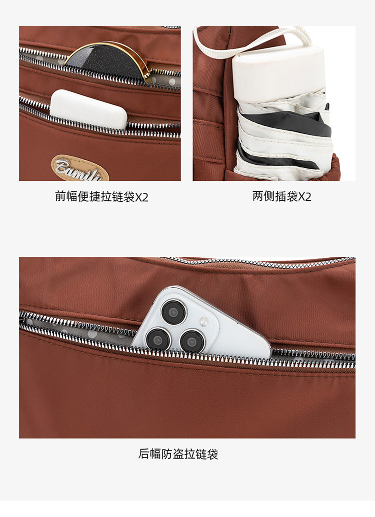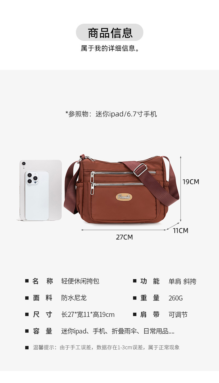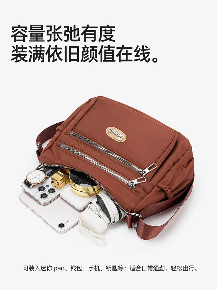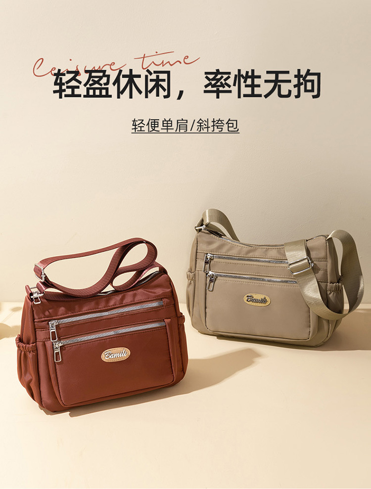 Bolso explosivo, tela de nailon para mujer, bolso de mensajero casual de gran capacidad, bolso de hombro ligero simple para madre de mediana edad para mujer