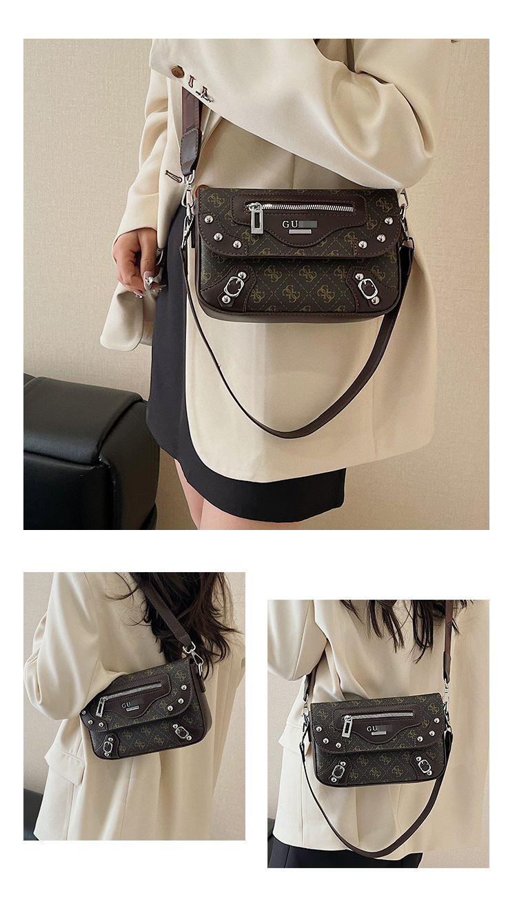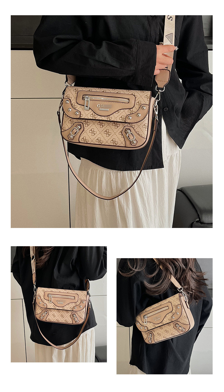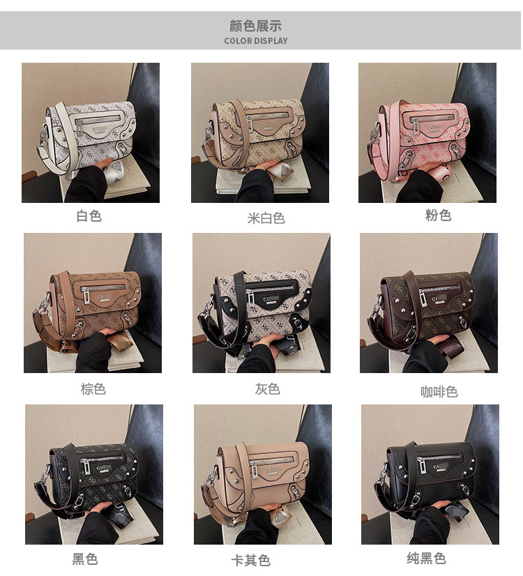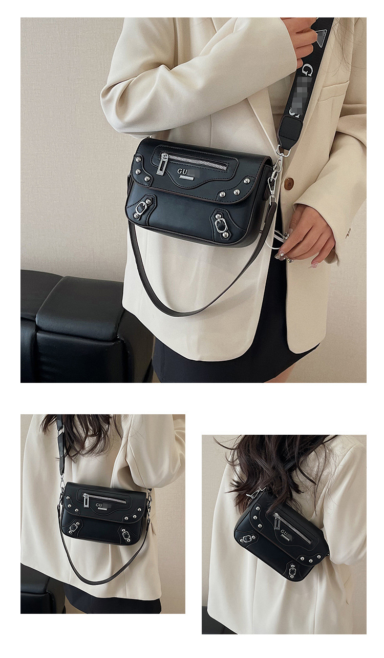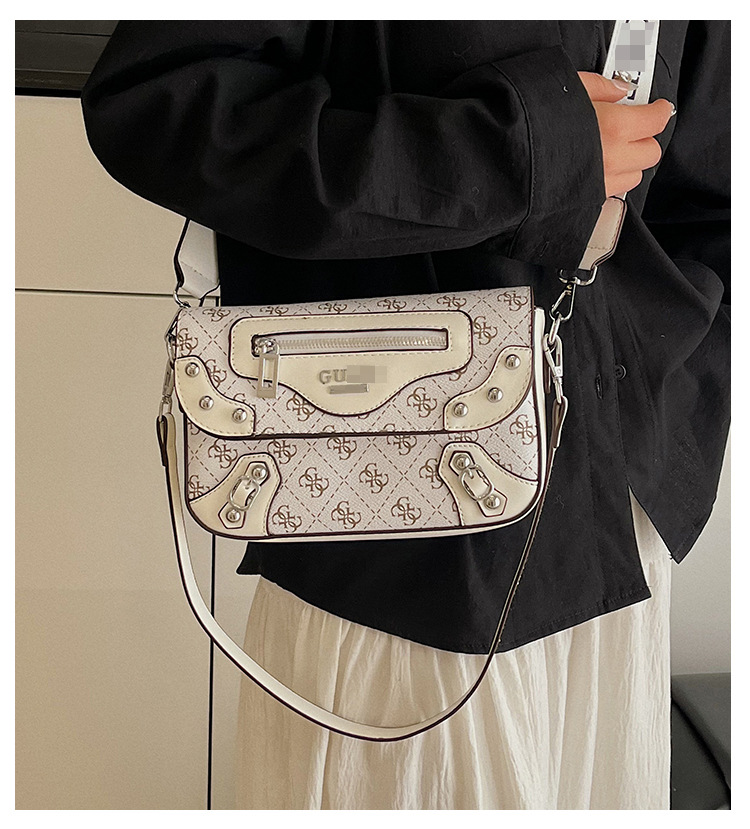 Bolso de diseño de nicho transfronterizo para mujer nuevo bolso de motocicleta con remaches de chica caliente dulce y fresca, bolso de hombro y axila de moda, bolso de mensajero