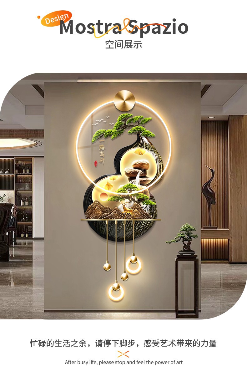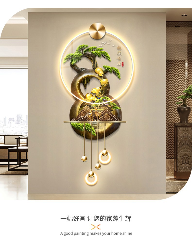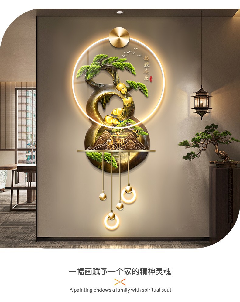 Agua que fluye hace dinero Nueva pintura de decoración de entrada de estilo chino, pintura de pasillo de calabaza atmosférica, puerta de entrada, lámpara de decoración de pared tridimensional