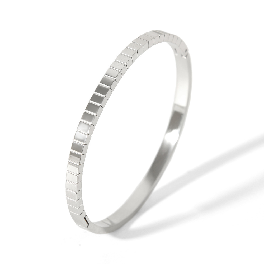 Europa y América Ins simple y de moda todo fósforo a cuadros medio acero inoxidable joyería no se desvanece brazalete transfronterizo de mujer de 18K