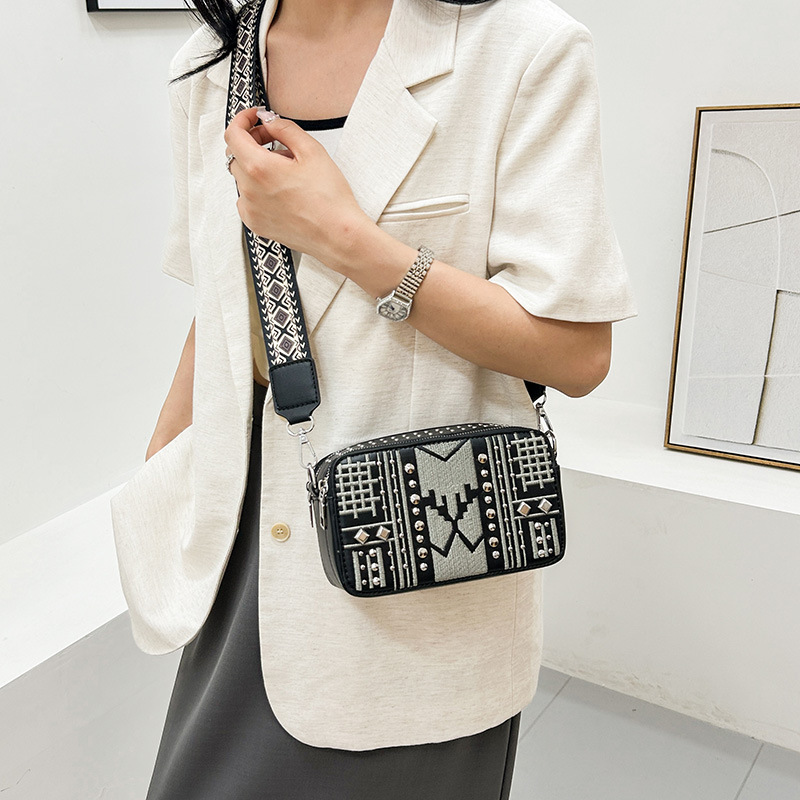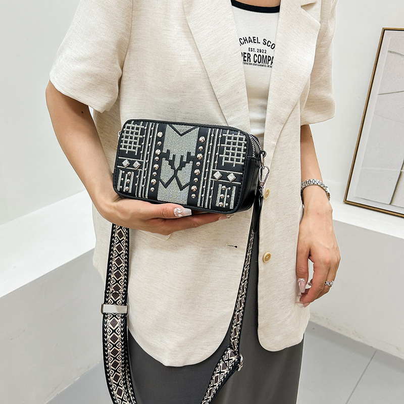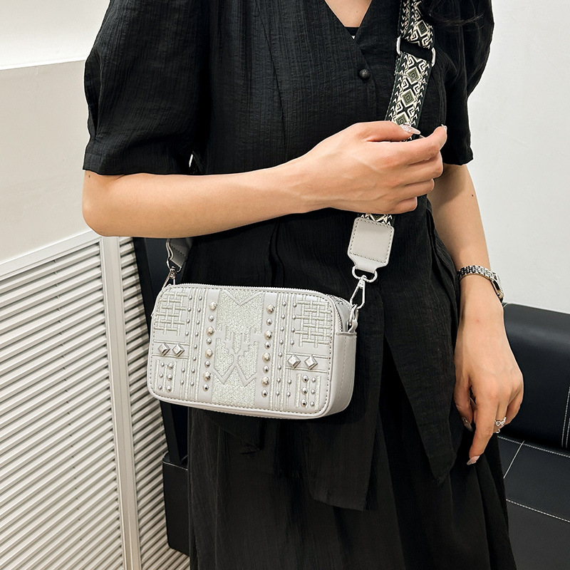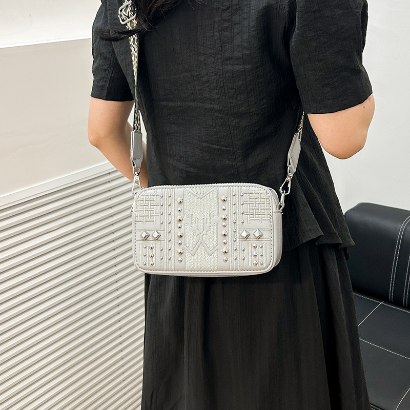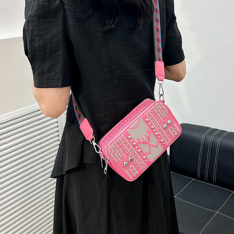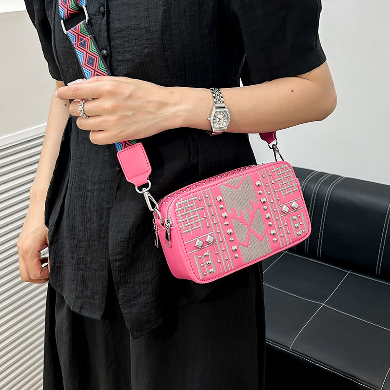 Bolso de cámara transfronterizo, mensajero femenino, nuevo mini pequeño bolso cuadrado, remache de todo fósforo, bolso de hombro de comercio exterior con diamantes, bolso de teléfono móvil