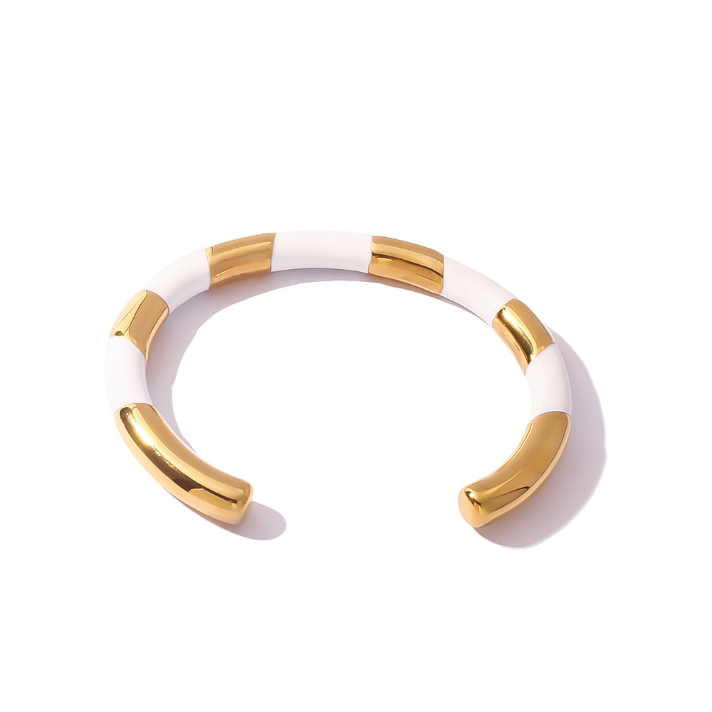 Lujo ligero, temperamento de alta calidad, pulsera de acero de titanio, apertura, diseño de nicho, sentido de alta calidad, joyería de aceite de gota de oro en blanco y negro