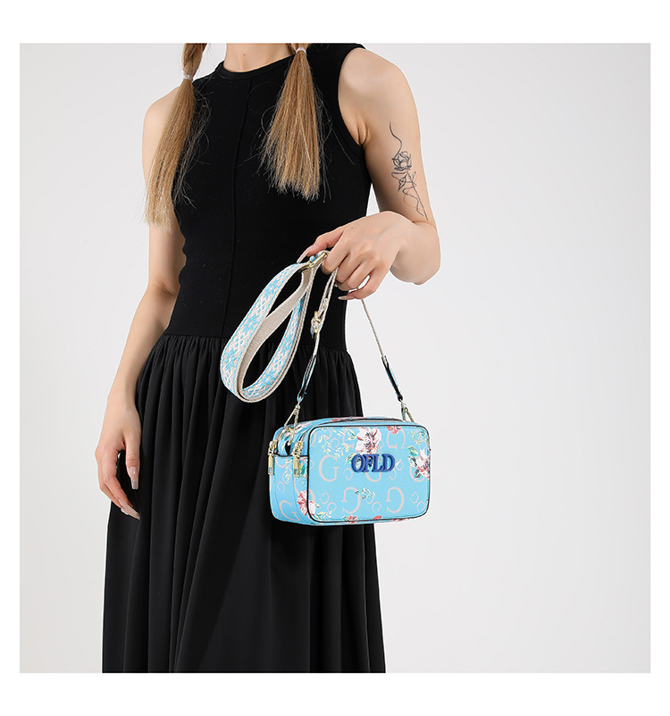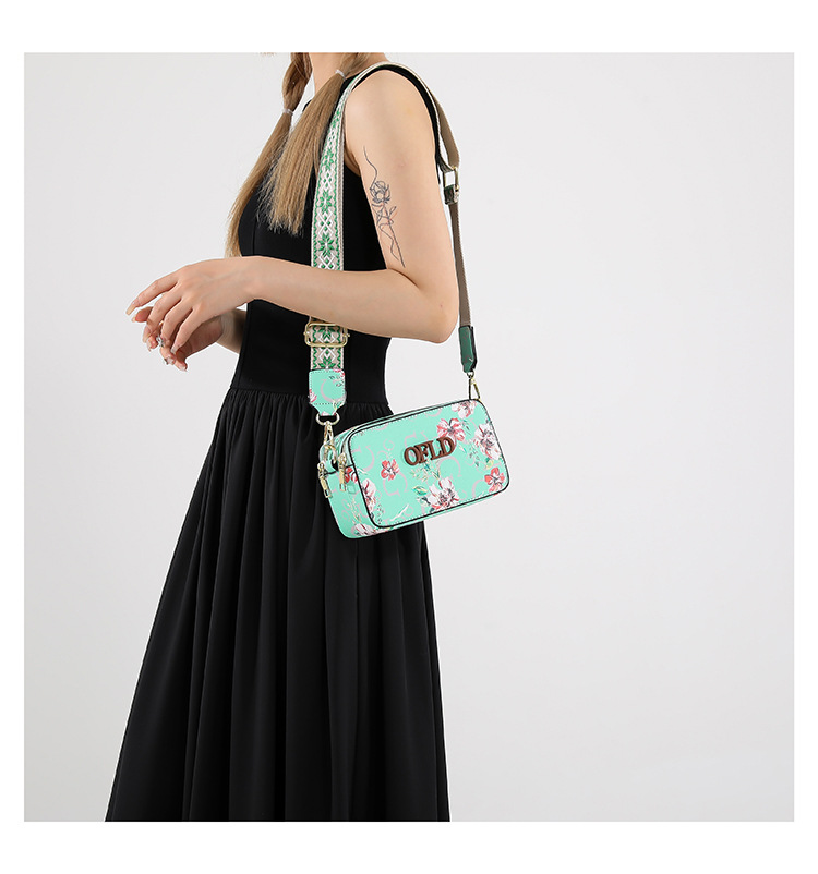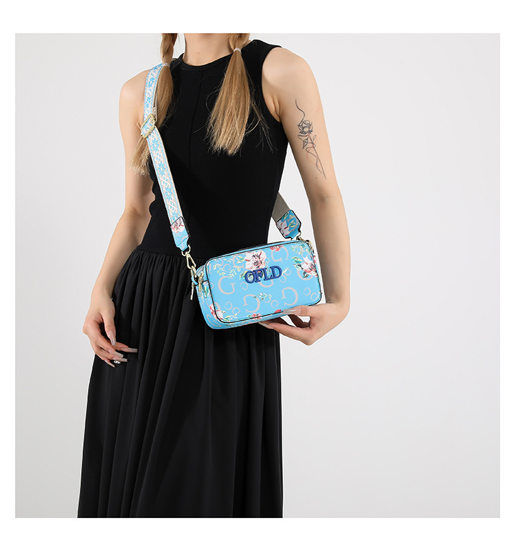 Comercio exterior transfronterizo nueva impresión de letras correas anchas moda todo-fósforo estilo caliente cámara bolso bandolera pequeño bolso cuadrado femenino