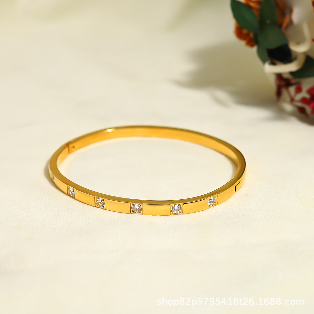 Joyería de venta caliente transfronteriza europea y americana siete hebillas de circón, joyería de pulsera, acero inoxidable, oro de 18 quilates, simple y ligero, lujo