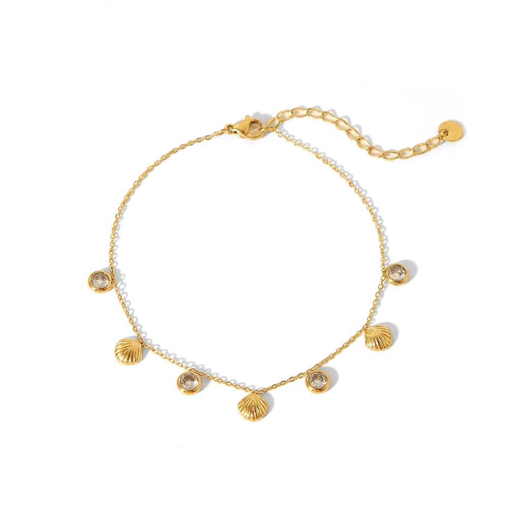 Concha a rayas de acero inoxidable francés, circón, temperamento de nicho de 18K, tobillera de playa para mujer, joyería impermeable que no se desvanece