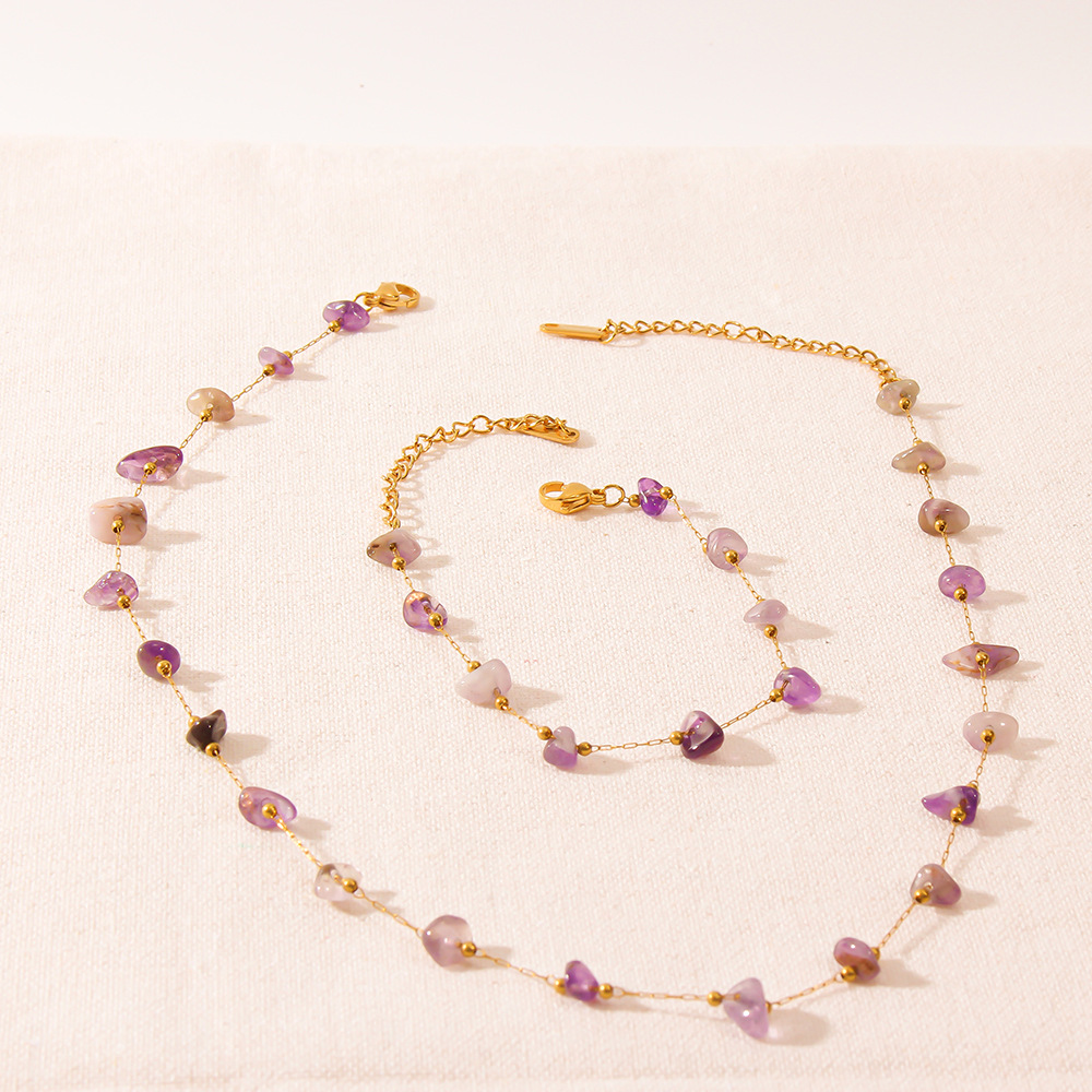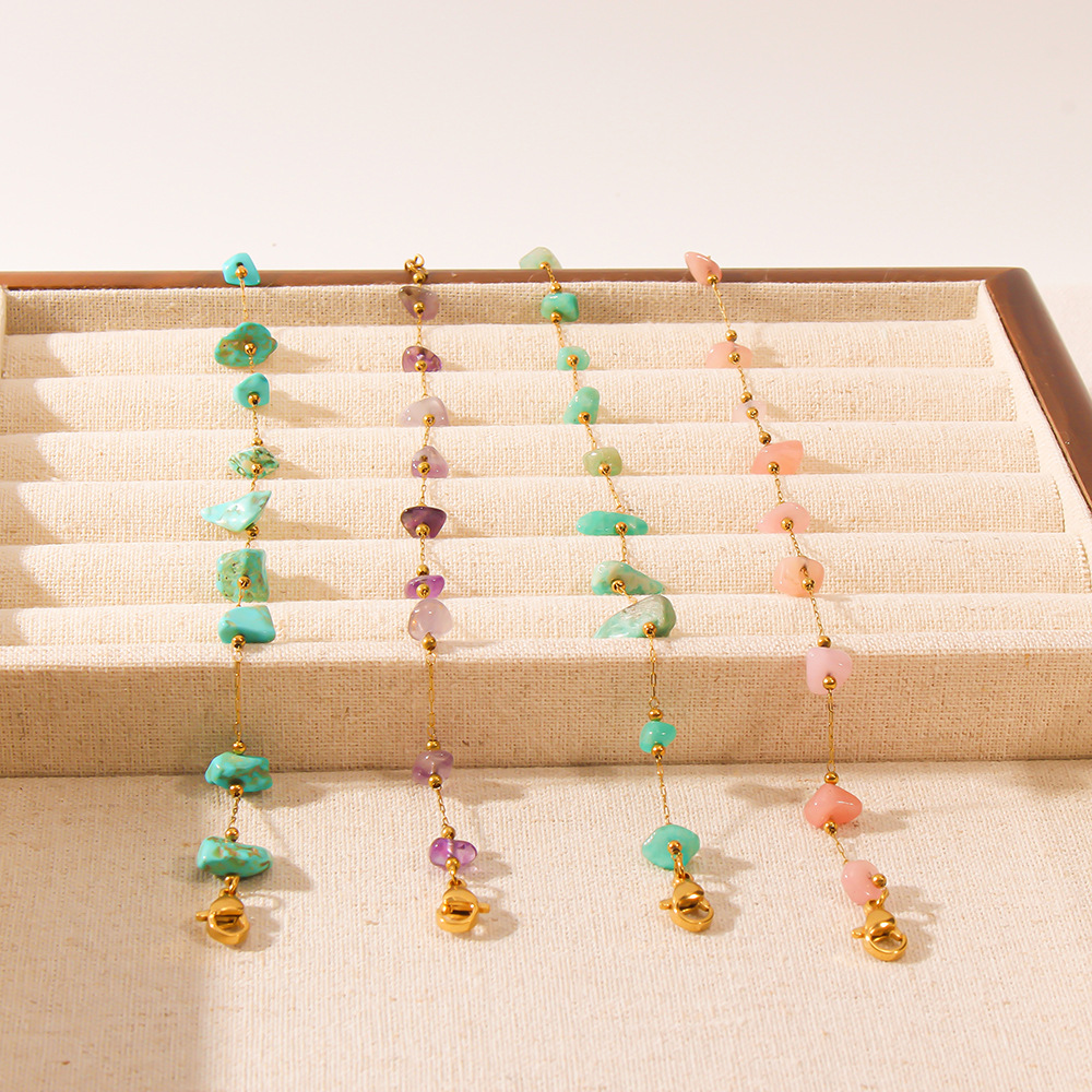 INS estilo caliente europeo y americano estilo bohemio collar de piedra natural pulsera conjunto de joyería de todo fósforo de verano para mujer 18K