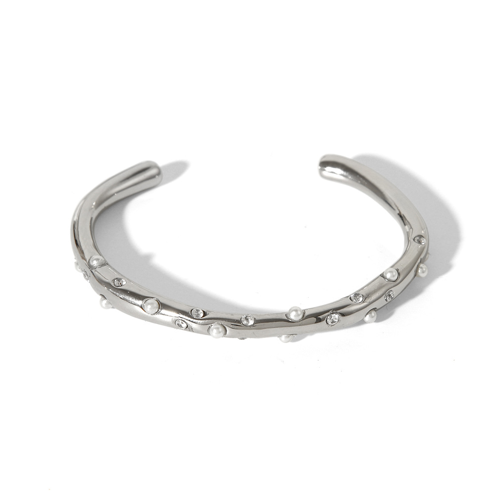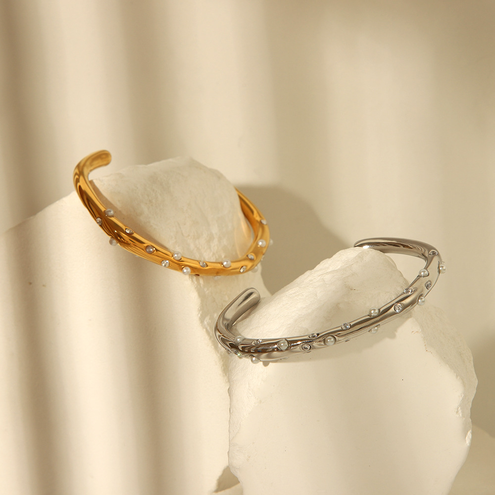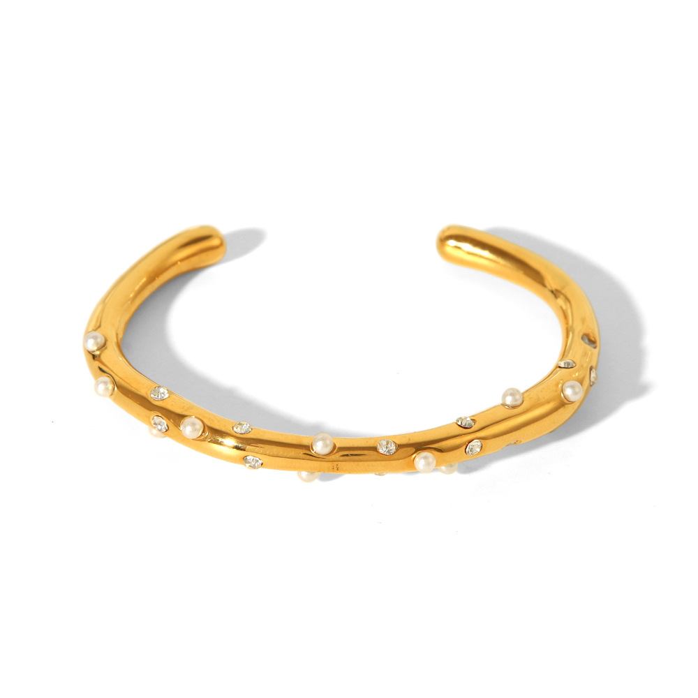 Pulsera de lujo ligero de sensación de alta calidad de fundición de acero inoxidable retro francés de fundición de 18K con incrustaciones de circonita